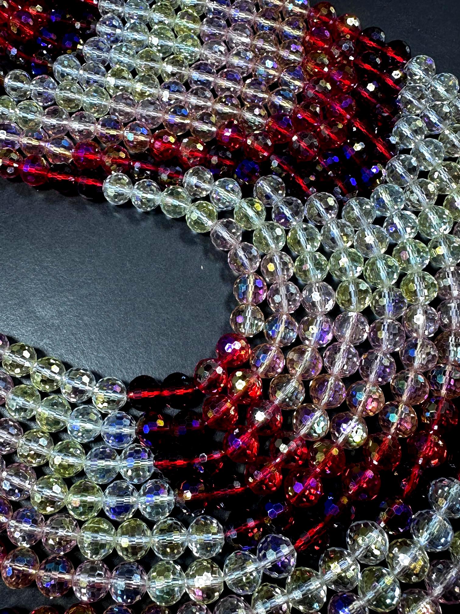 Beautiful Red White Crystal glass bead. Faceted round shape bead. High quality crystal bead! Full strand 15.5