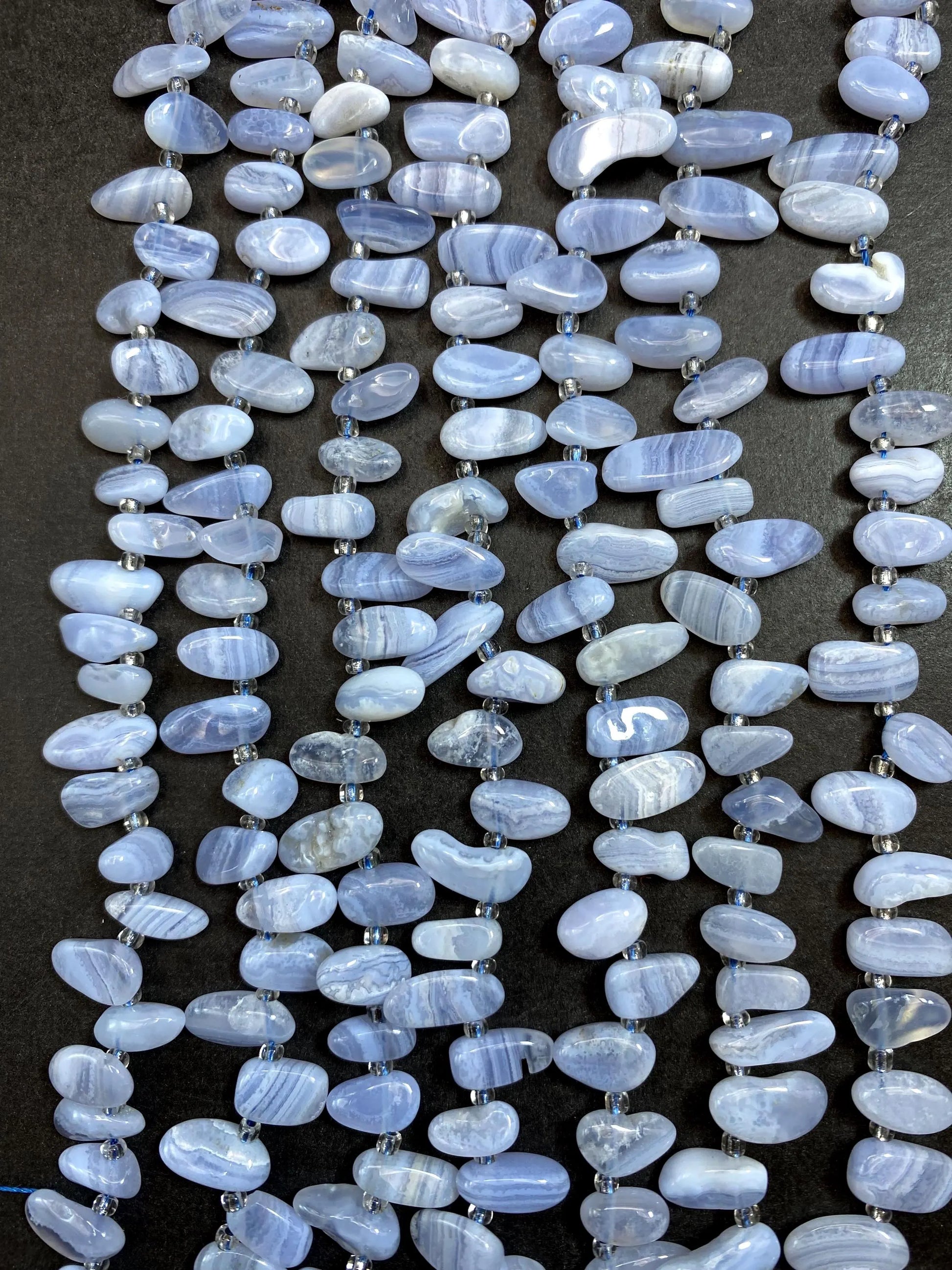 Chalcedony Gemstone Beads Stick or Tooth Shape, Beautiful Blue Lace Color Gemstone Beads, Full Strand 15.5"