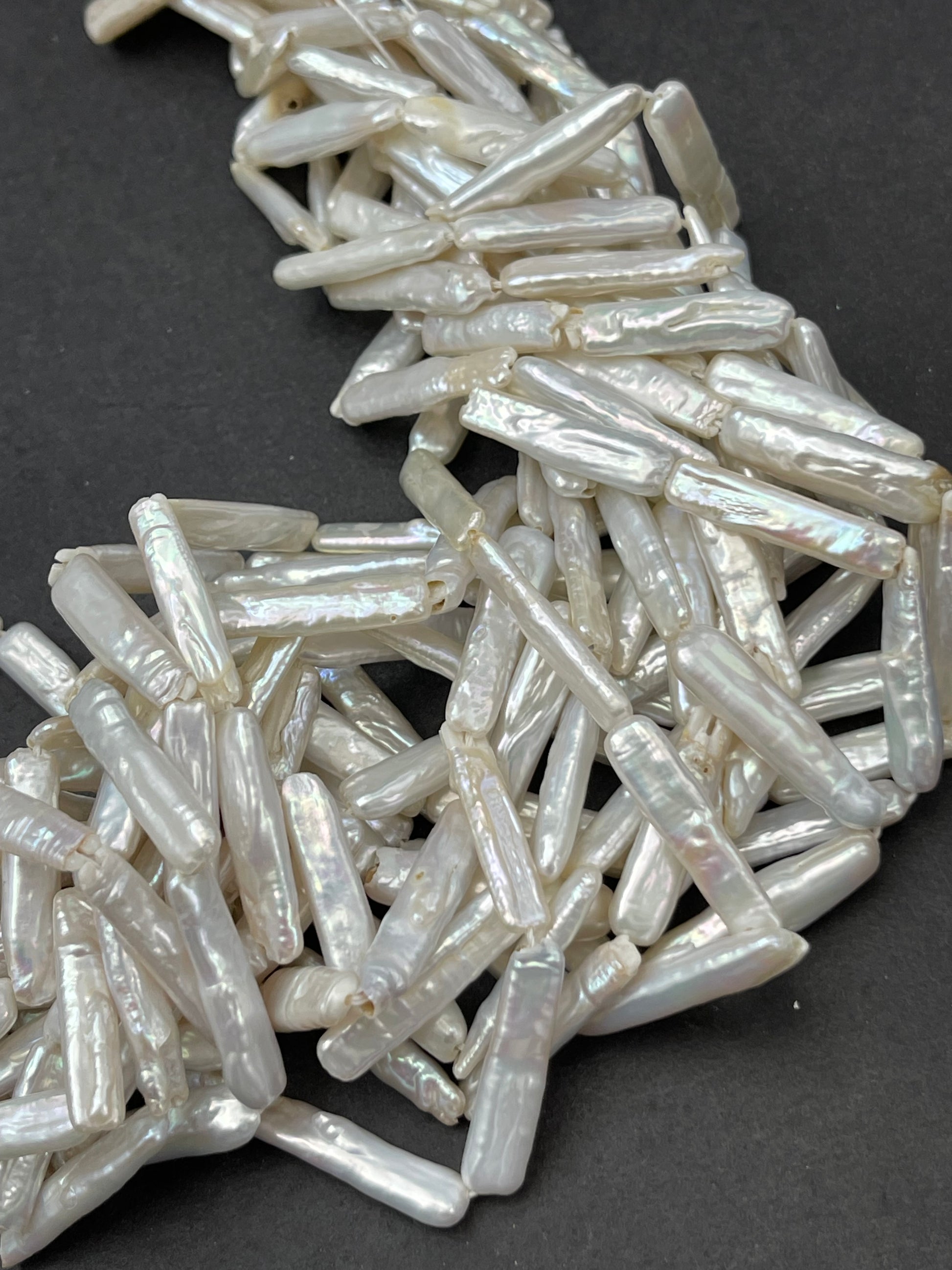 Freshwater pearls Biwa pearl Strip loose pearl necklace beads Natural Silver Color