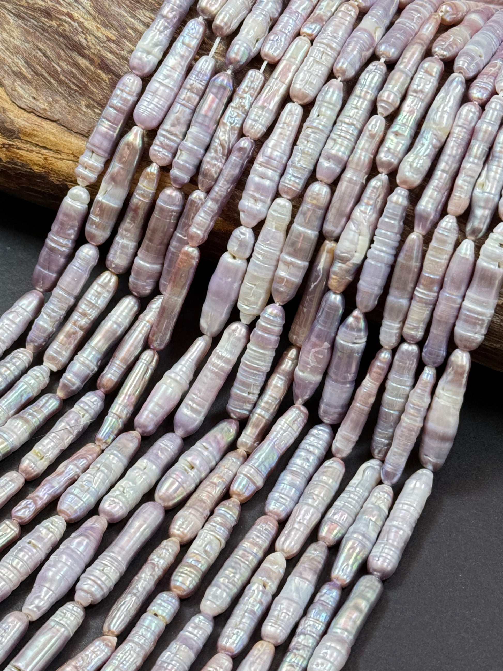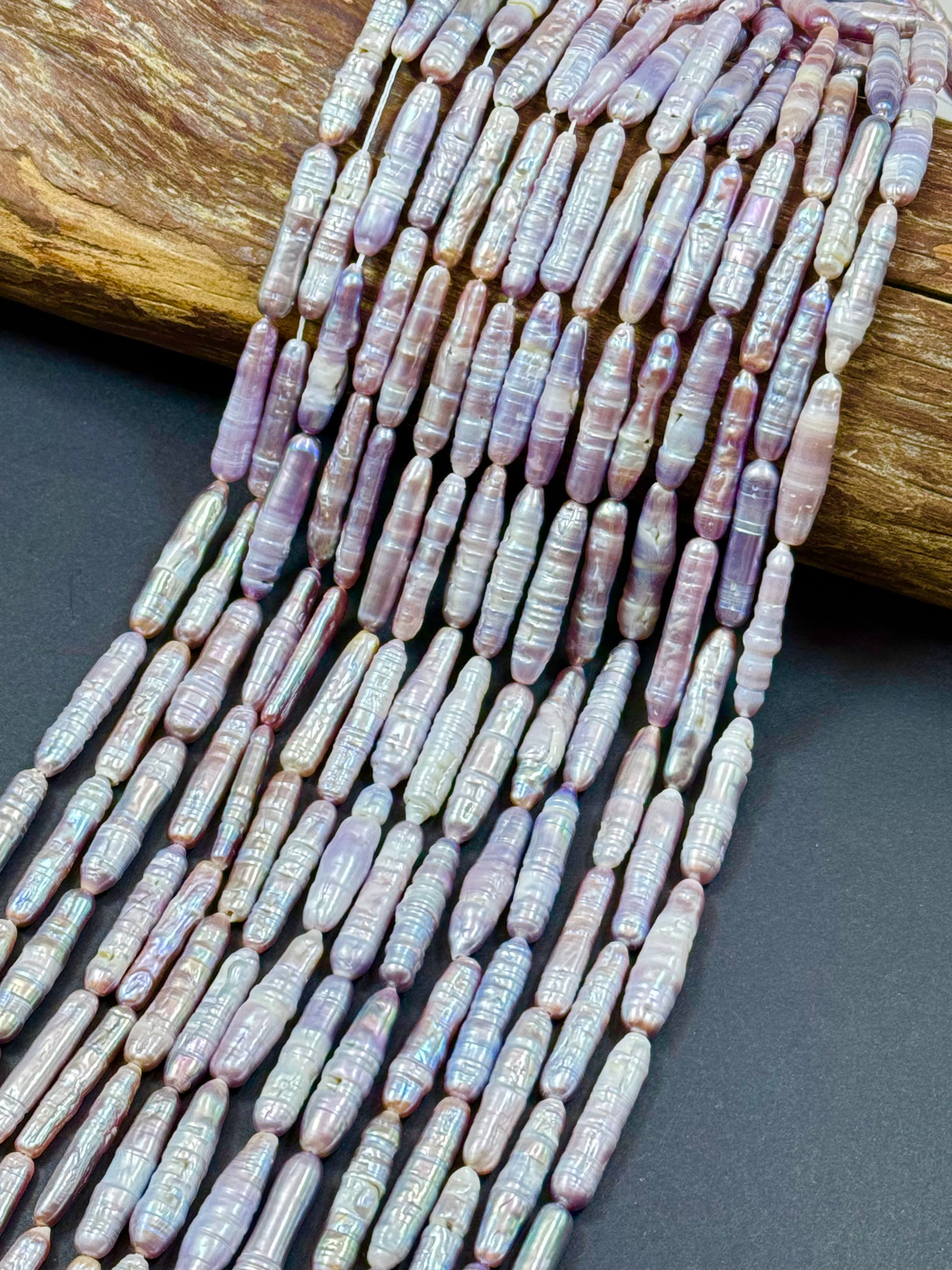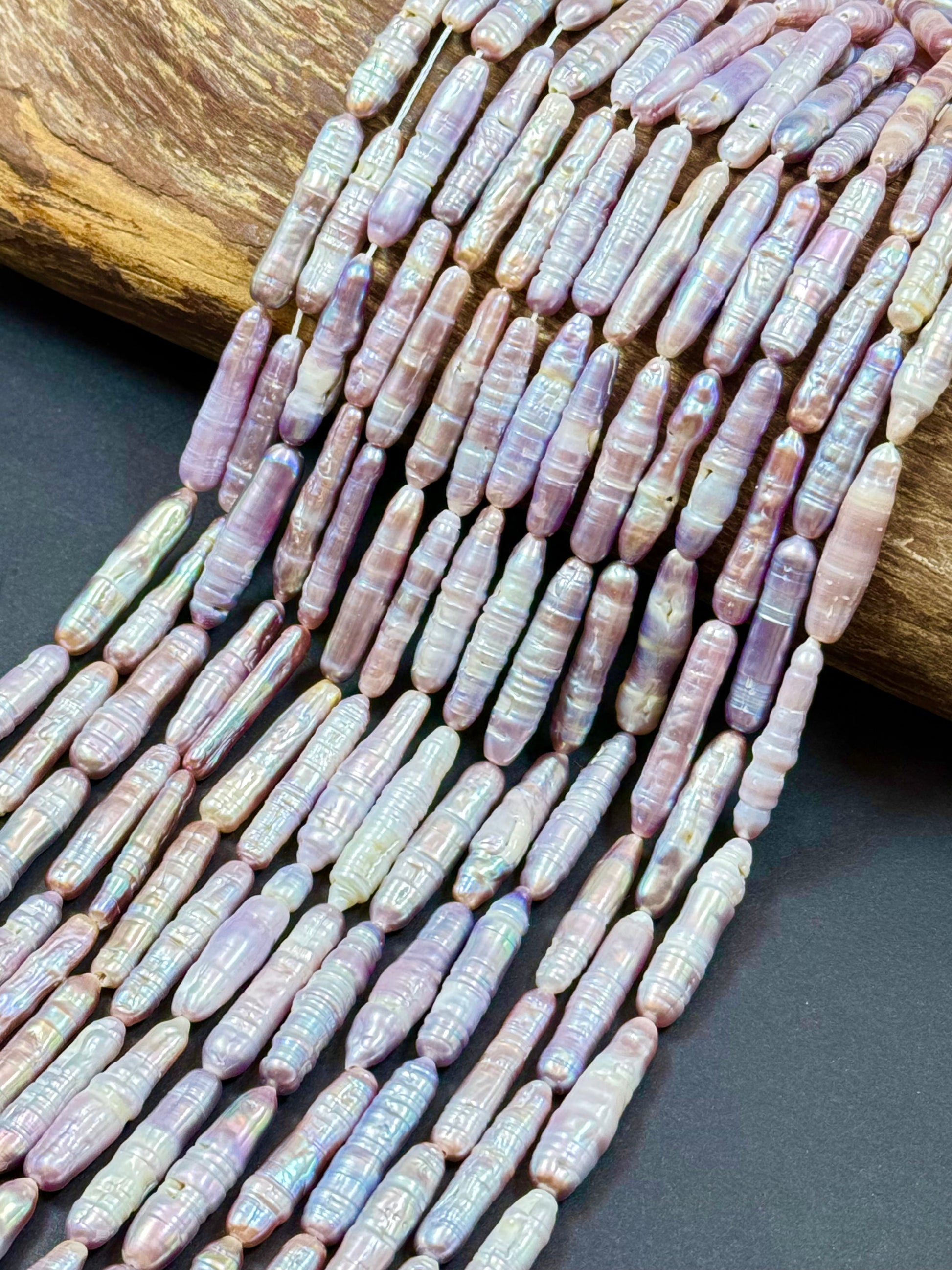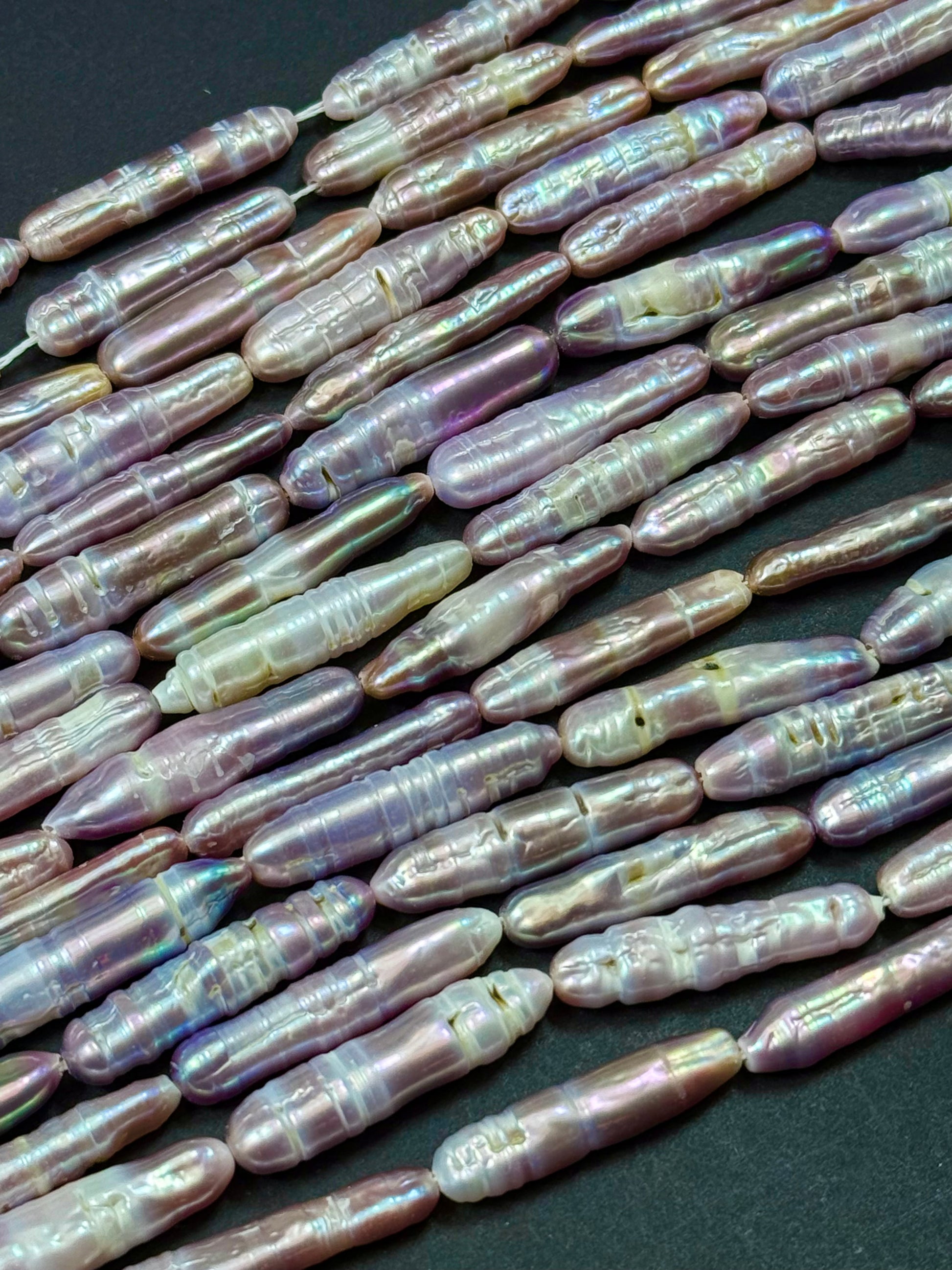 Freshwater pearls Thick Biwa pearl Strip Natural Purple Silver Color full strand 15"