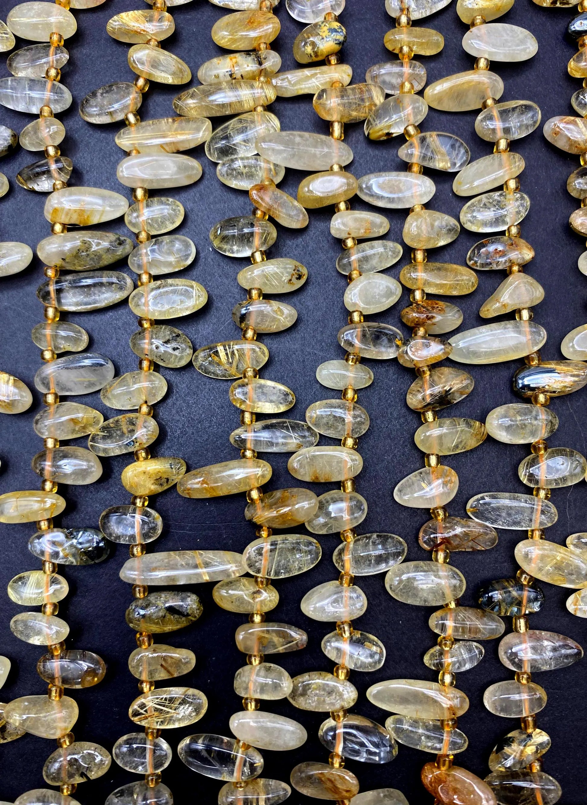 Gold rutilated quartz Gemstone Bead Stick/Tooth shape Beads, Beautiful Gold Color Gemstone Beads, Full Strand 15.5"