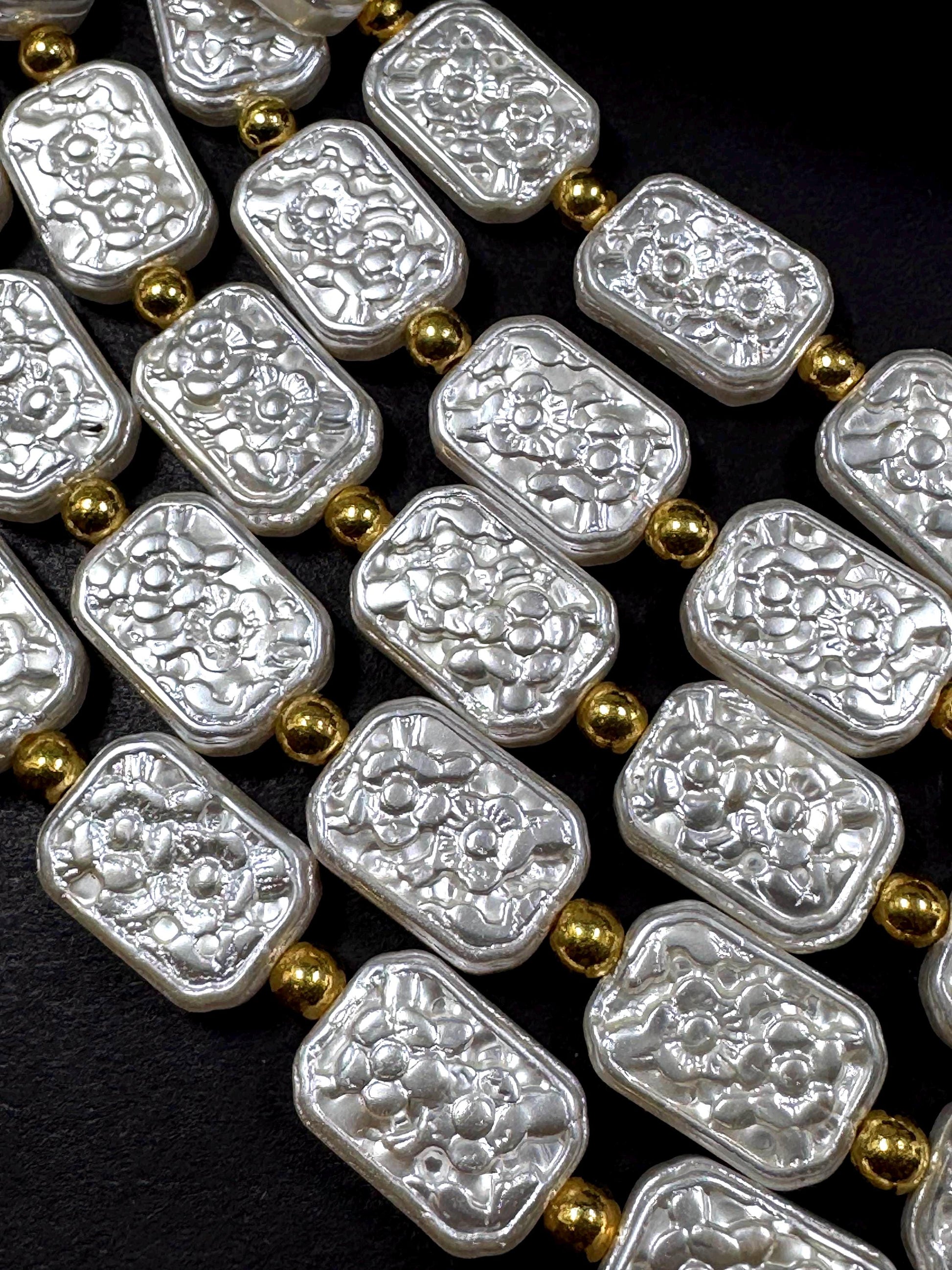 Gorgeous Chinese Swarovski Pearl Crystal Beads rectangle shape pearl Bead, Beautiful White pearl Swarovski Crystal Pearl Beads.