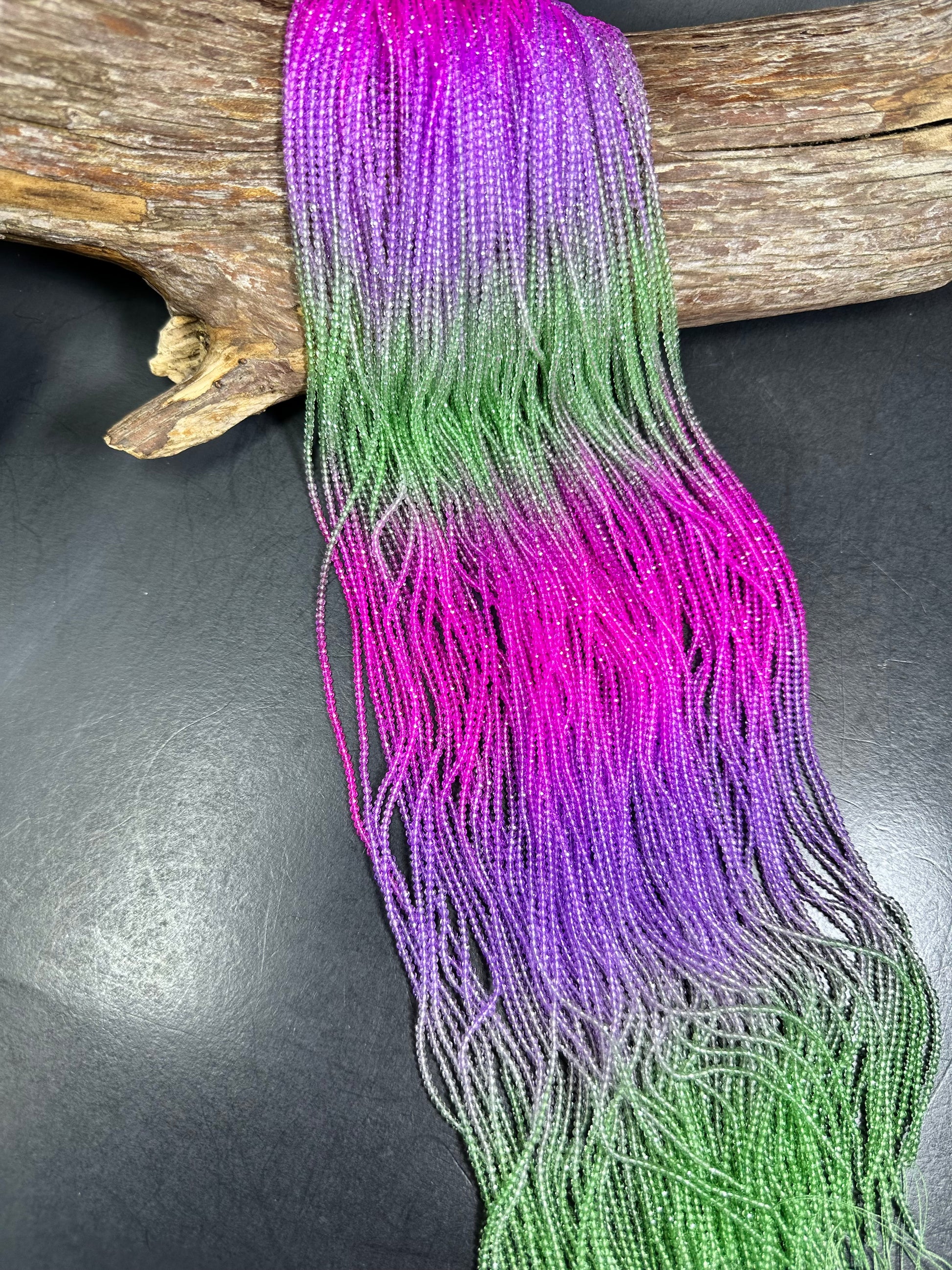 Gorgeous multi rainbow color crystal beads Faceted 2mm Round beads, Beautiful Pink Purple Green Color Crystal Beads, Full strand 14.4"