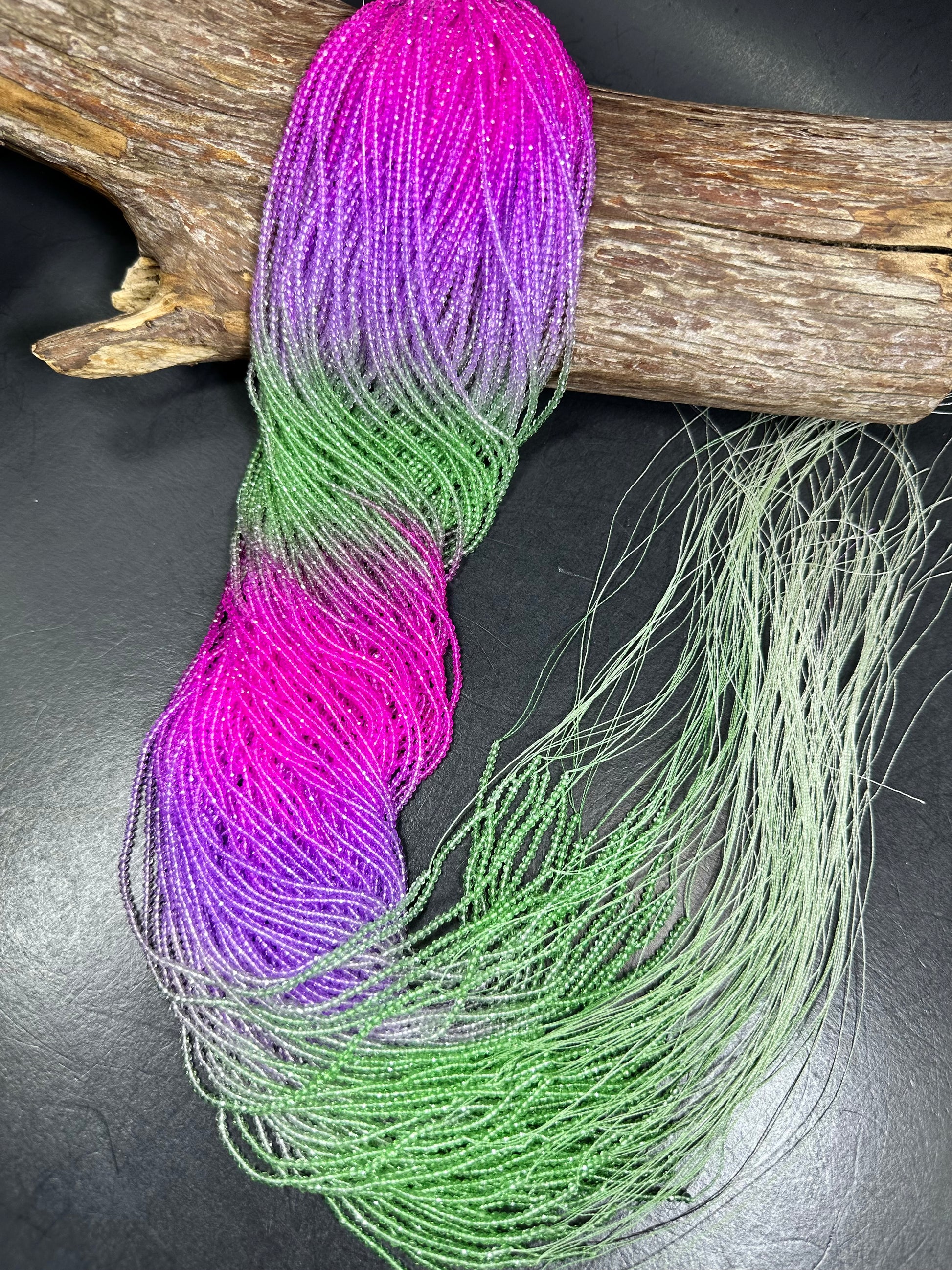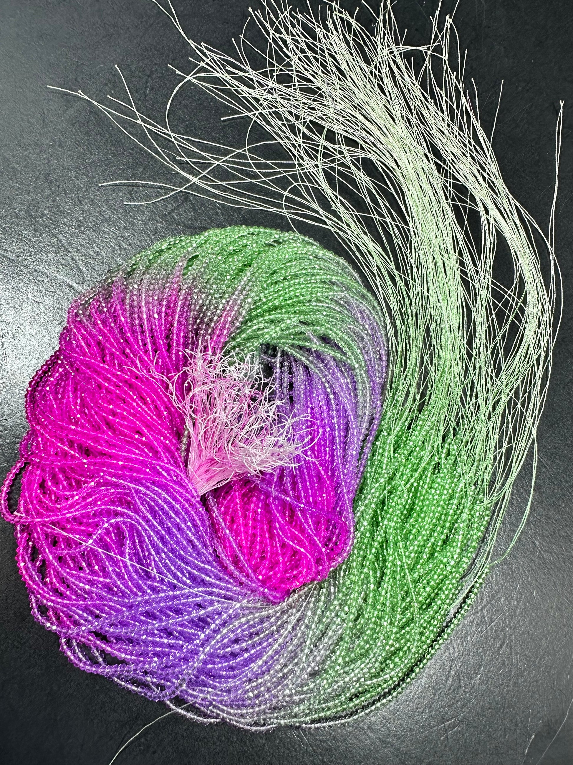 Nothing like the picture. There’s no green or pink. It’s ombré like in the picture, but mostly purple, with a little bit of yellow. & the purple is not that shade, it’s darker. Very disappointed with this one. Not going to work with what I had planned for it.
