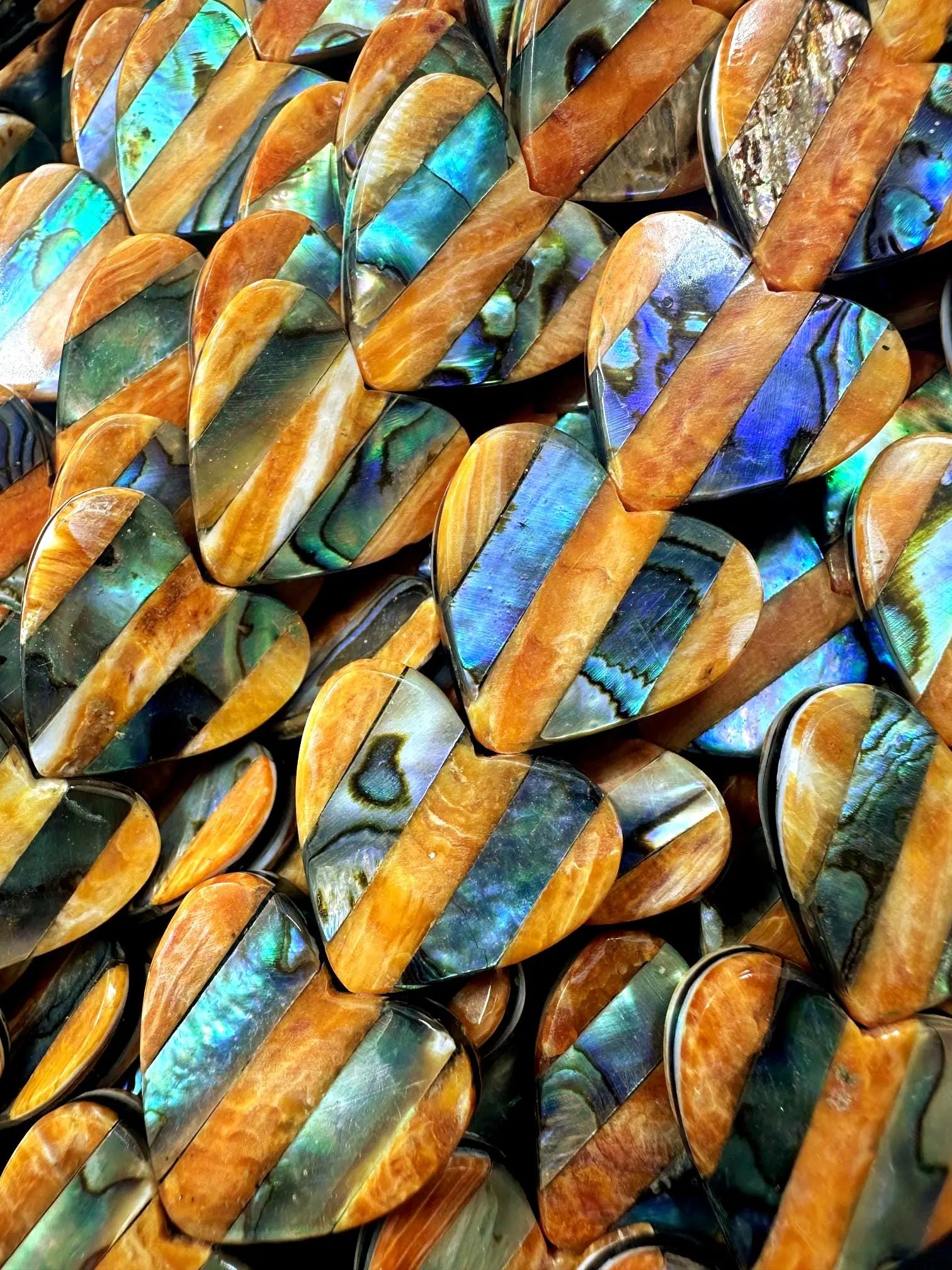 Guaranteed 100% 20x20mm natural heart shaped spiny oyster shell with abalone bead. Unique look! Super nice quality!