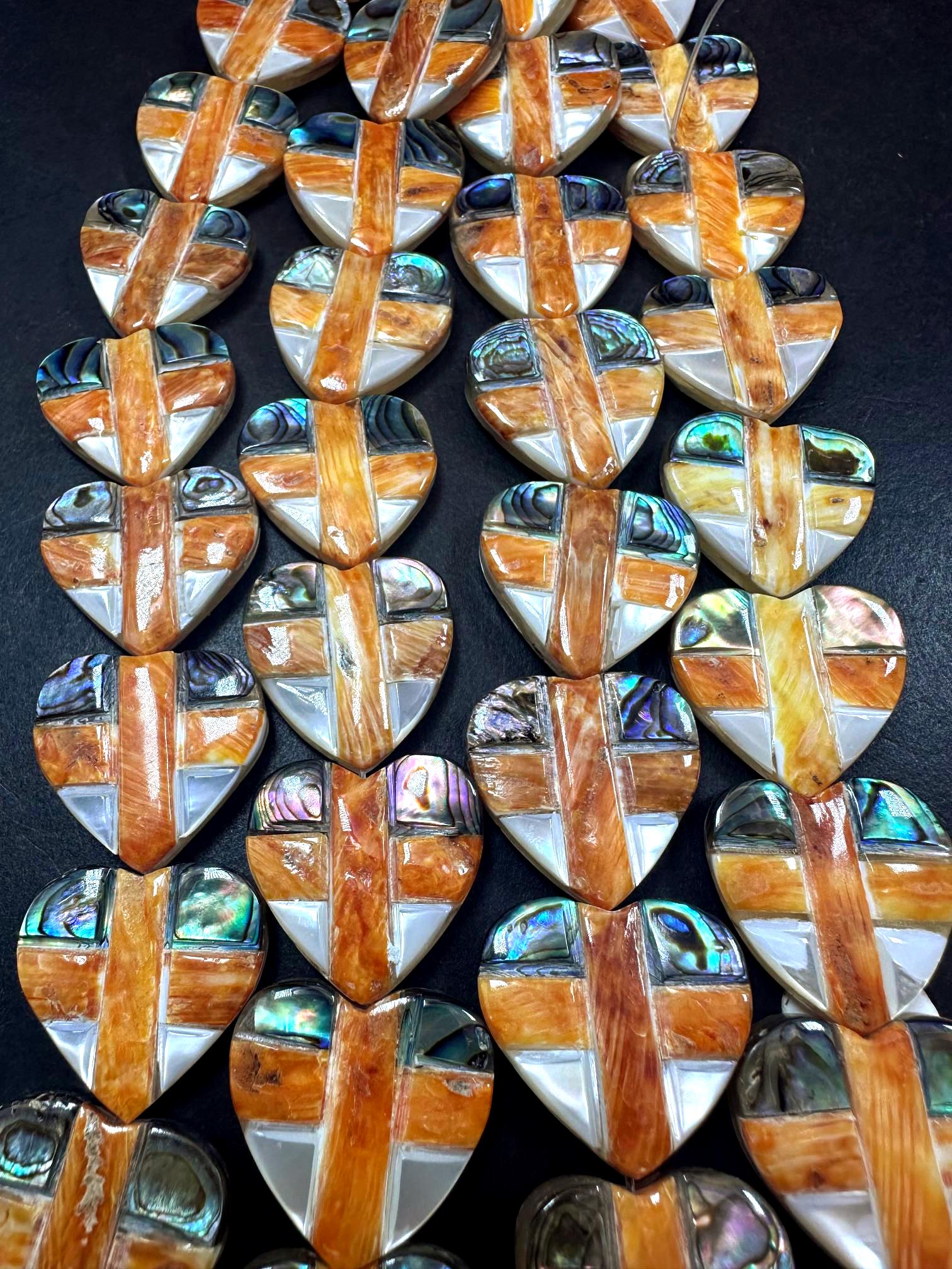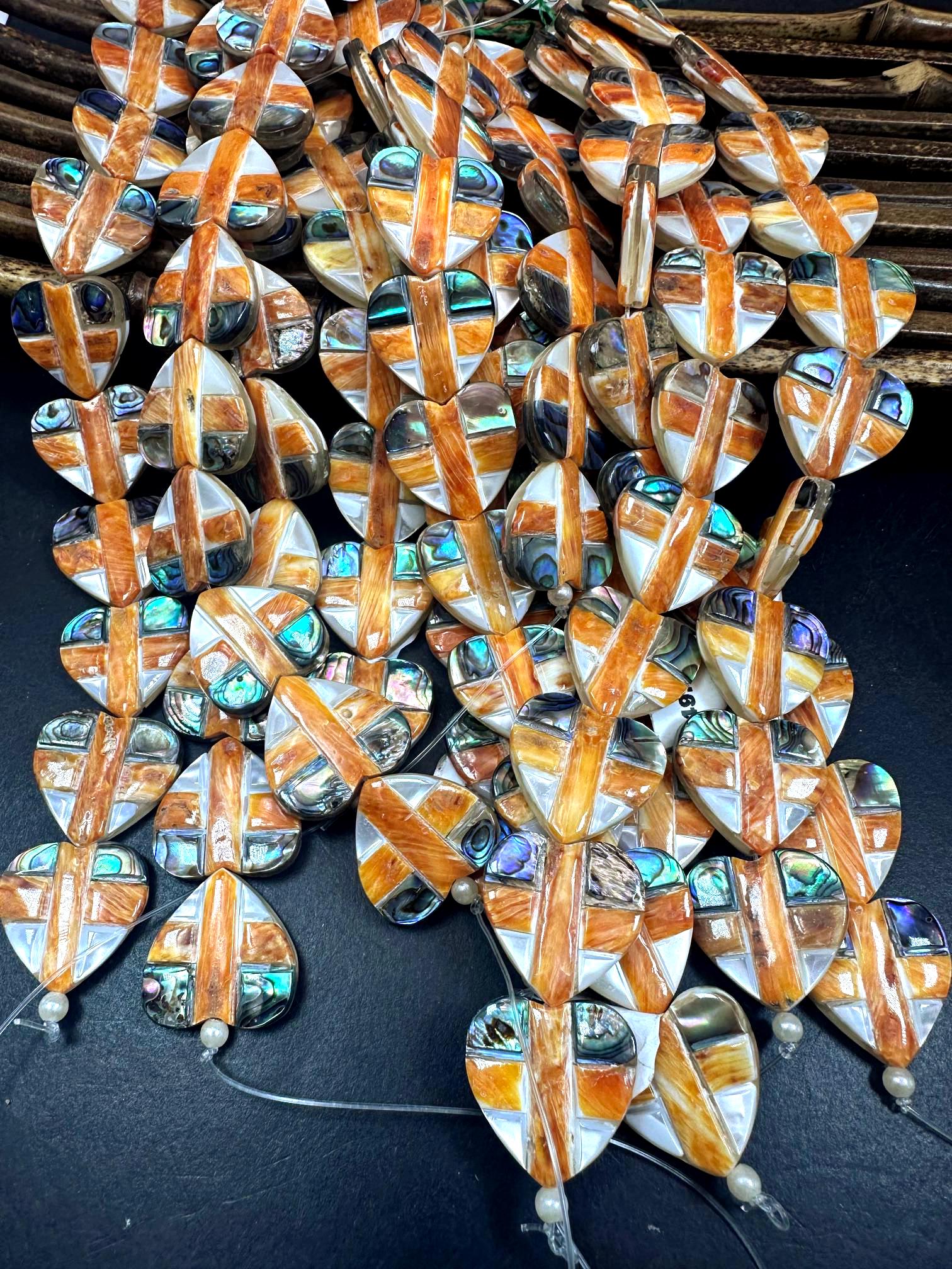Guaranteed Spiny Oyster with Abalone Heart Beads (20x20mm, 7.5" Strand)