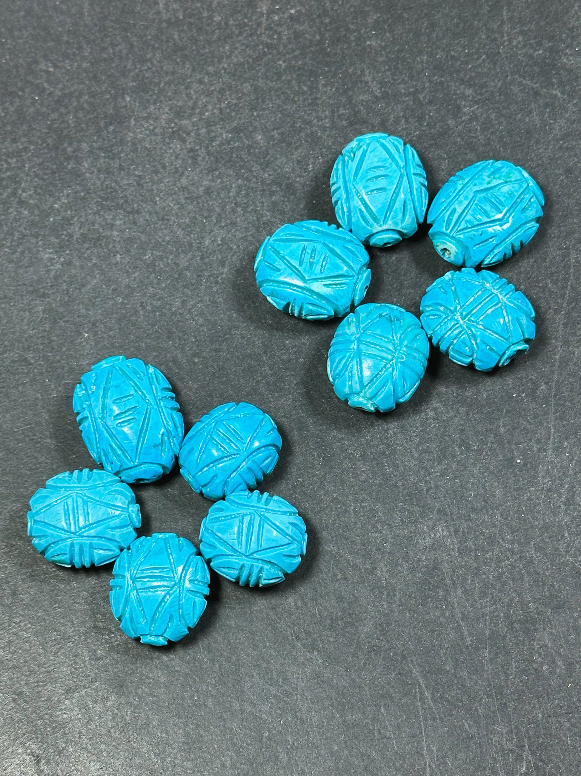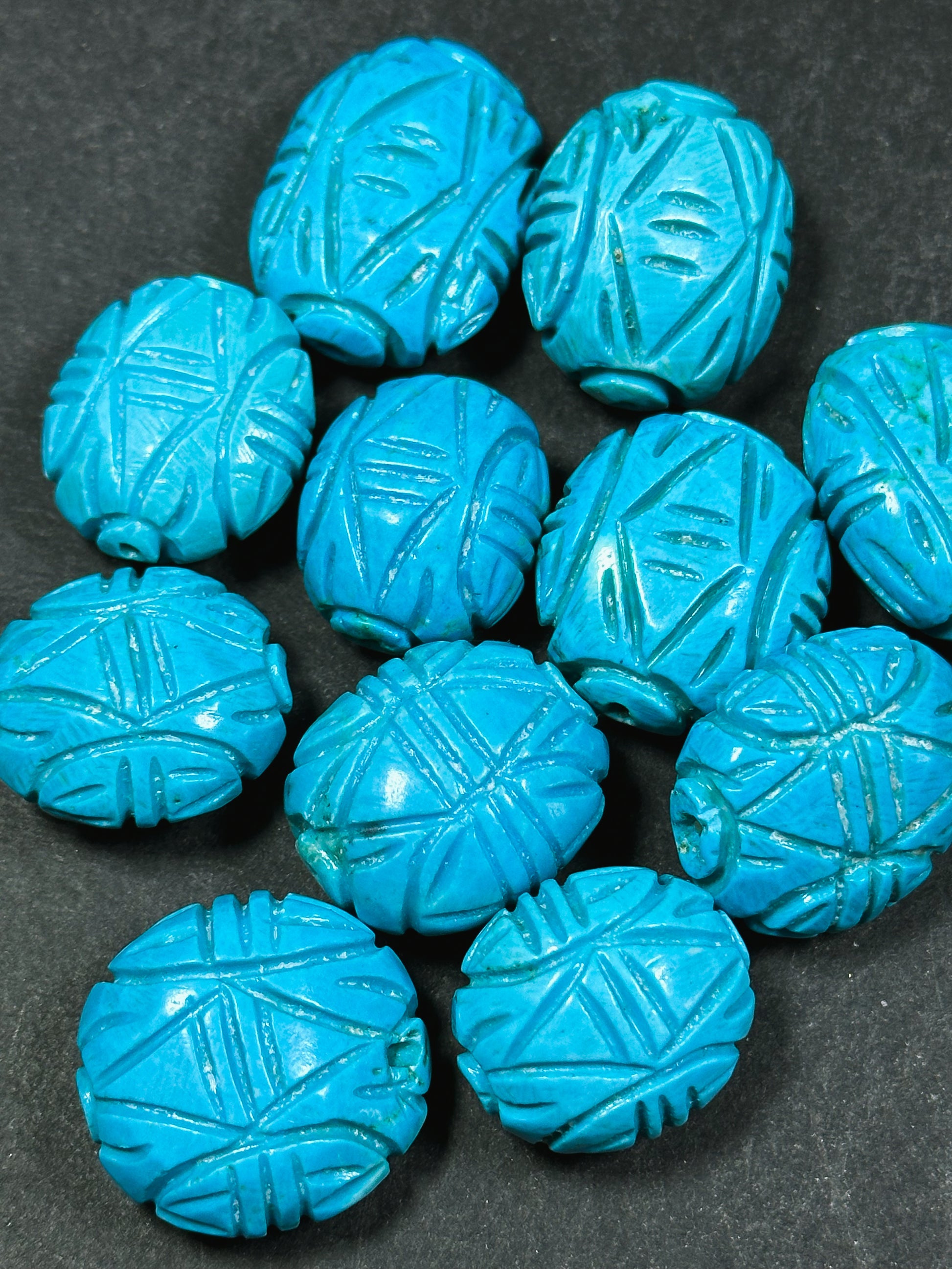 Hand Carved Howlite Turquoise Gemstone Beads Oval Shape Beads, Beautiful Hand Carved Blue Howlite Turquoise Gemstone LOOSE BEAD (1pc)