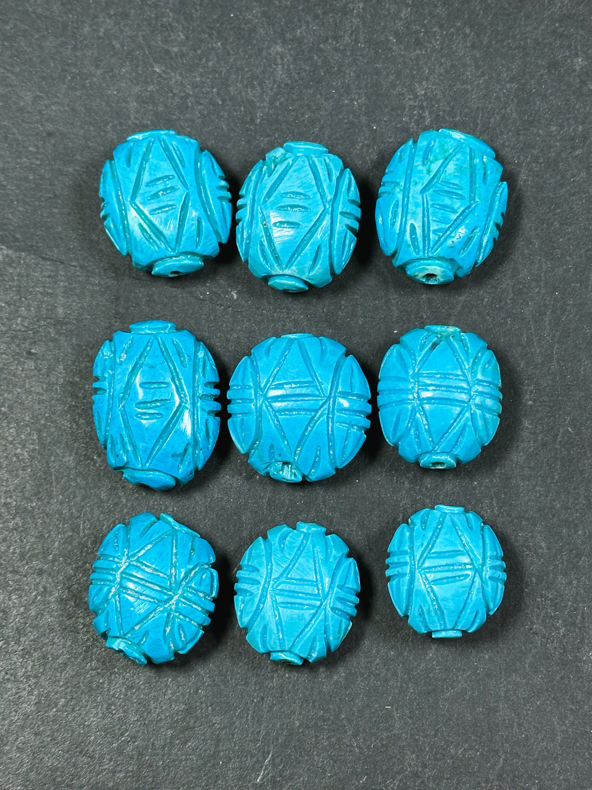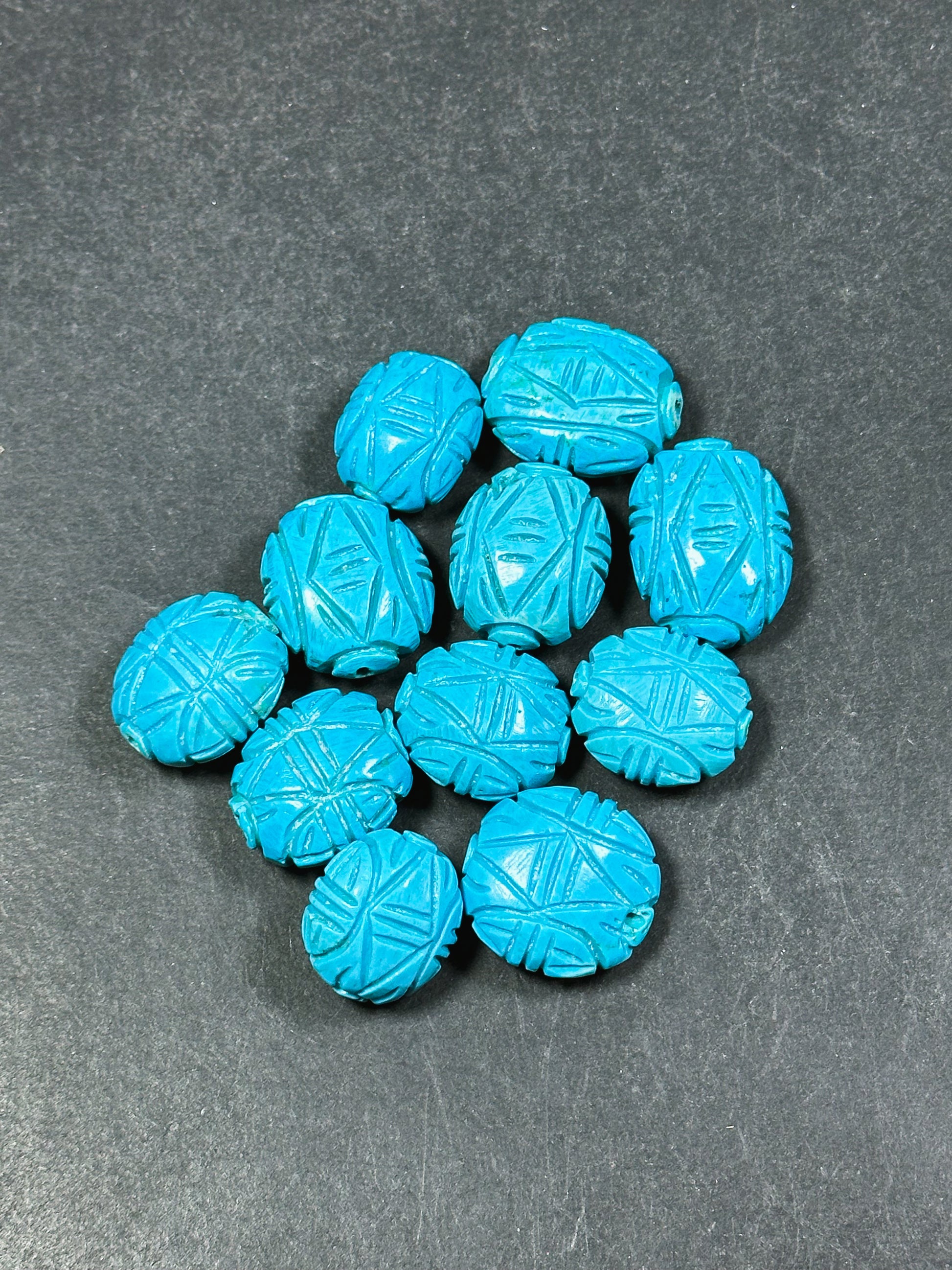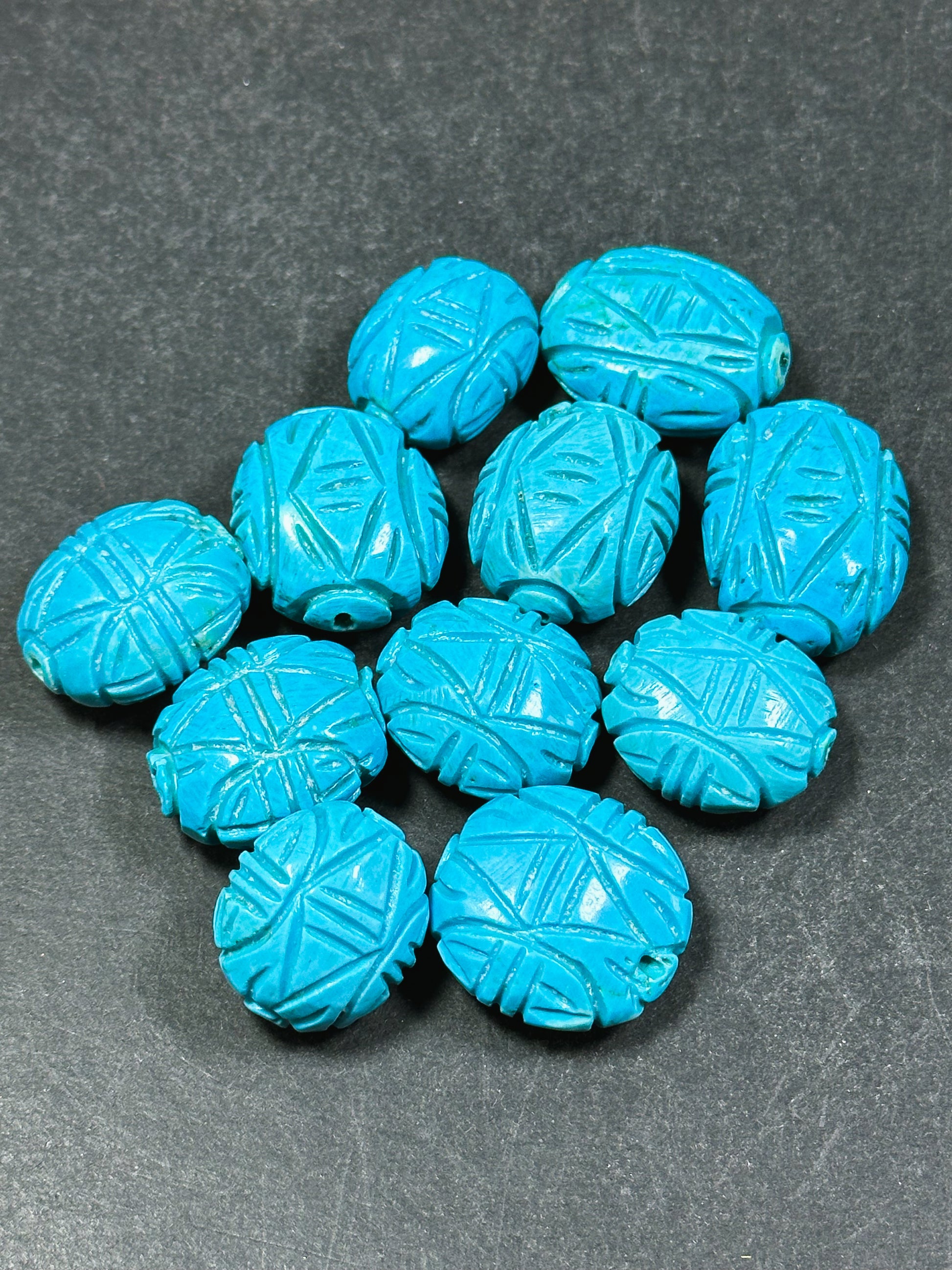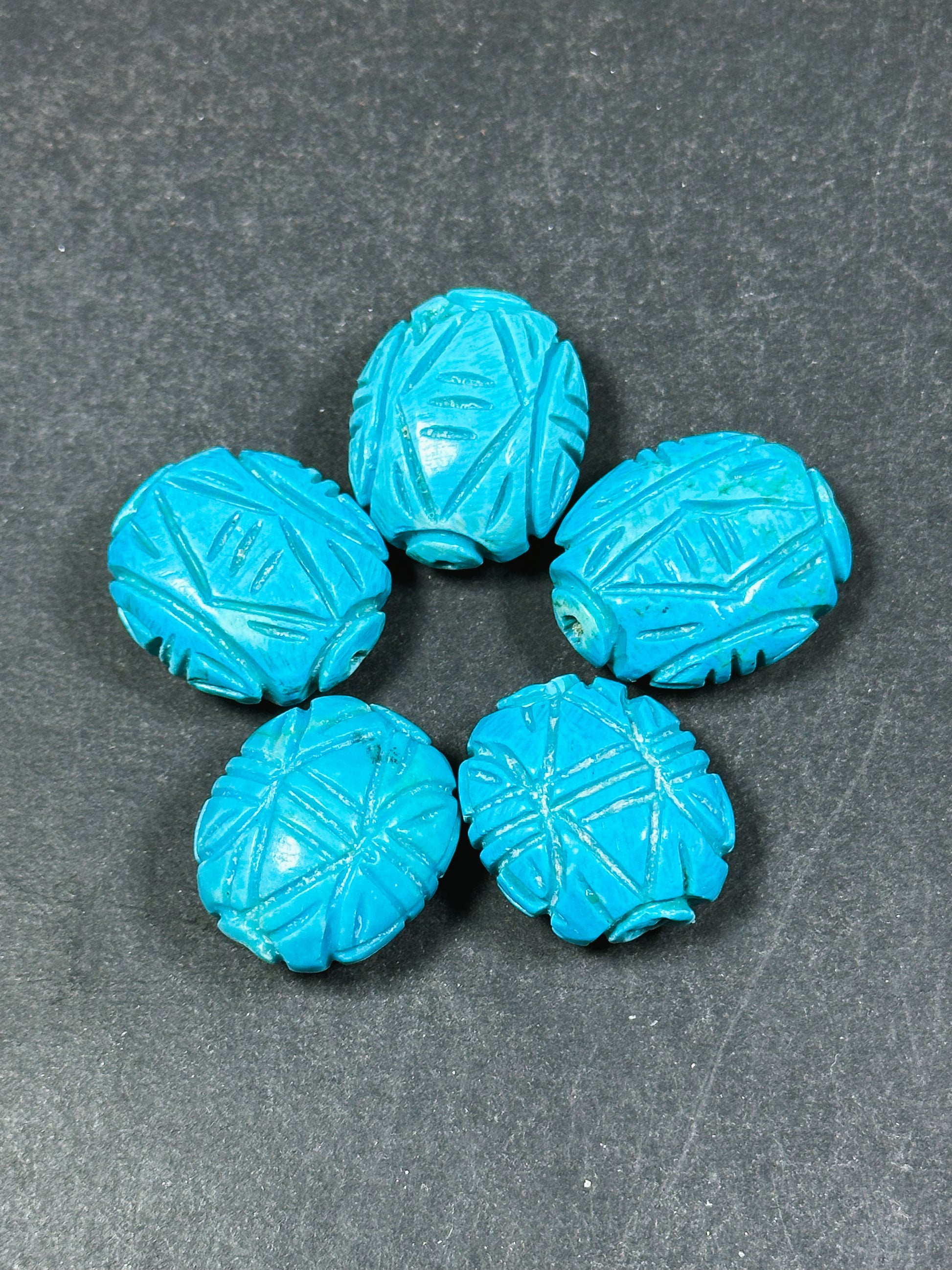 Guaranteed 100% natural gemstone. Stunning hand carved Howlite turquoise gemstone. Beautiful blue color hand carved Howlite turquoise gemstone beads. Very unique and amazing quality. Loose beads great for jewelry making and beading!