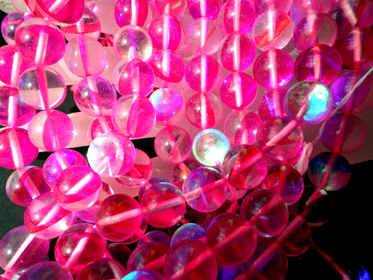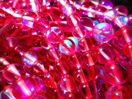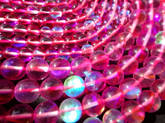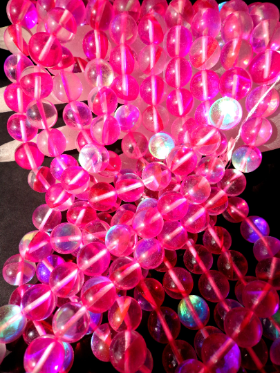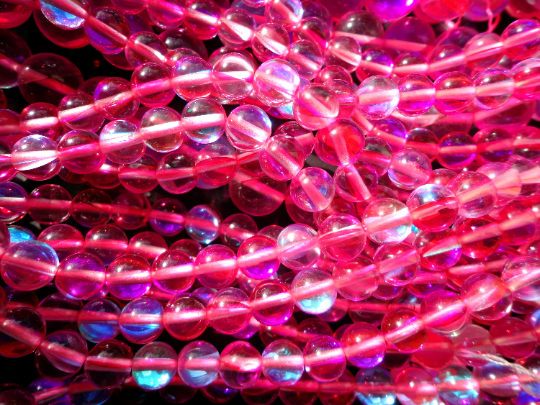 Mermaid Glass Beads 6mm 8mm 10mm 12mm Round Beads, Beautiful Rainbow Fuchsia Color Mermaid Glass Beads, Full Strand 15.5"