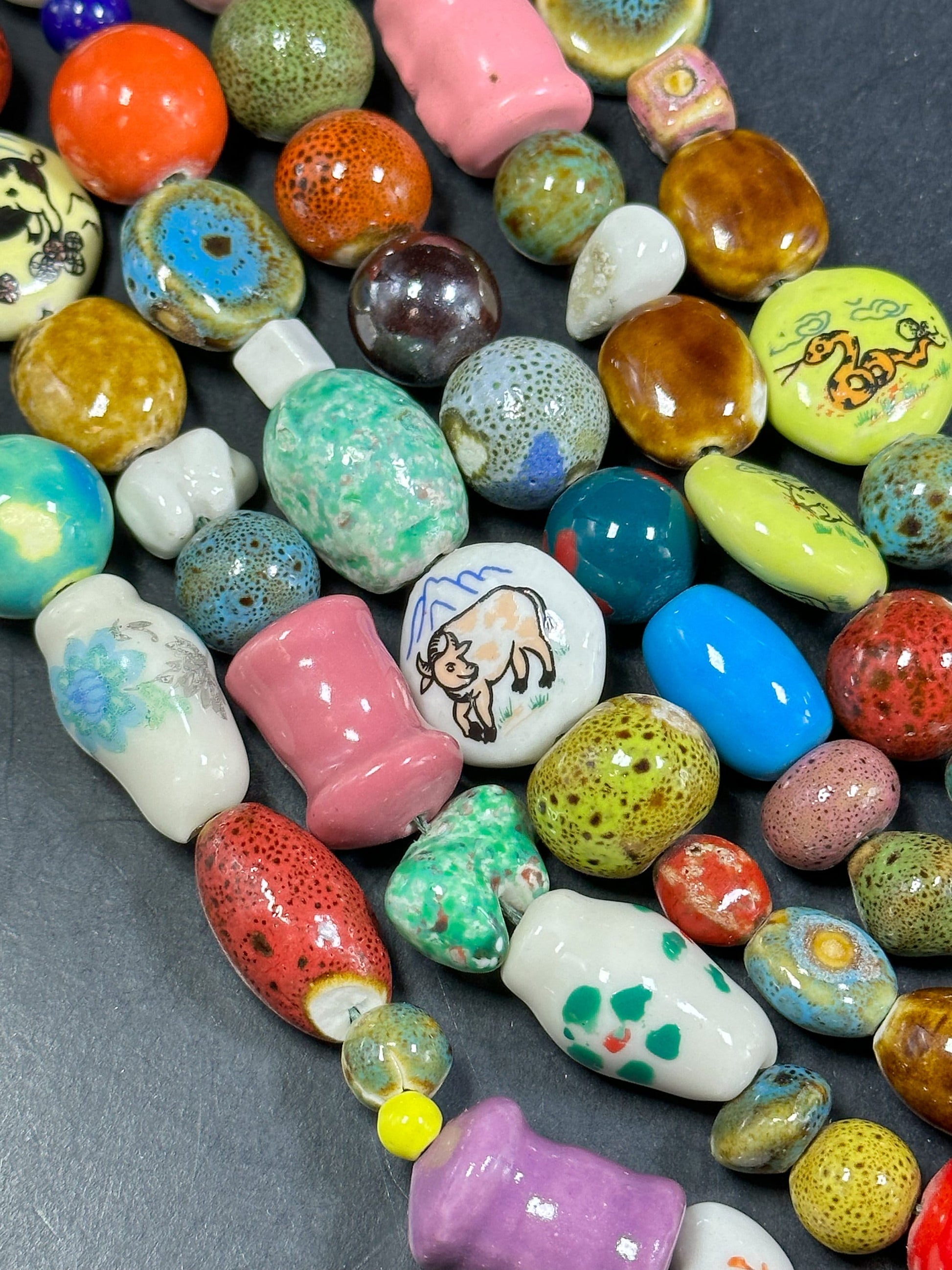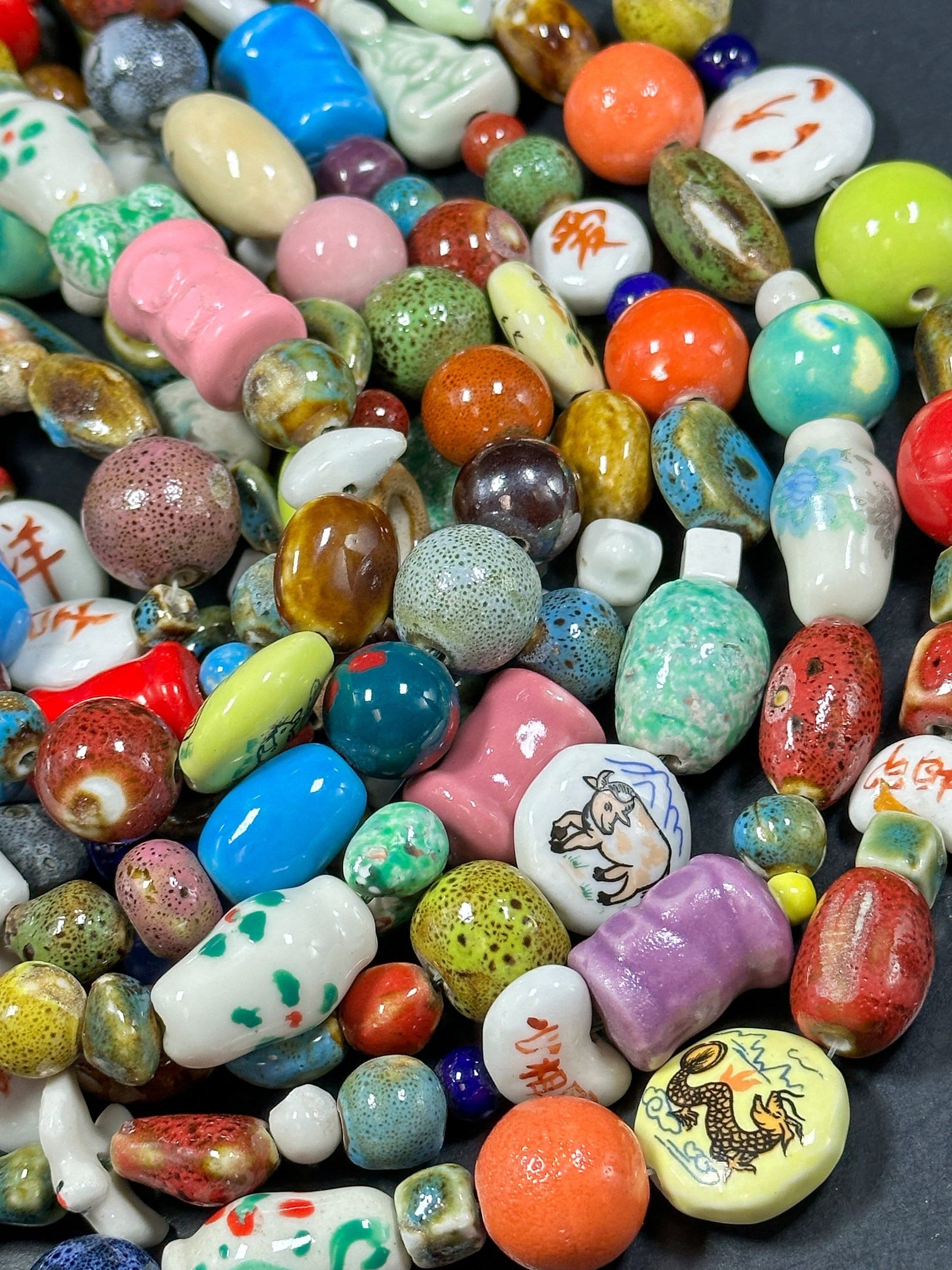 Mixed Hand Painted/Designed Beads Multiple Freeform Ceramic Beads, Beautiful Multicolor Beads Loose Craft Jewelry Beads Full Strand 15.5"