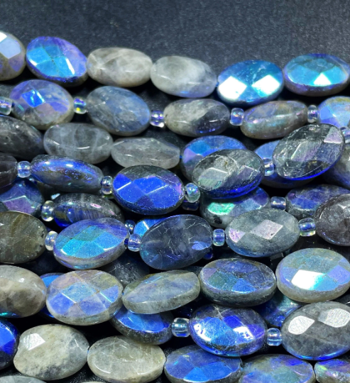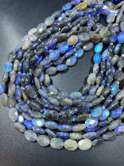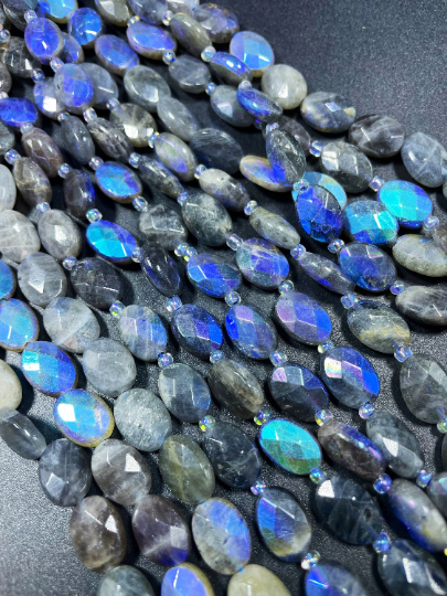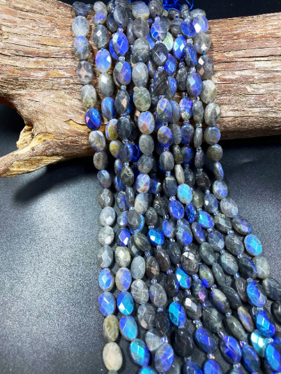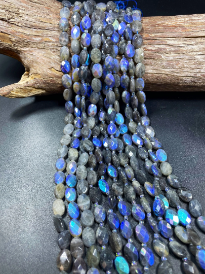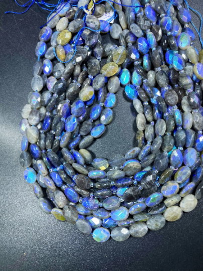 Mystic Natural Labradorite Gemstone Bead Faceted 8x10mm 9x12mm Oval Shape, Beautiful Gray Blue Color Labradorite Gemstone Bead