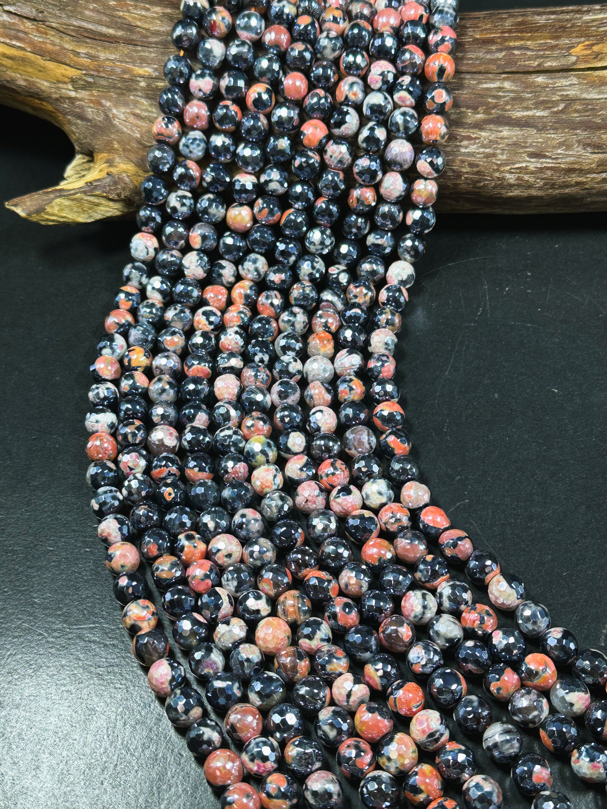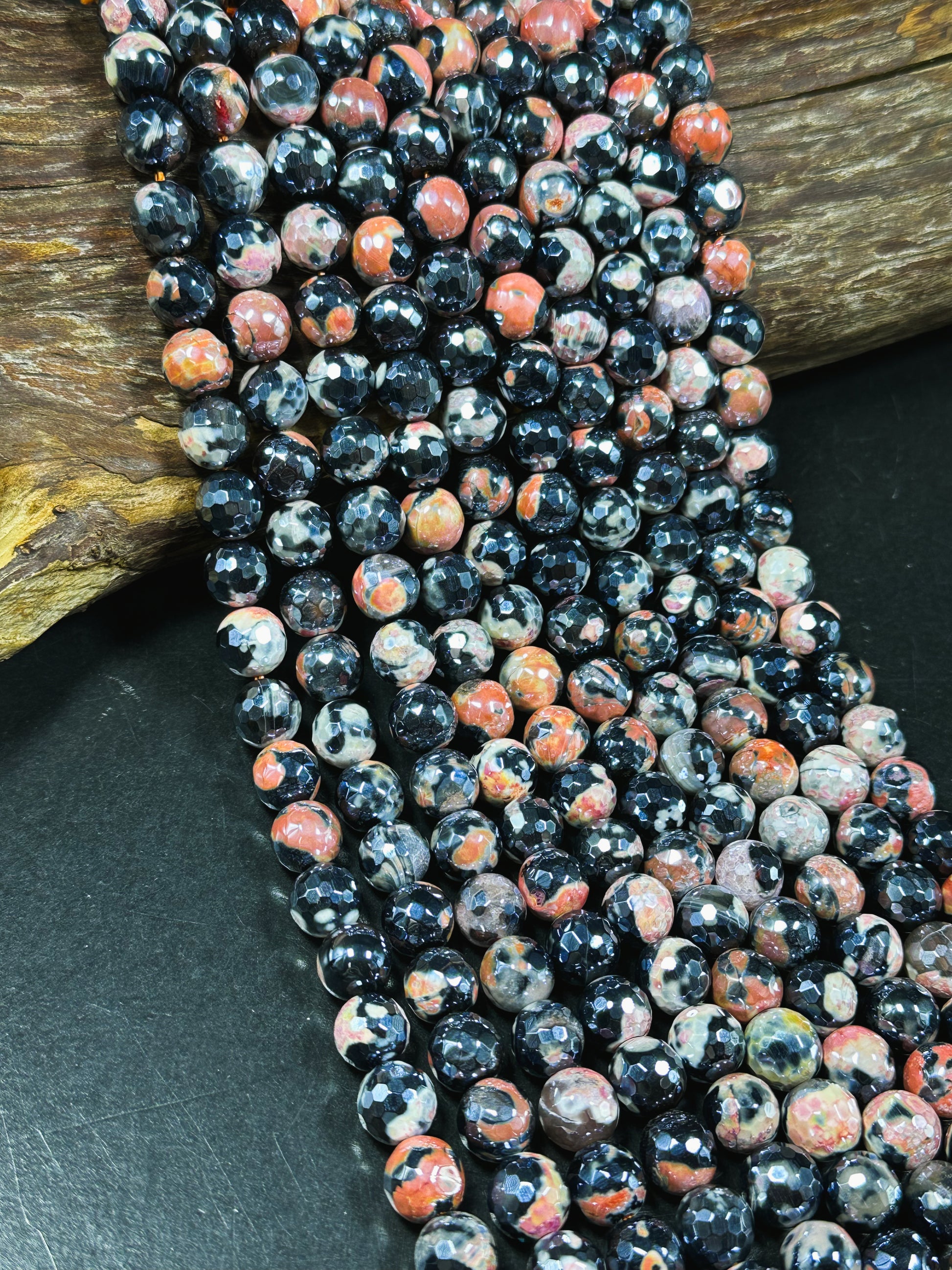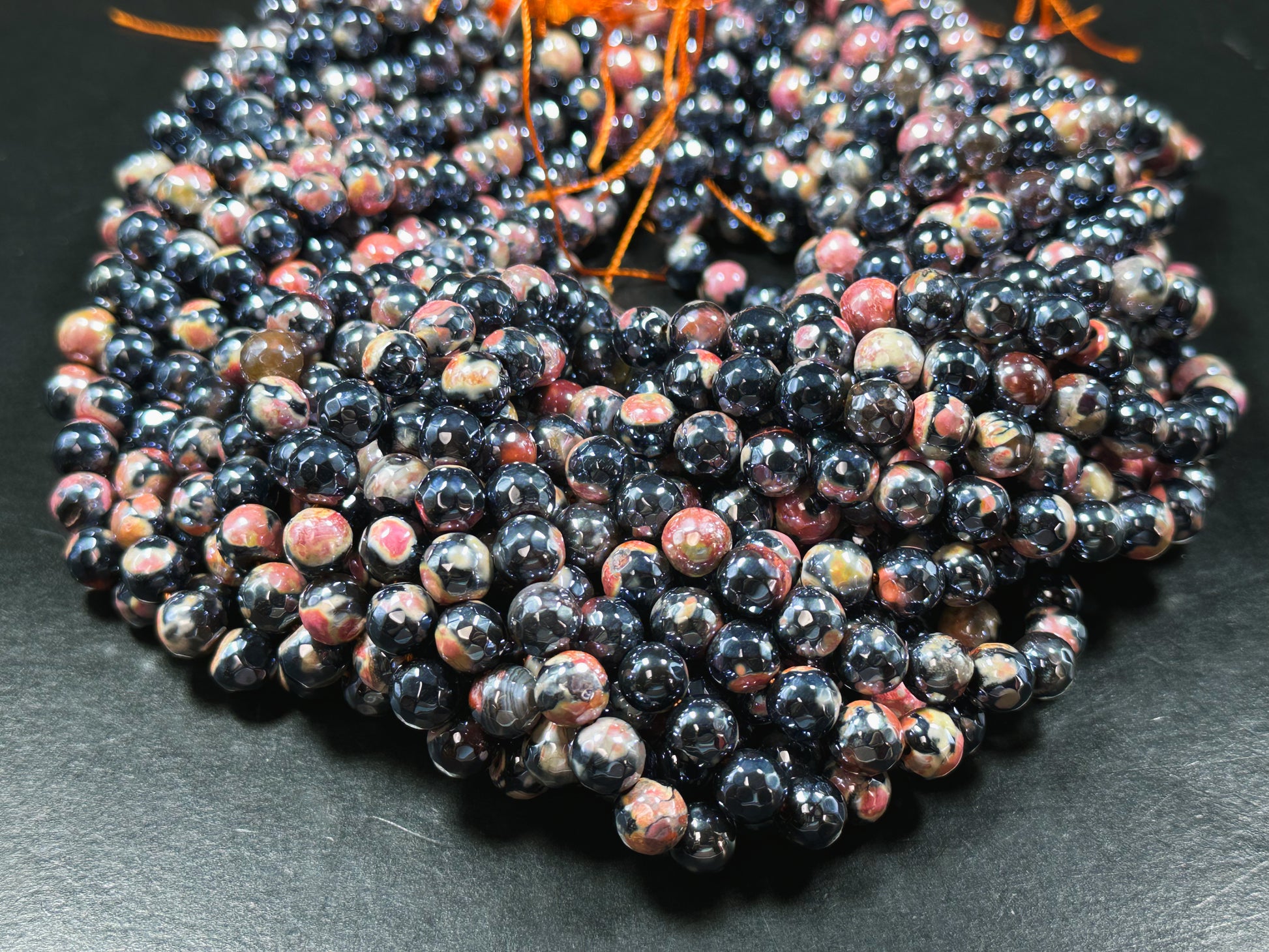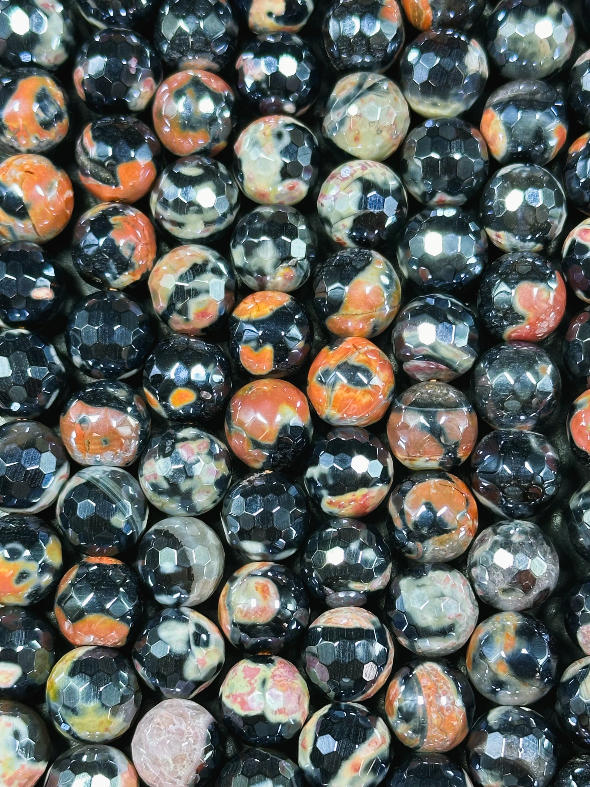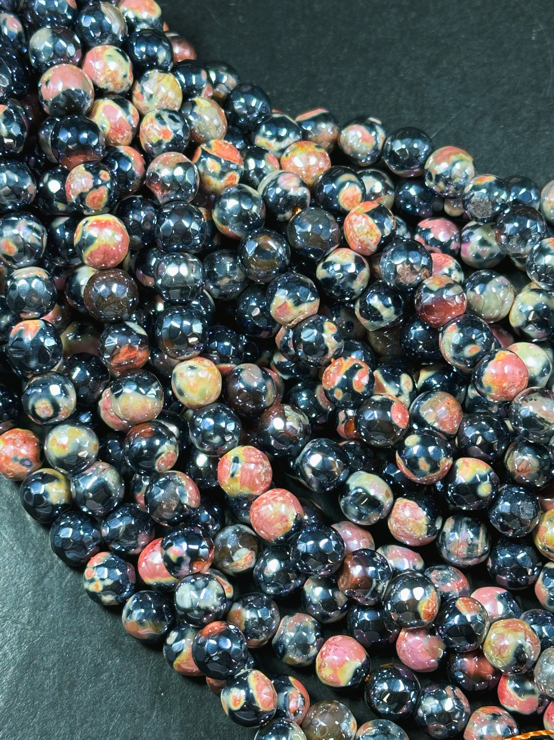 Mystic Natural Tibetan Agate Gemstone Bead Faceted 8mm 10mm Round Beads, Beautiful Mystic Orange Black Agate Stone Beads, Full Strand 15.5"
