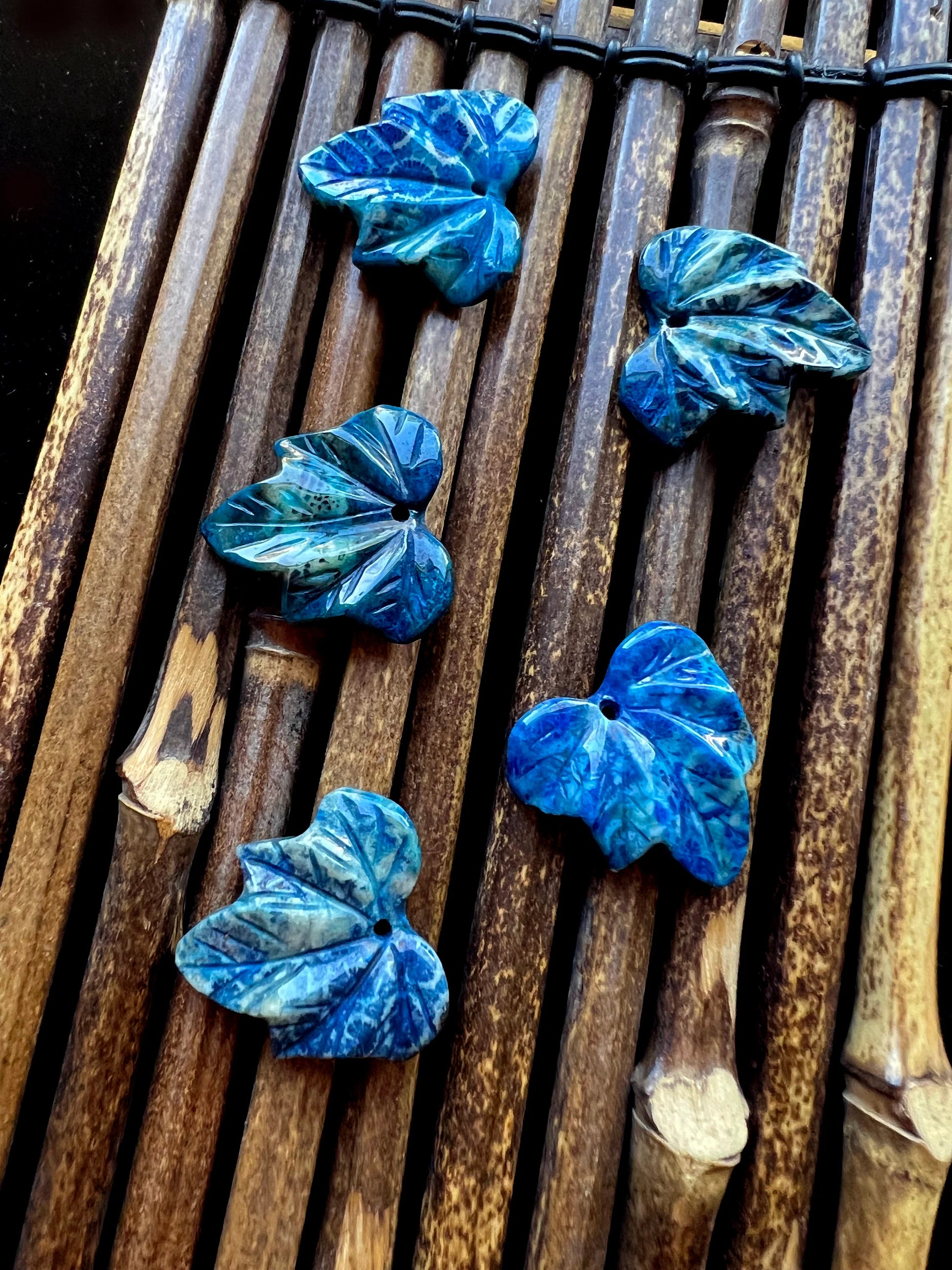 Natural Blue Fossil Coral Pendant Hand Carved Maple Leaf Shape 24mm Handmade Earring Loose Bead Loose Pendant Loose gemstone Handmade stone