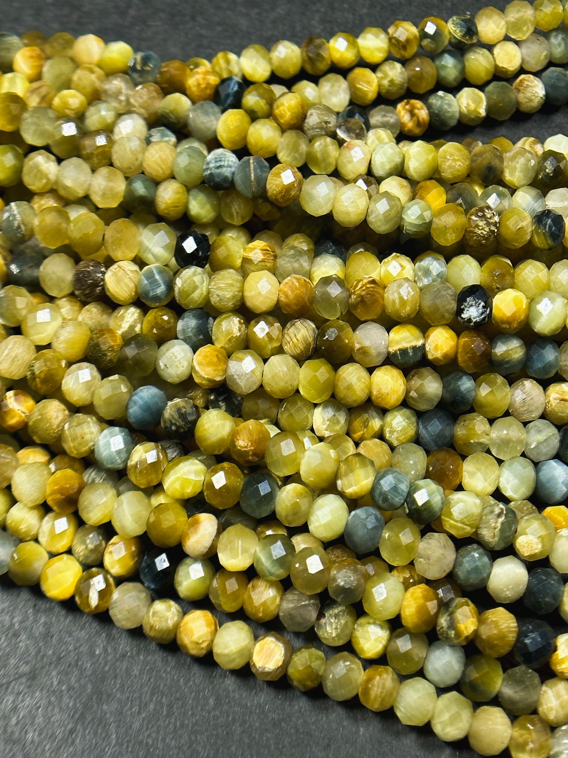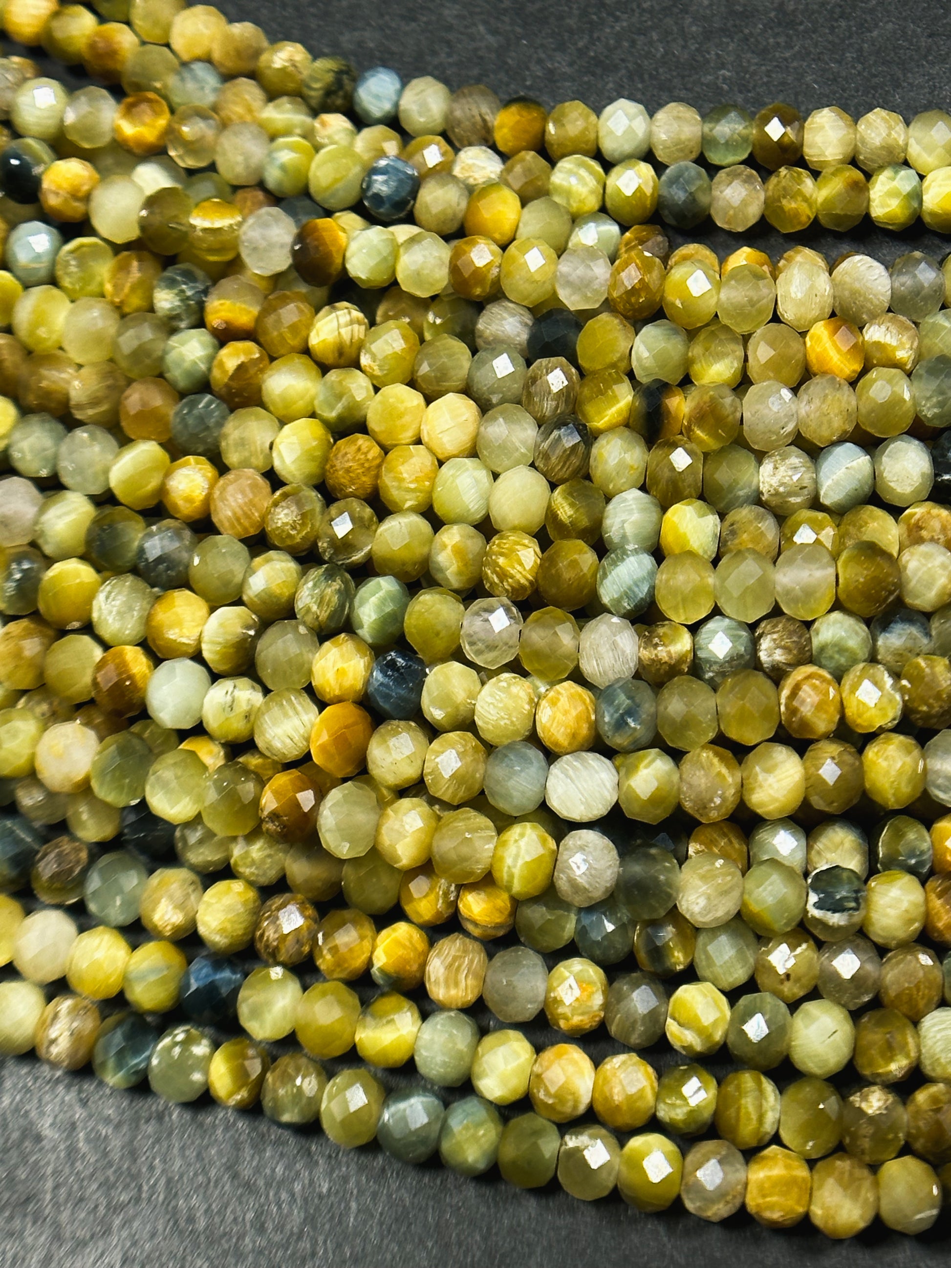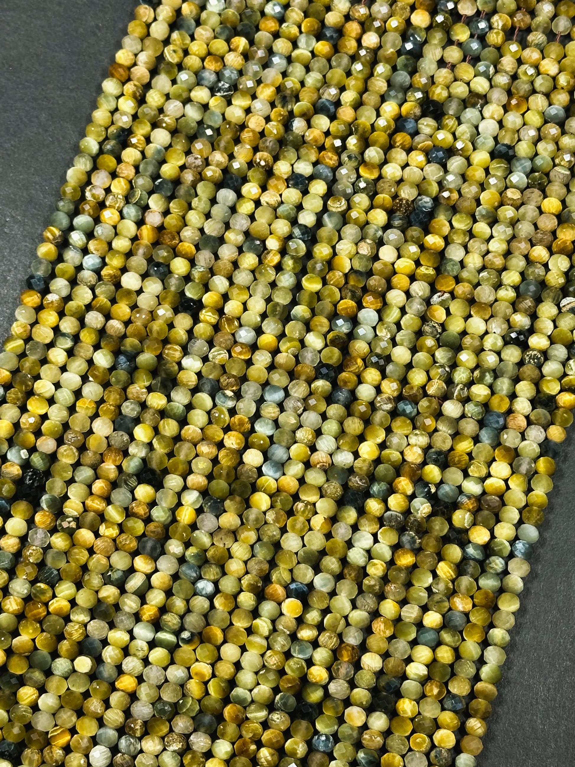 Beautiful natural blue golden yellow color tiger eye stone bead. Faceted 4mm round bead . Gorgeous natural blue tiger eye with honey yellow tiger eye stone bead. Great quality gemstone bead ! Guaranteed natural tiger eye stone bead. Natural color tiger eye bead. Not treated in any way ! Great for jewelry making !