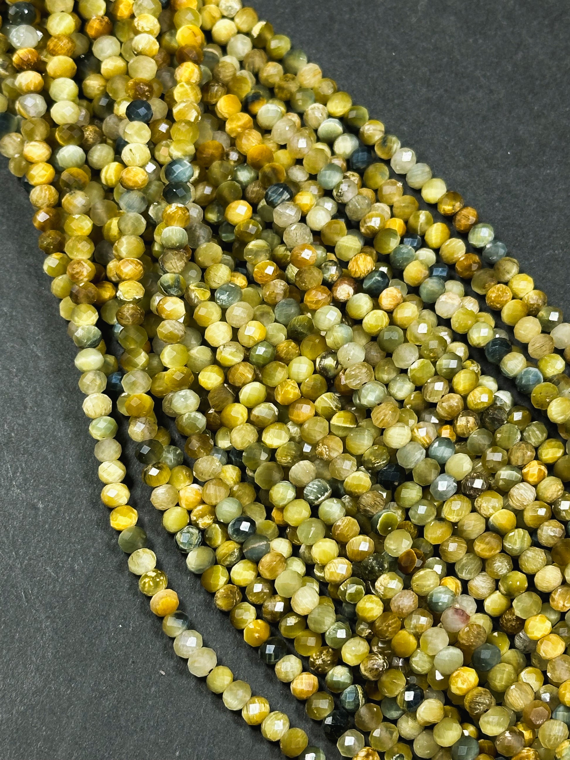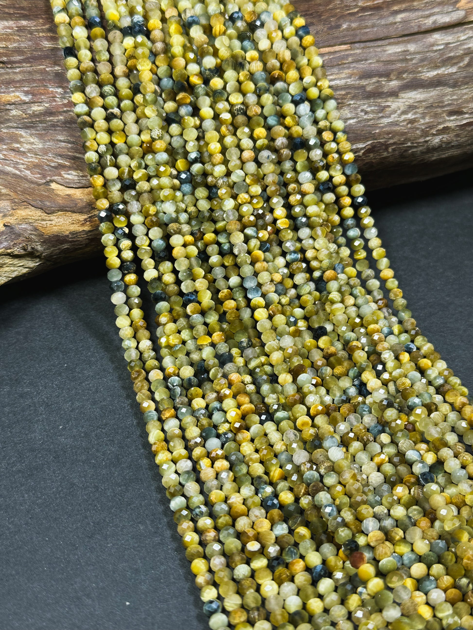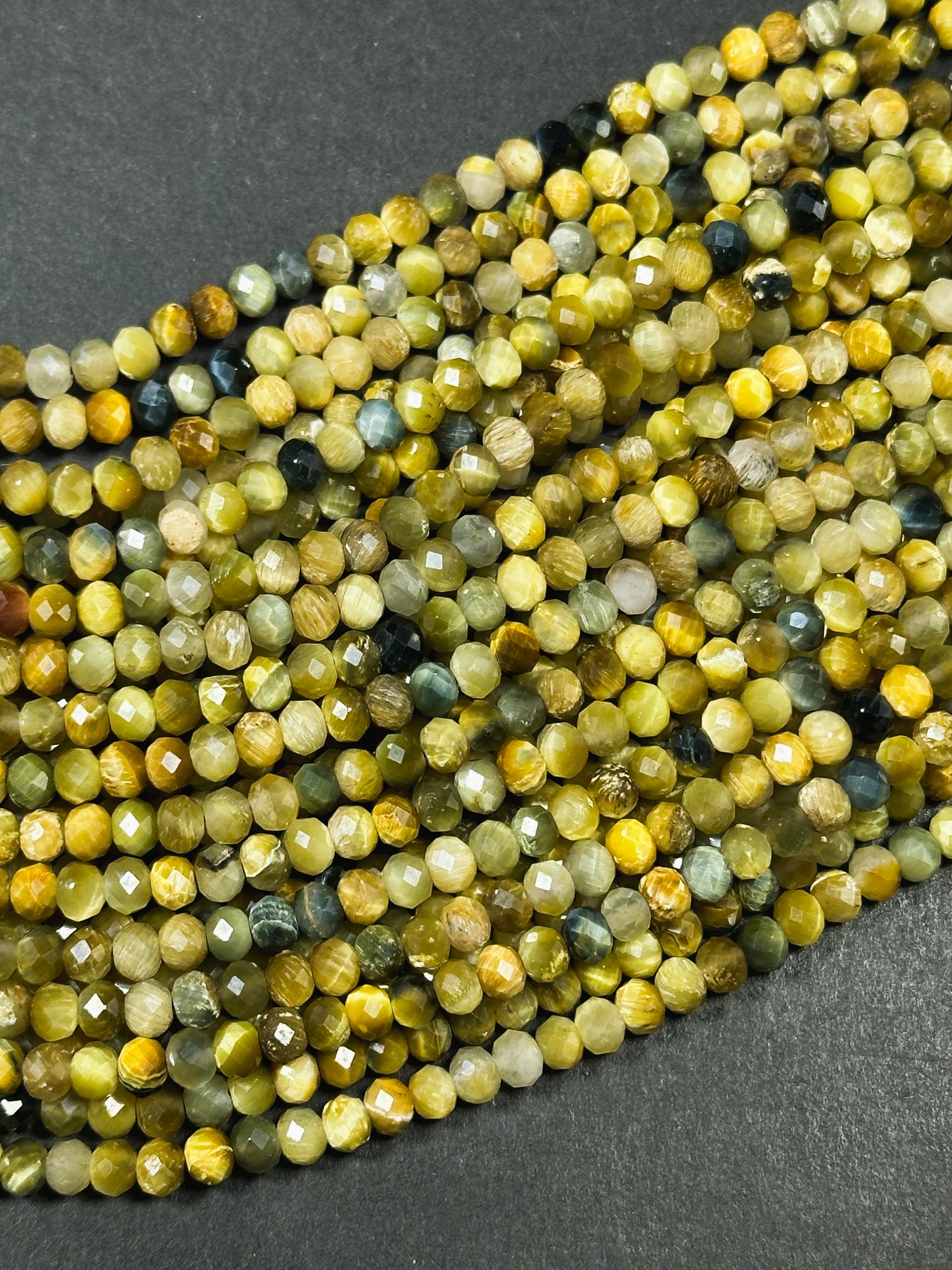 Beautiful natural blue golden yellow color tiger eye stone bead. Faceted 4mm round bead . Gorgeous natural blue tiger eye with honey yellow tiger eye stone bead. Great quality gemstone bead ! Guaranteed natural tiger eye stone bead. Natural color tiger eye bead. Not treated in any way ! Great for jewelry making !