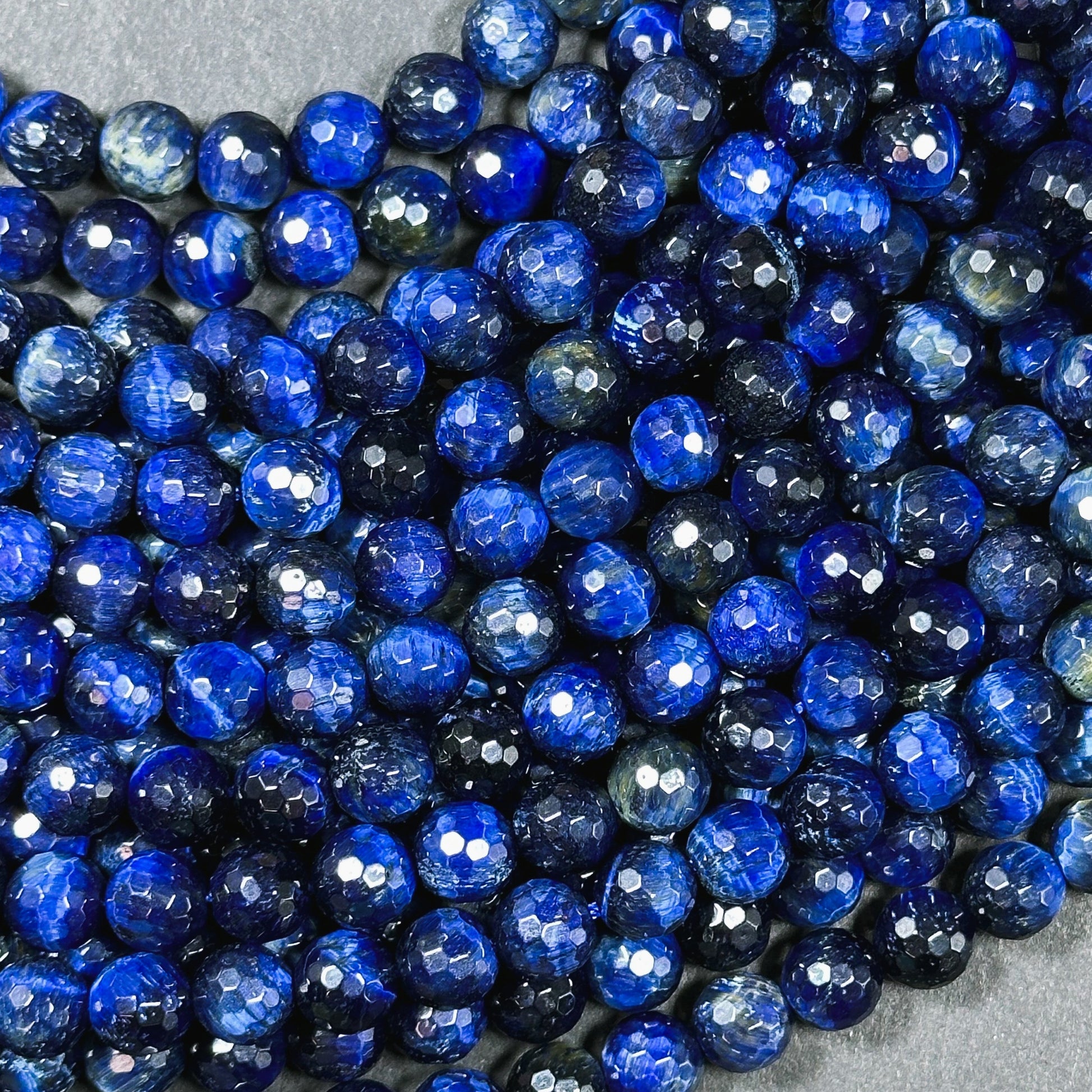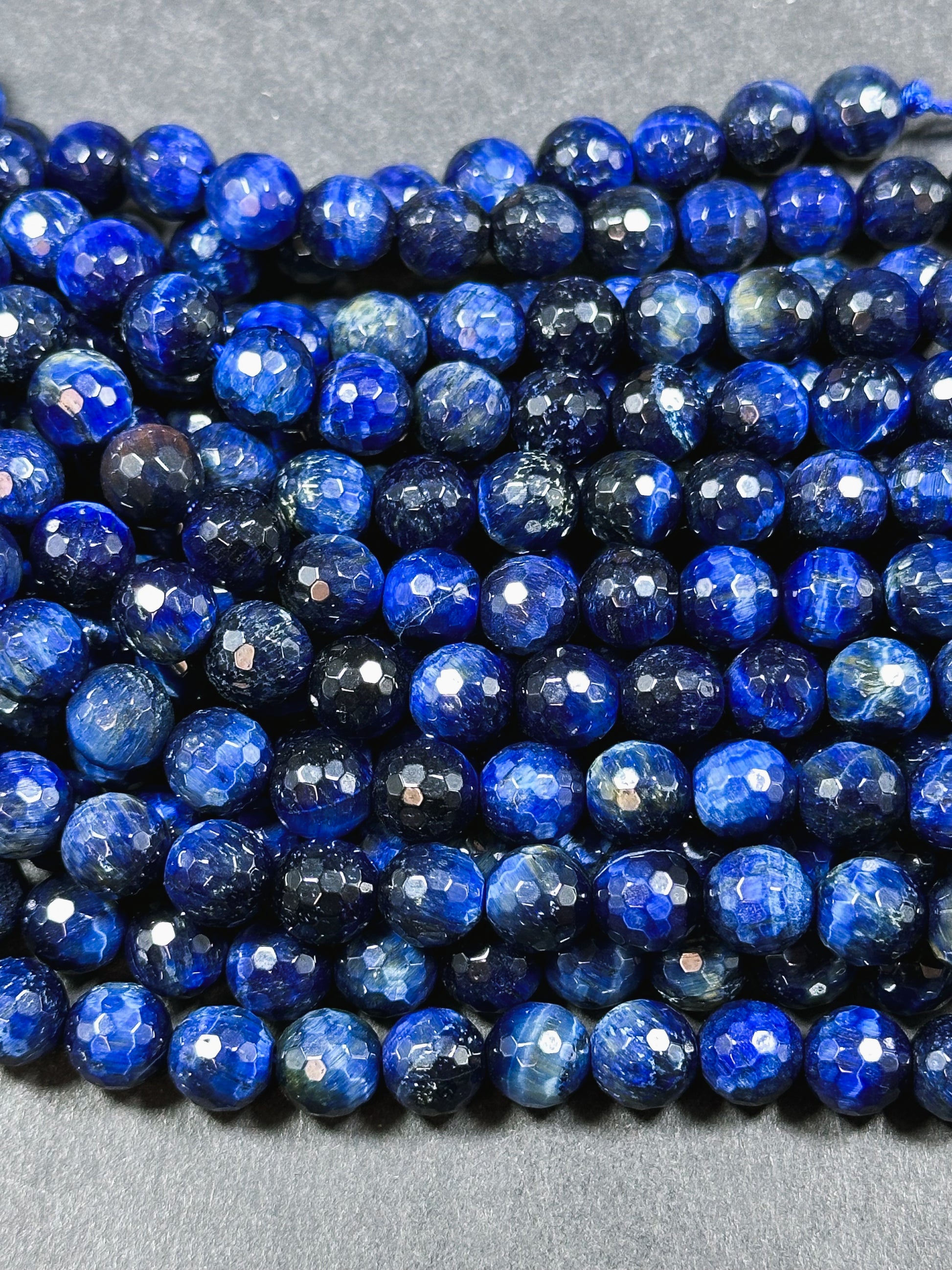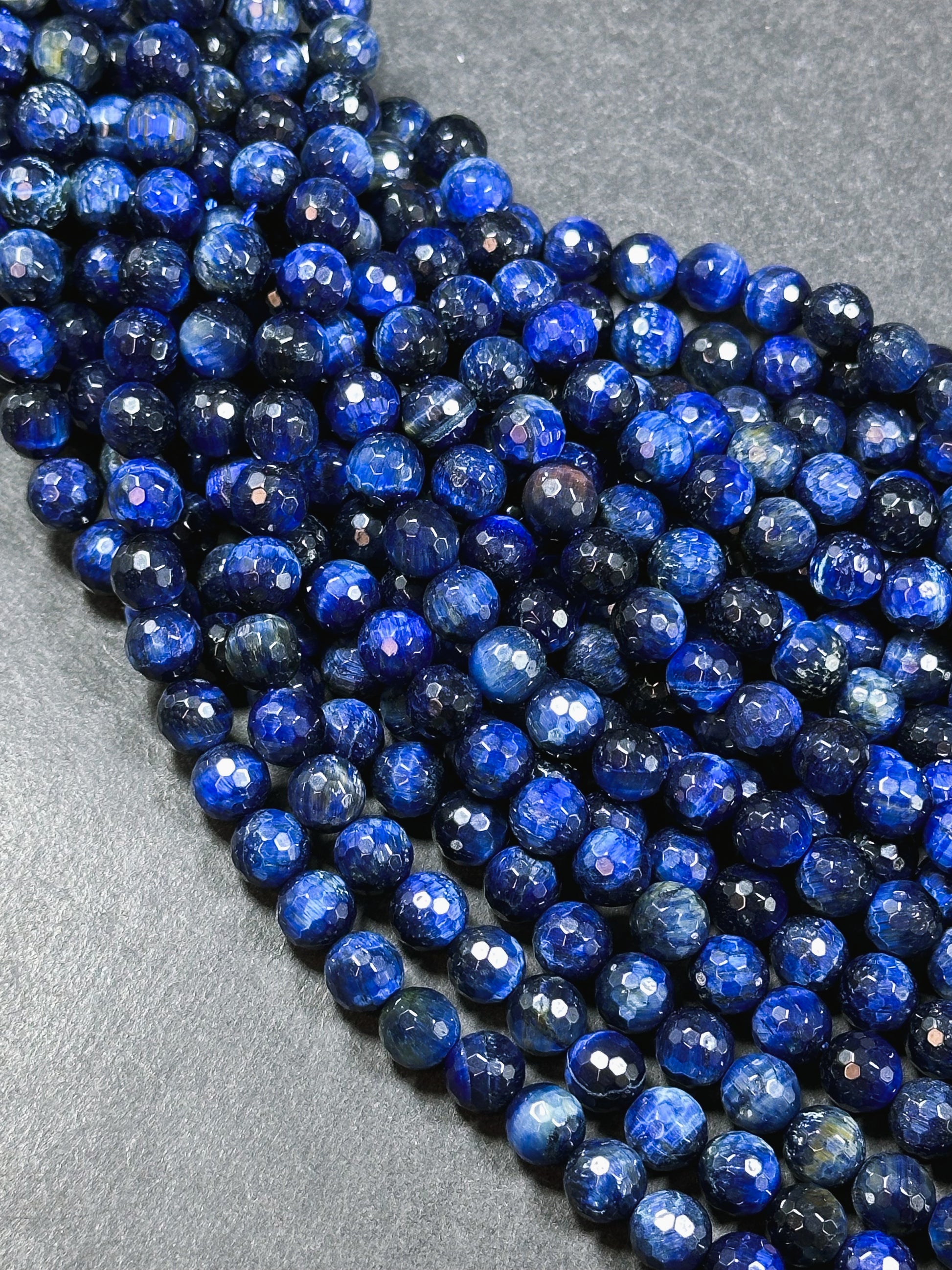 Natural Blue Tiger Eye Gemstone Bead Faceted 8mm 10mm Round Beads, Beautiful Royal Blue Color Tiger Eye Gemstone, Great Quality 15.5" Strand