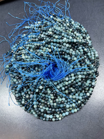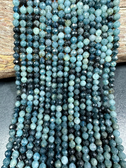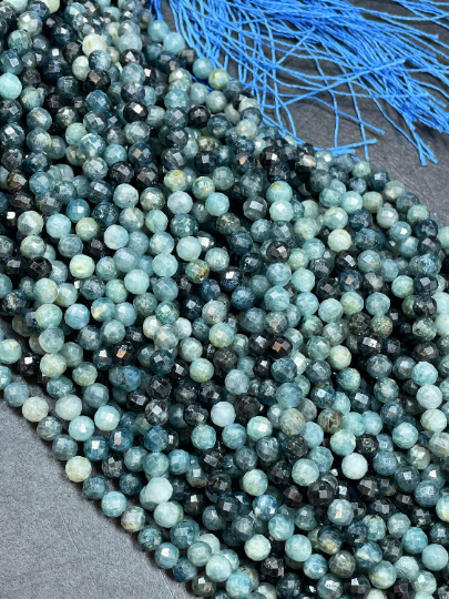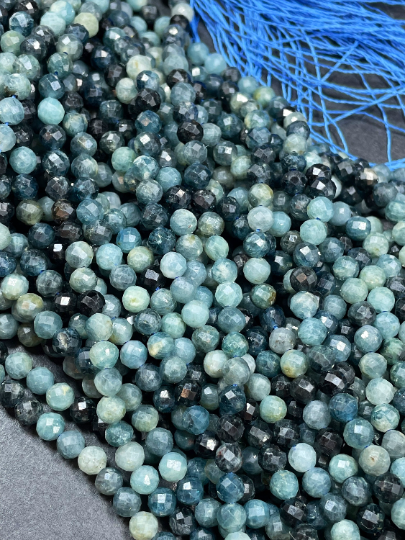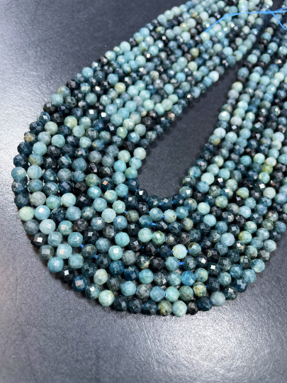 NATURAL Blue Tourmaline Gemstone Bead Faceted 4mm Round Shape Beads. Beautiful Blue Multicolor Tourmaline Gemstone Beads Full Strand 15.5"