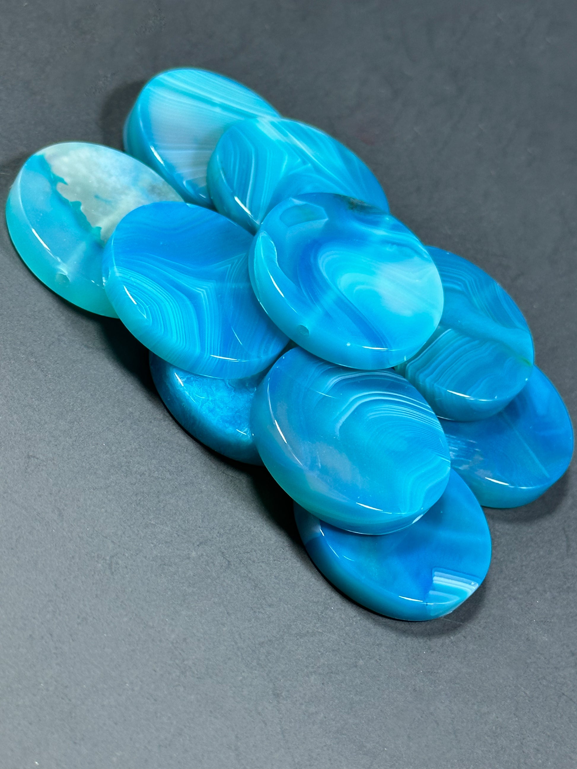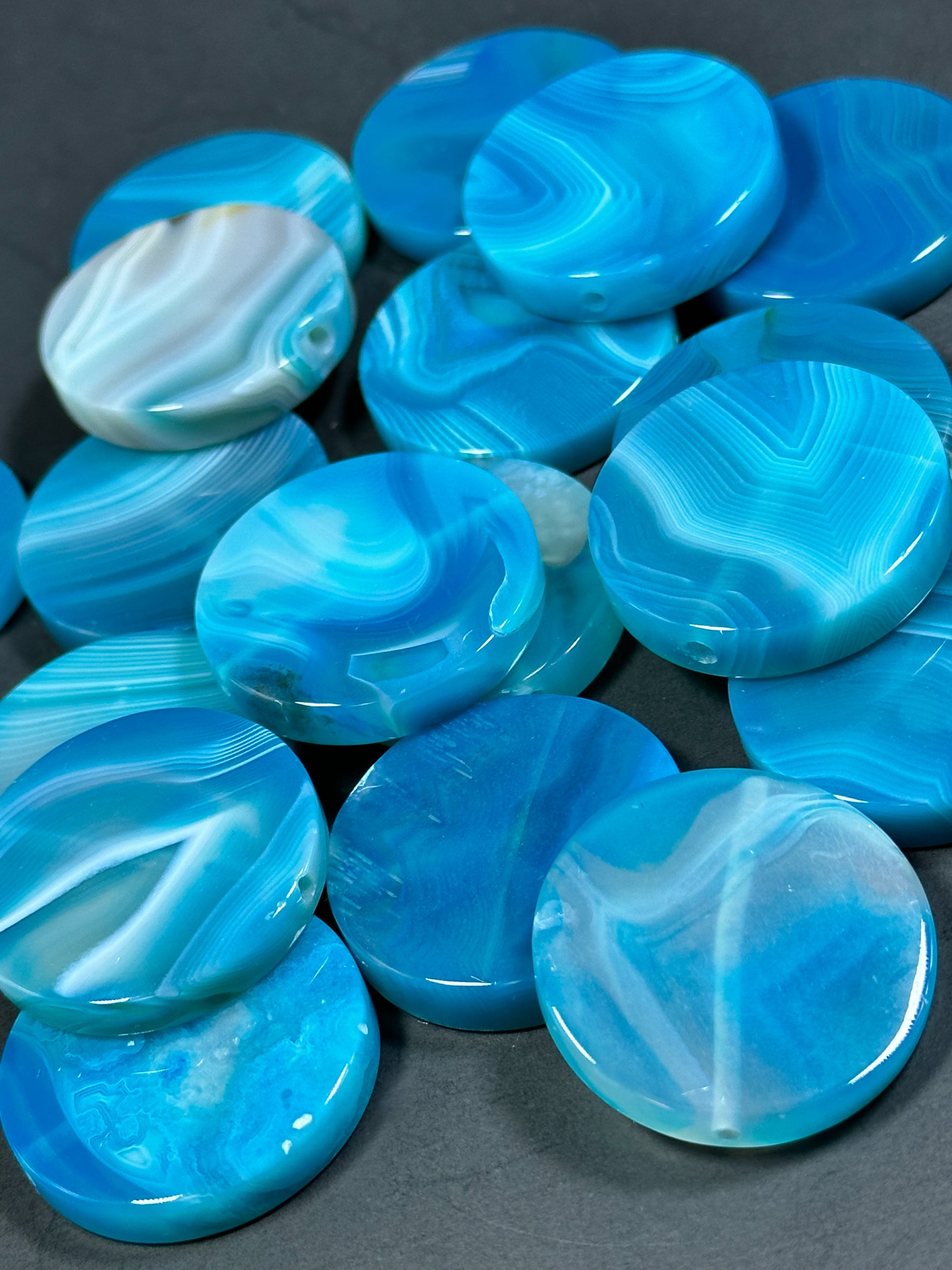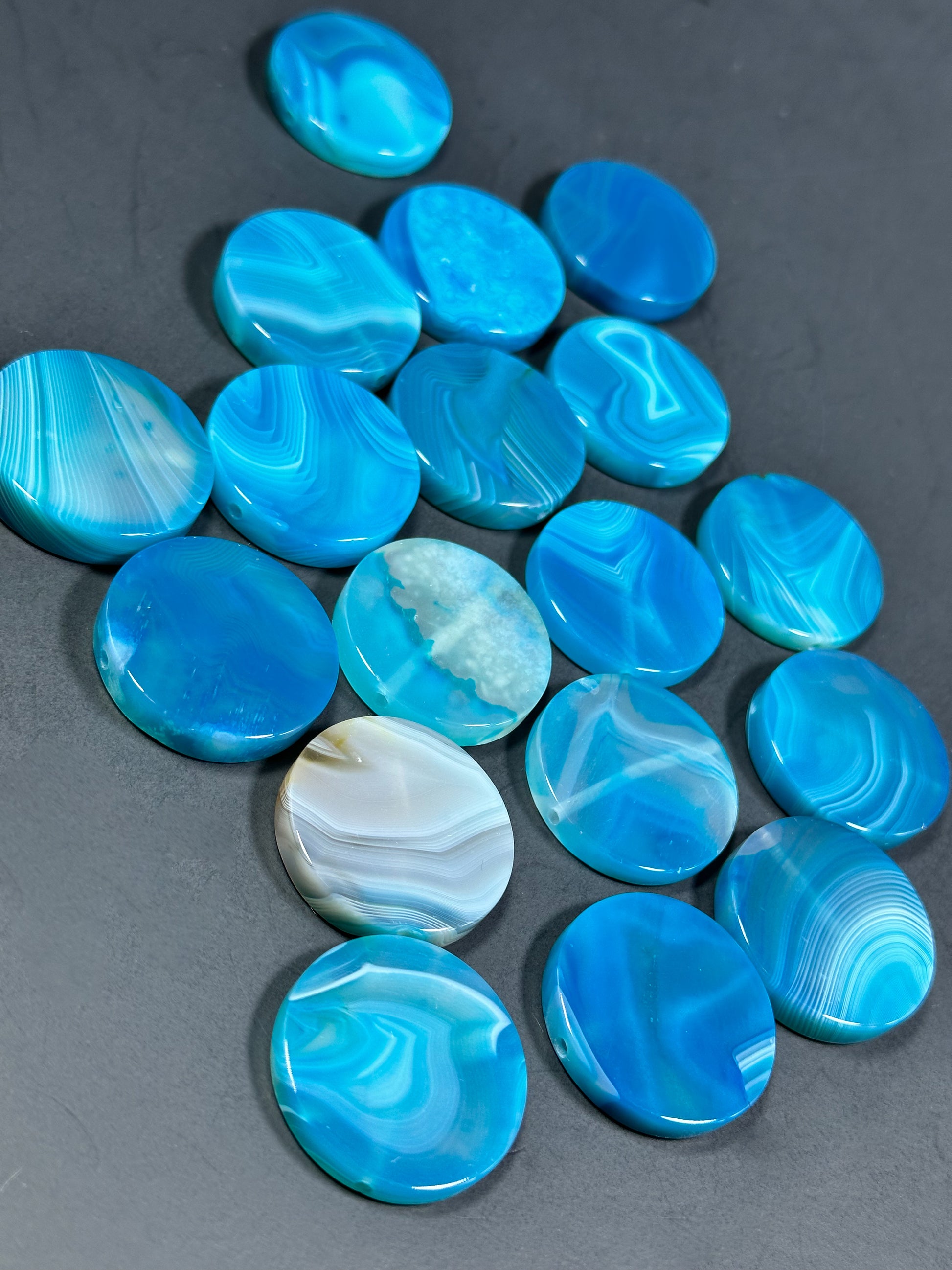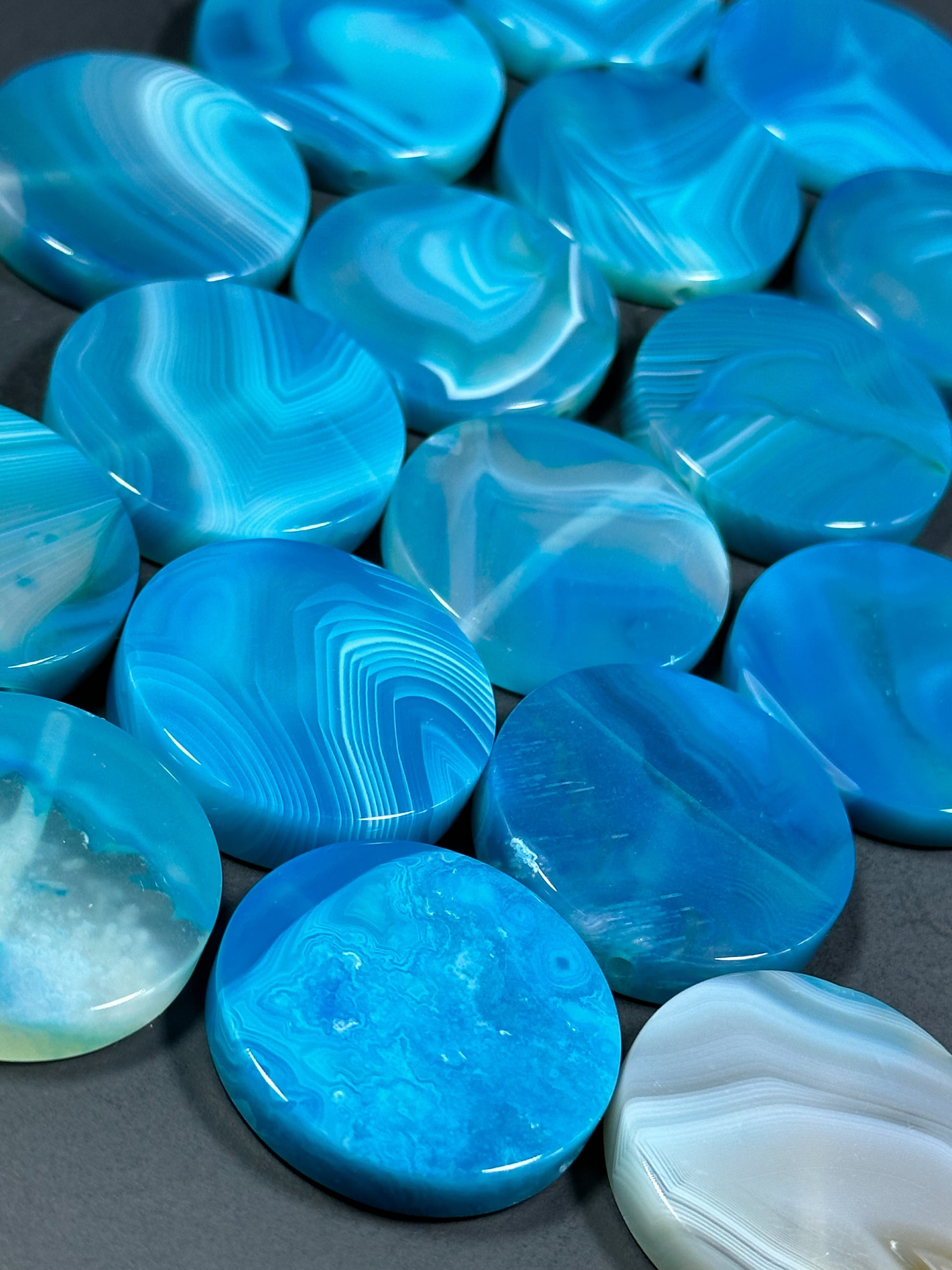 NATURAL Botswana Agate Gemstone Bead 25mm 30mm Coin Shape Beads, Gorgeous Blue Color Botswana Agate Gemstone Beads, LOOSE Gemstone Beads