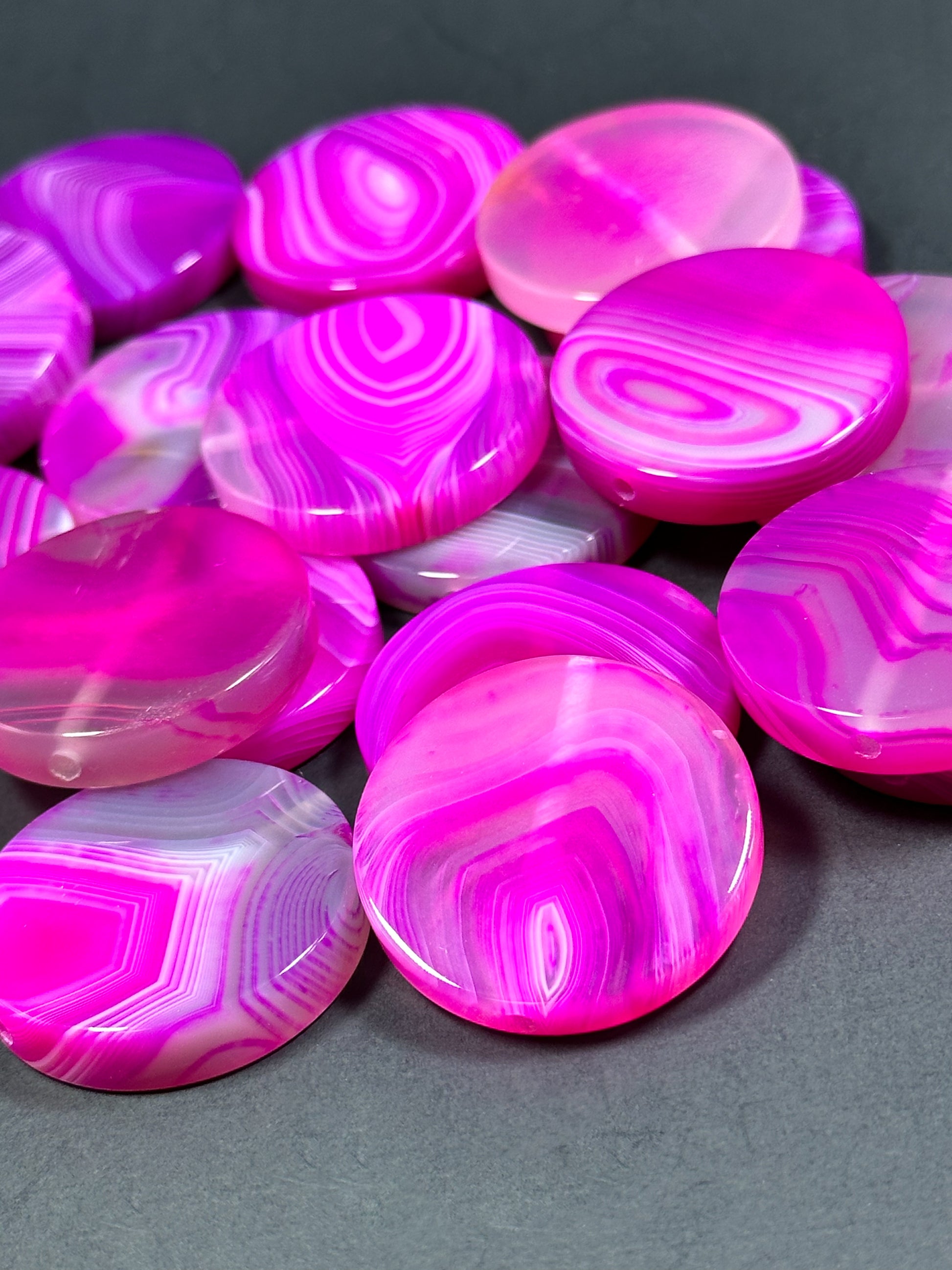 NATURAL Botswana Agate Gemstone Bead 25mm 30mm Coin Shape Beads, Gorgeous Pink Color Botswana Agate Gemstone Beads, LOOSE Gemstone Beads