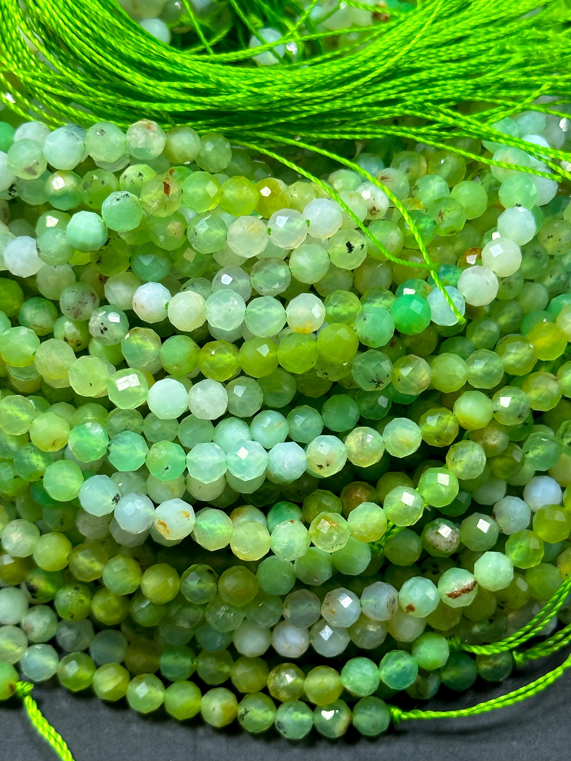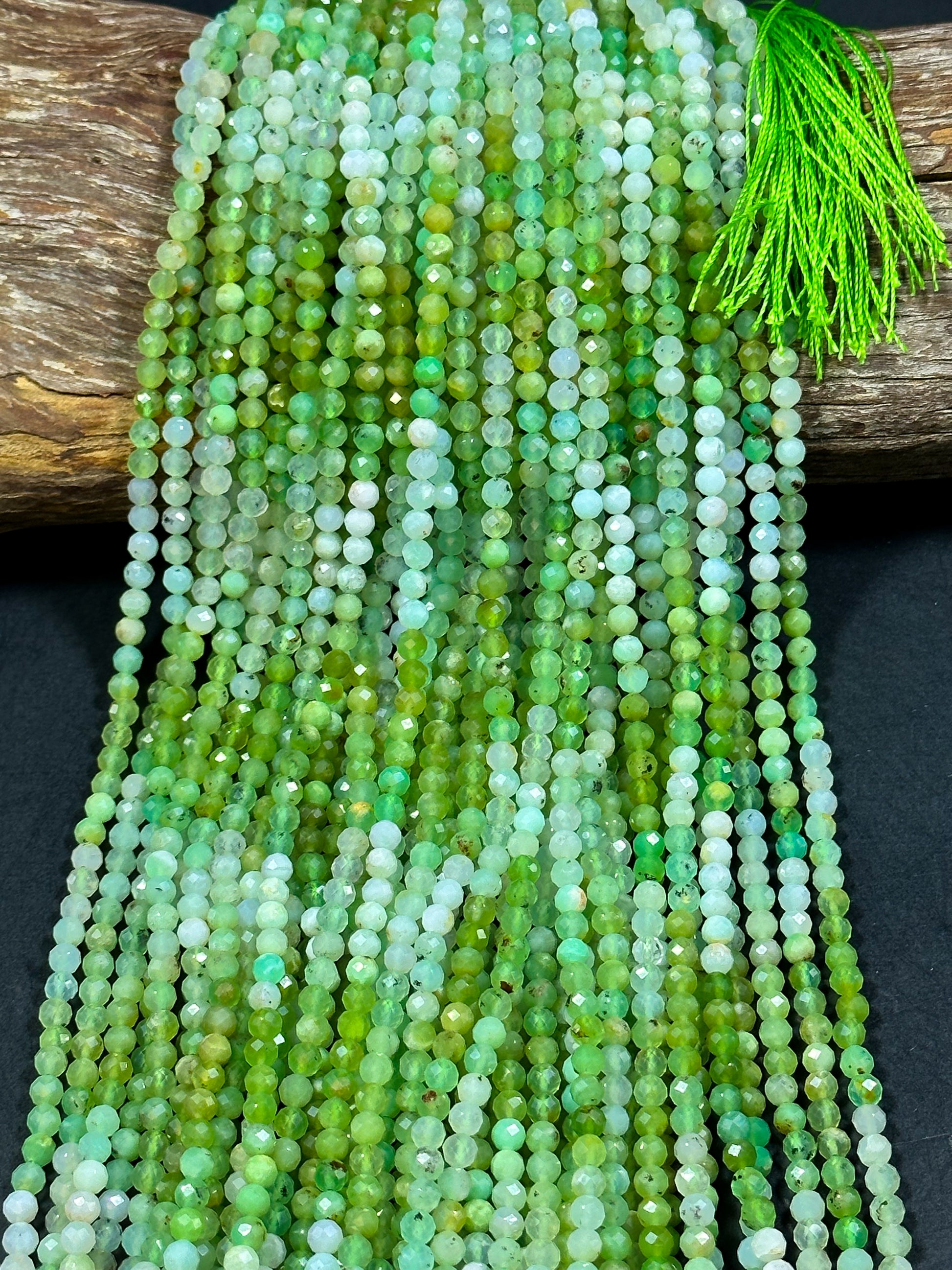NATURAL Chrysoprase Gemstone Bead Faceted 4mm Round Bead, Beautiful Natural Green White Color Chrysoprase Loose Beads Full Strand 15.5"