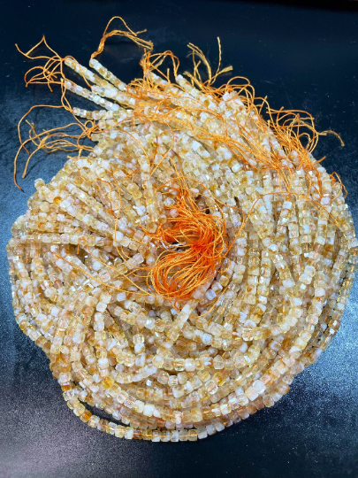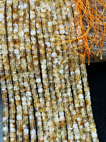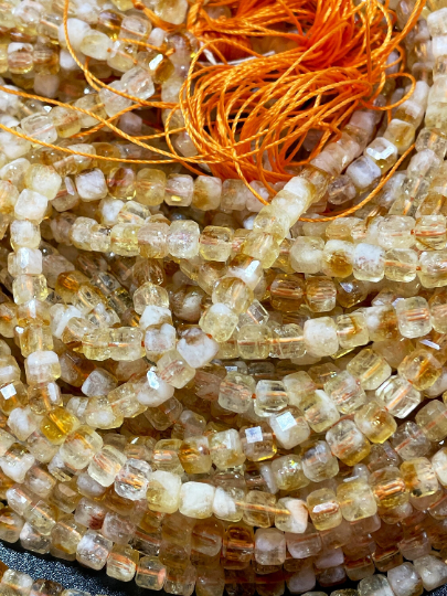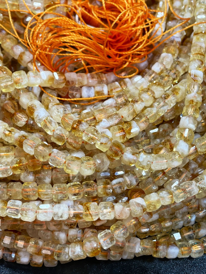 Natural Citrine Gemstone Bead Faceted 5mm Cube Shape Bead, Beautiful Natural Honey Yellow Orange Color Citrine Beads, Full Strand 15.5"