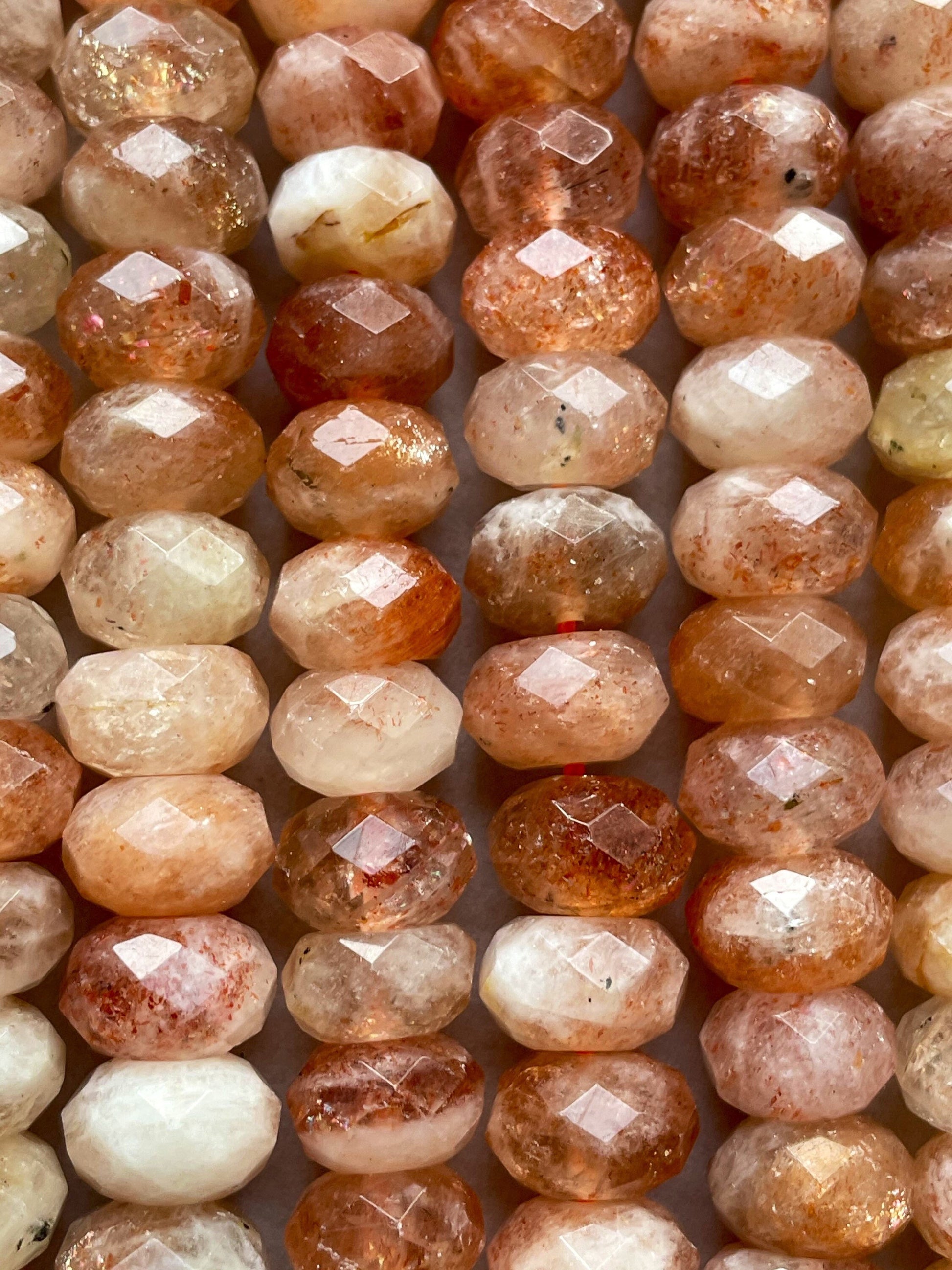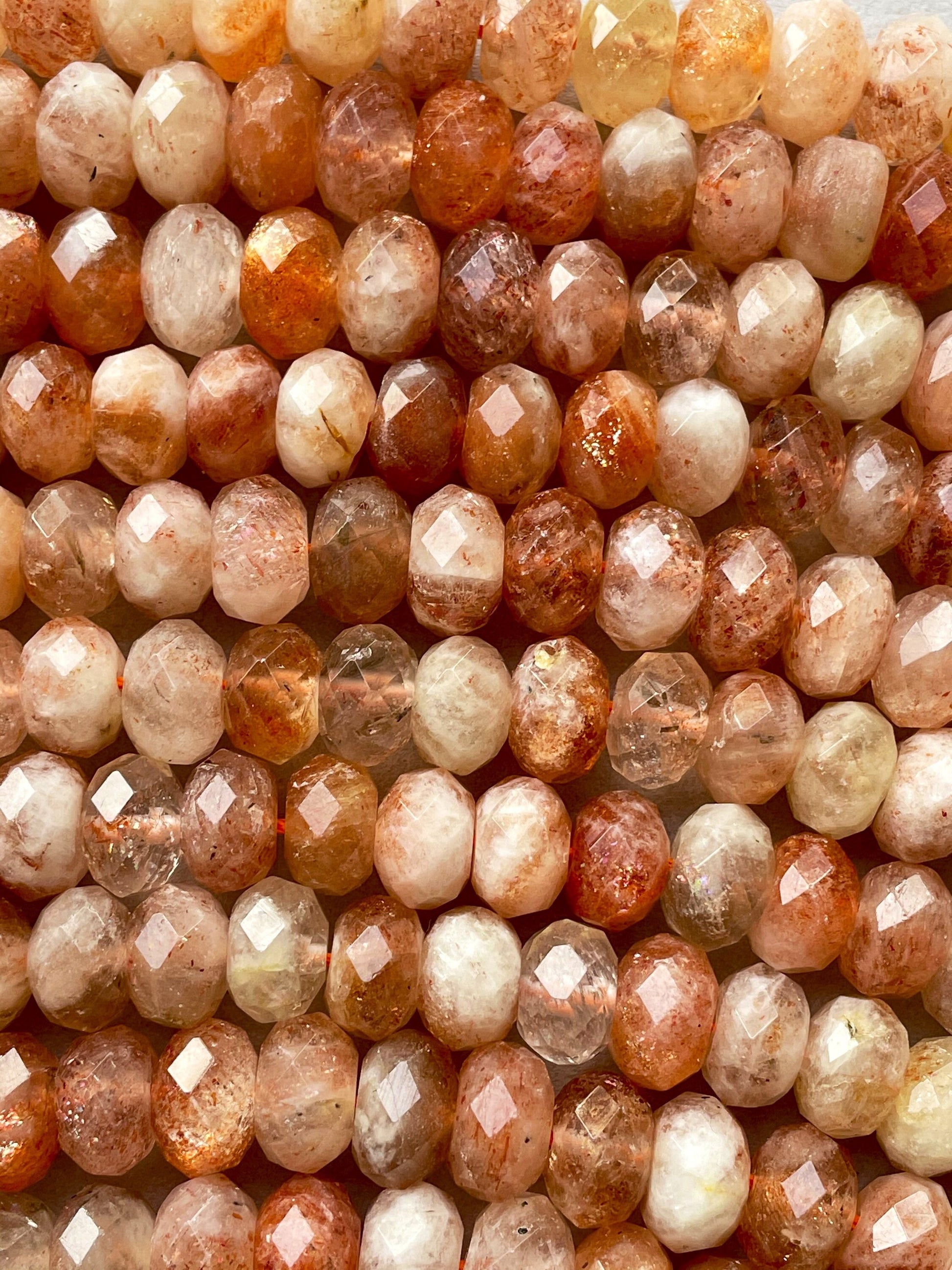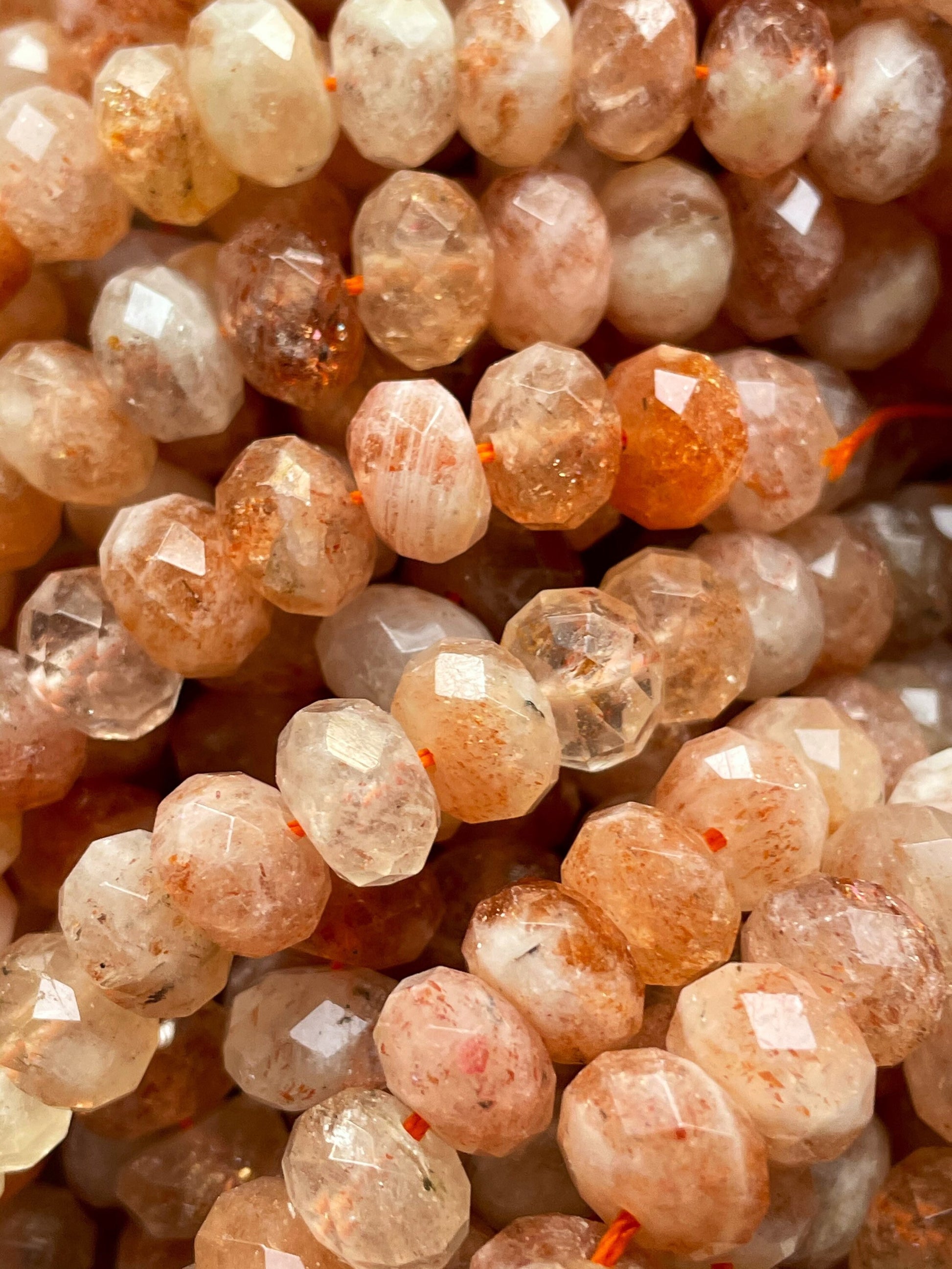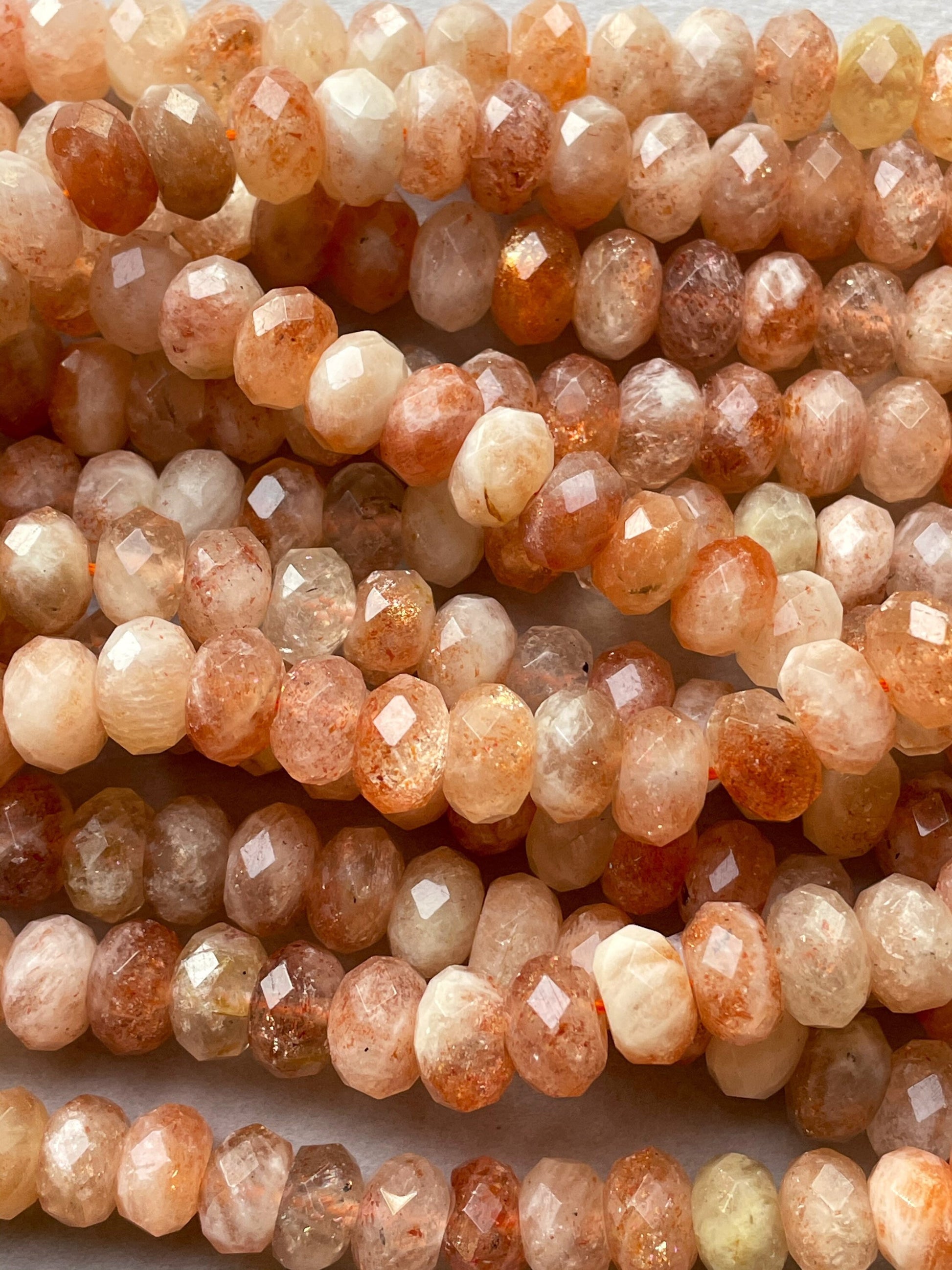 Natural fire sunstone bead. Faceted 5x7mm 6x10mm Rondelle bead. Gorgeous natural orange red fire color sunstone bead . Nice quality gemstone