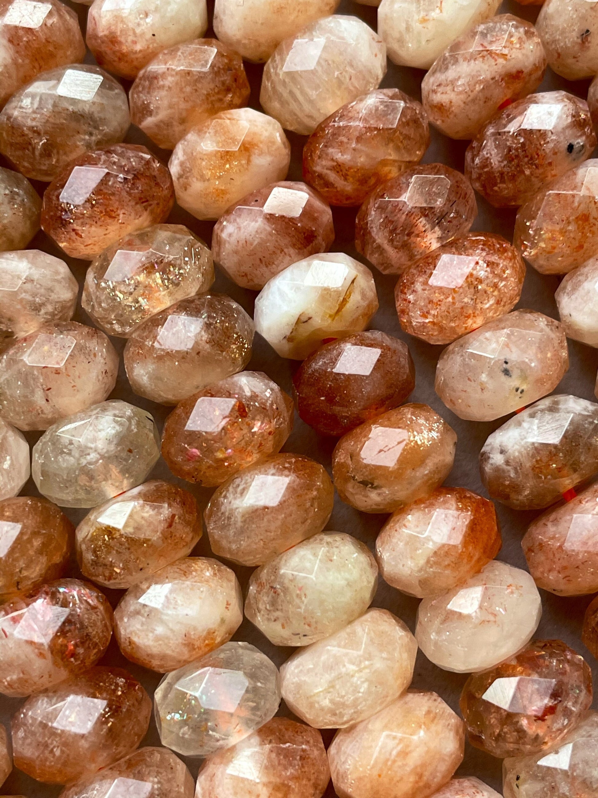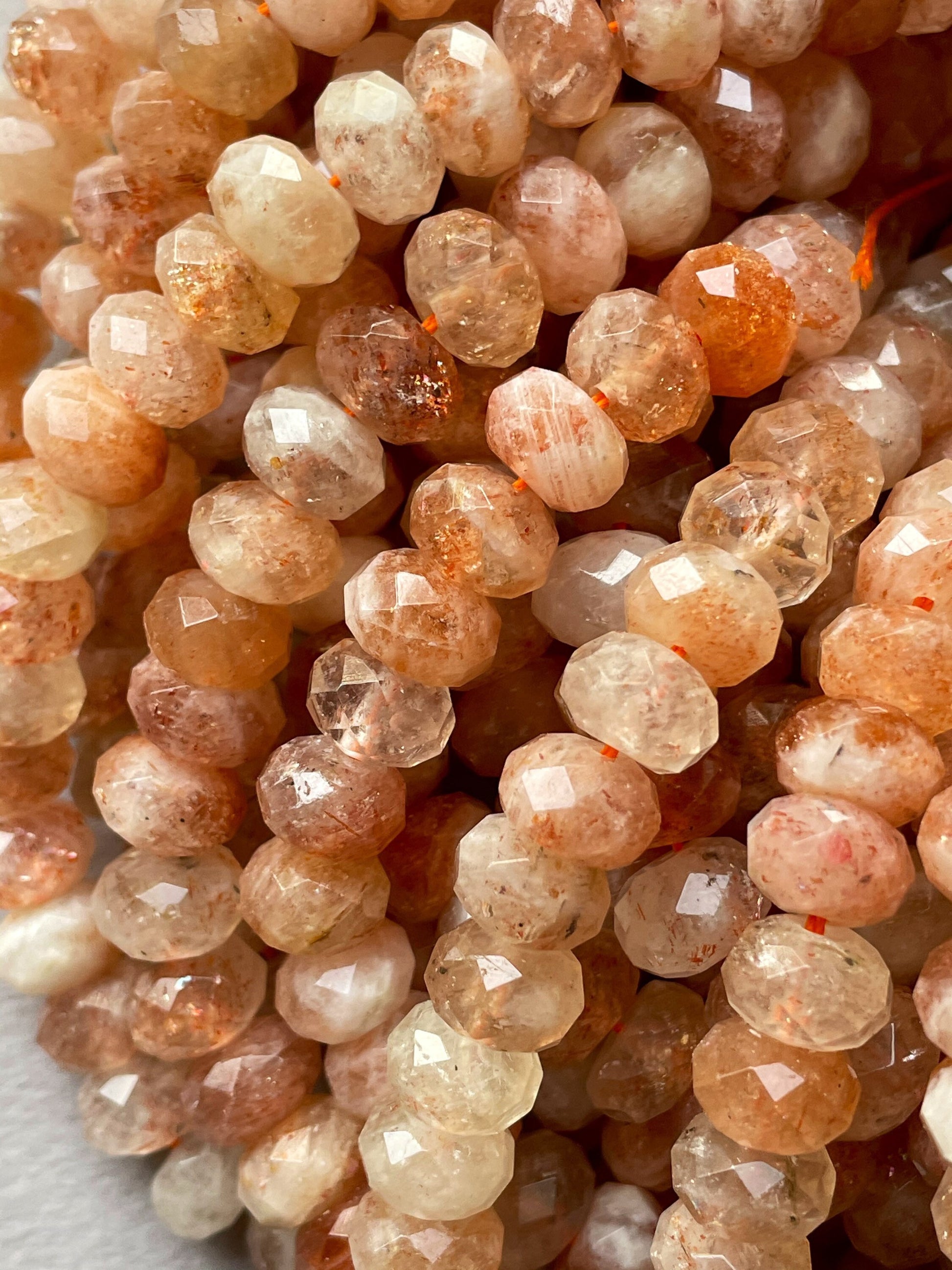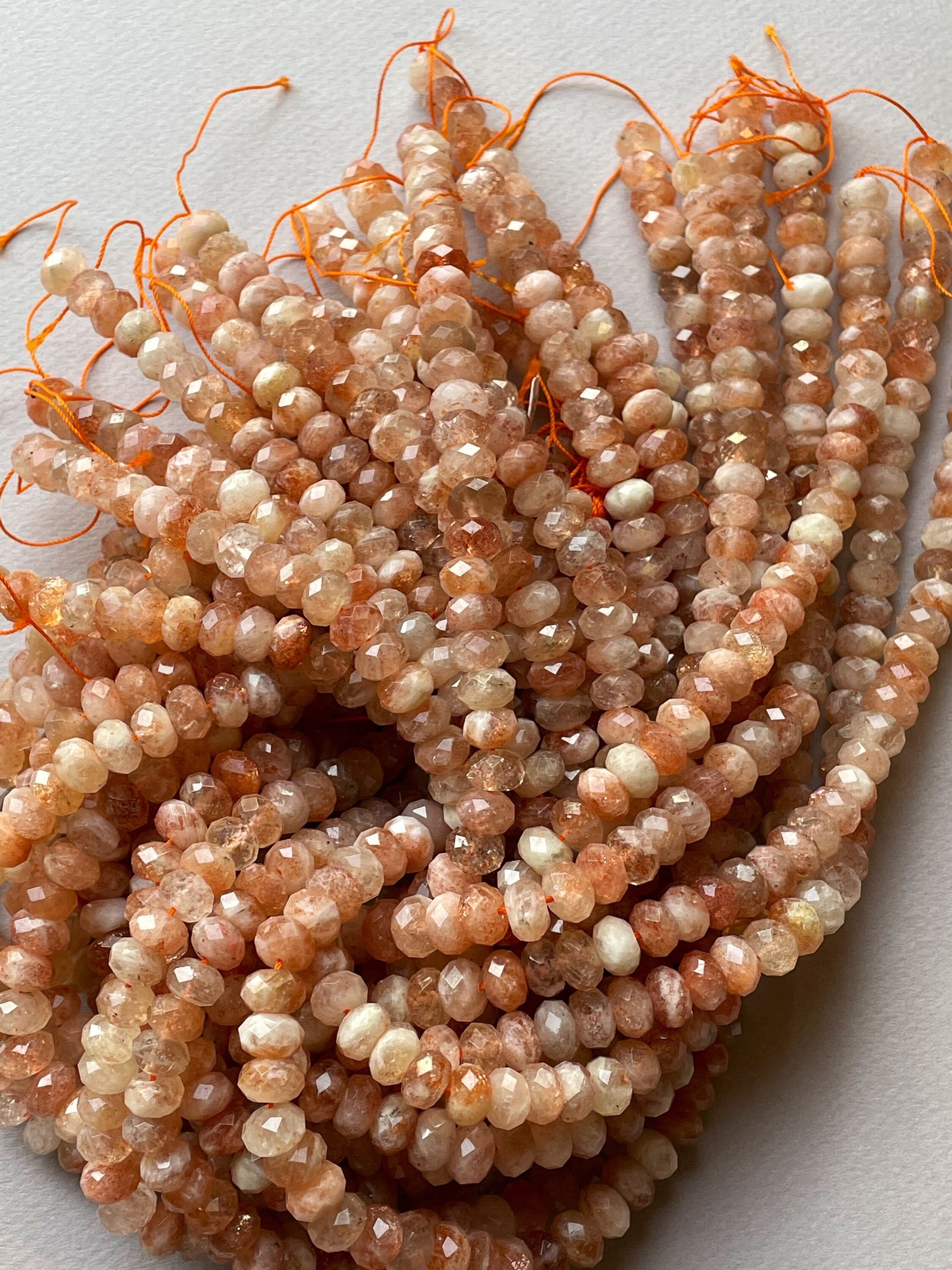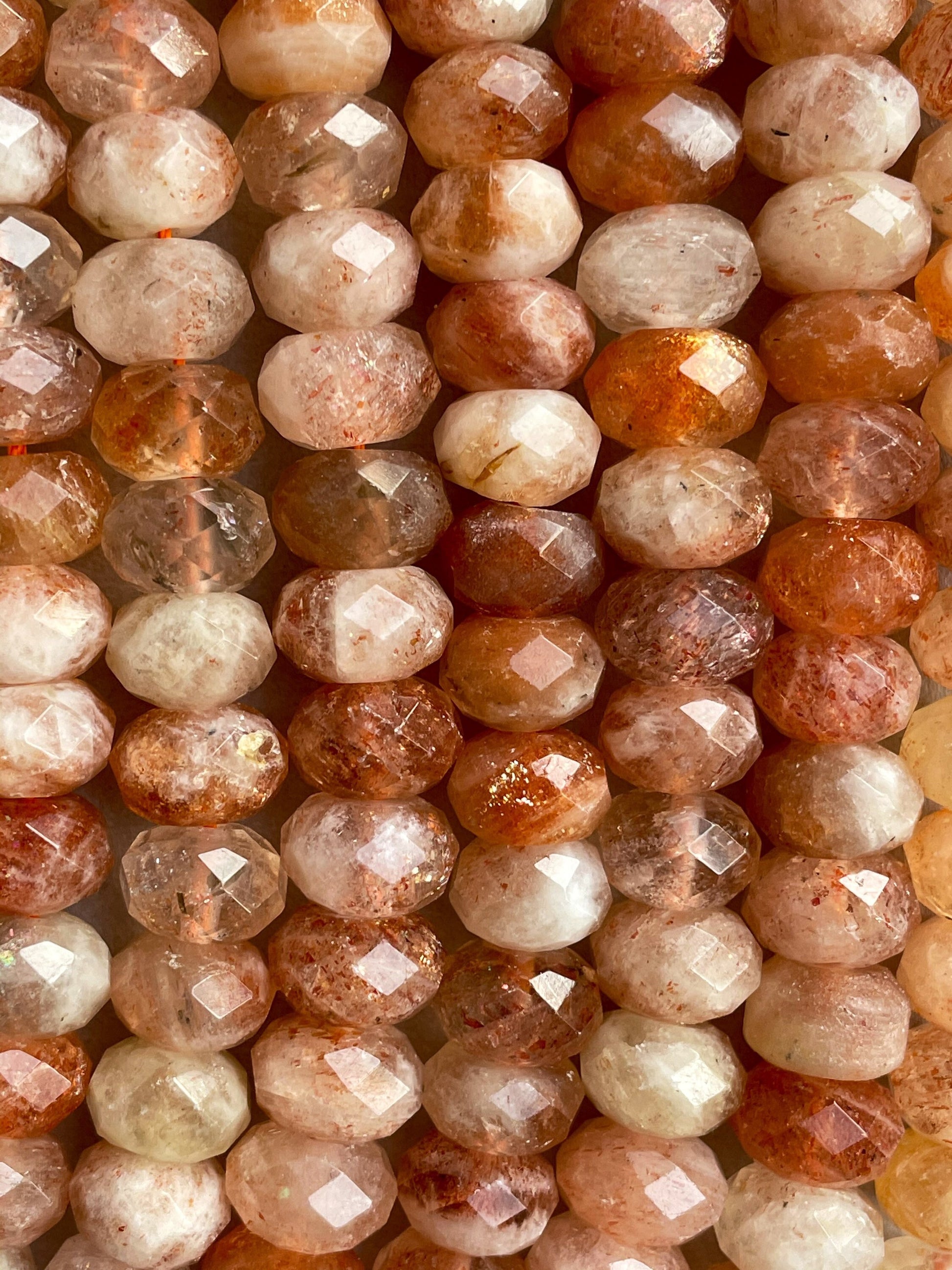 Natural fire sunstone bead. Faceted 5x7mm 6x10mm Rondelle bead. Gorgeous natural orange red fire color sunstone bead . Nice quality gemstone