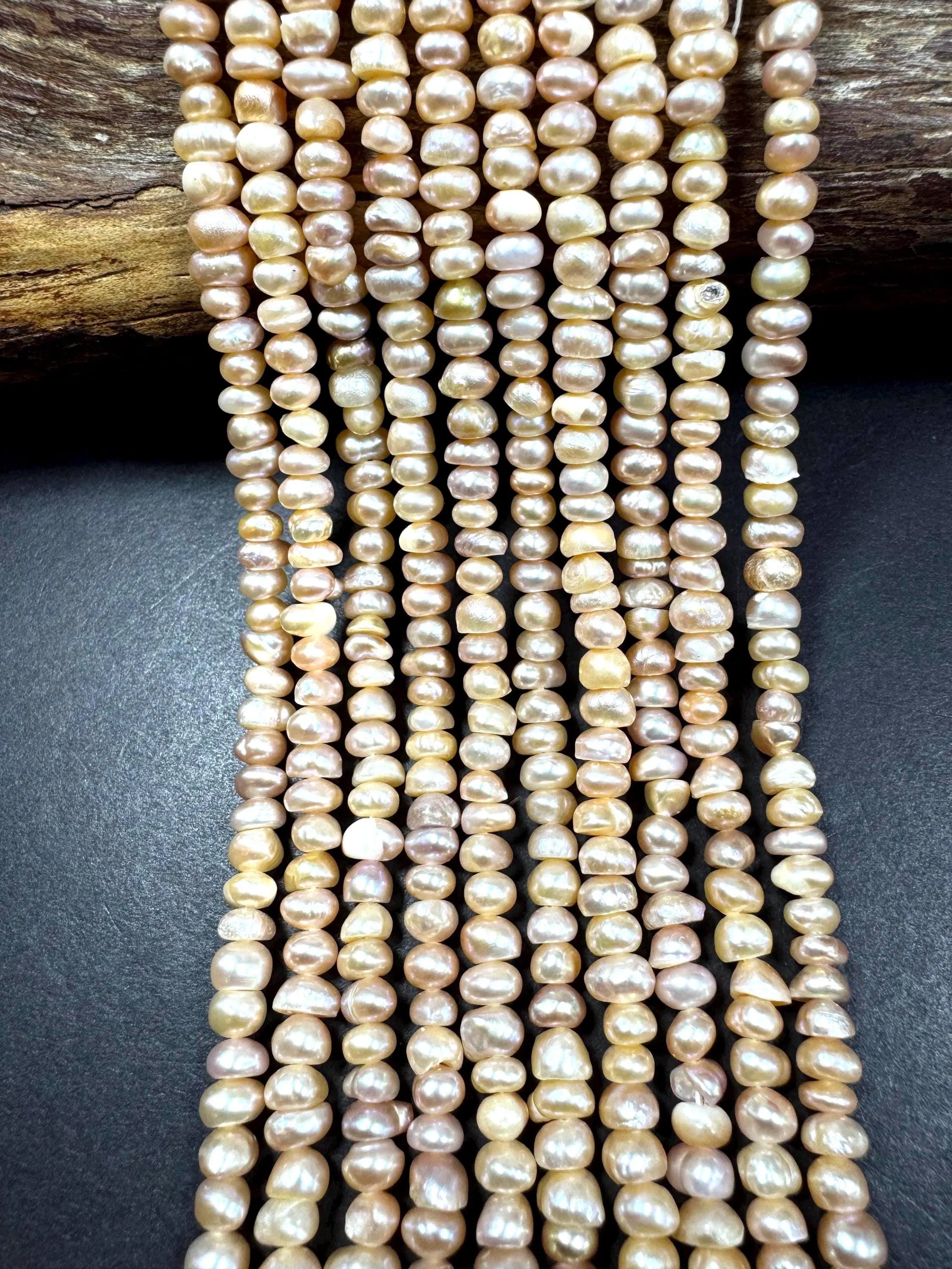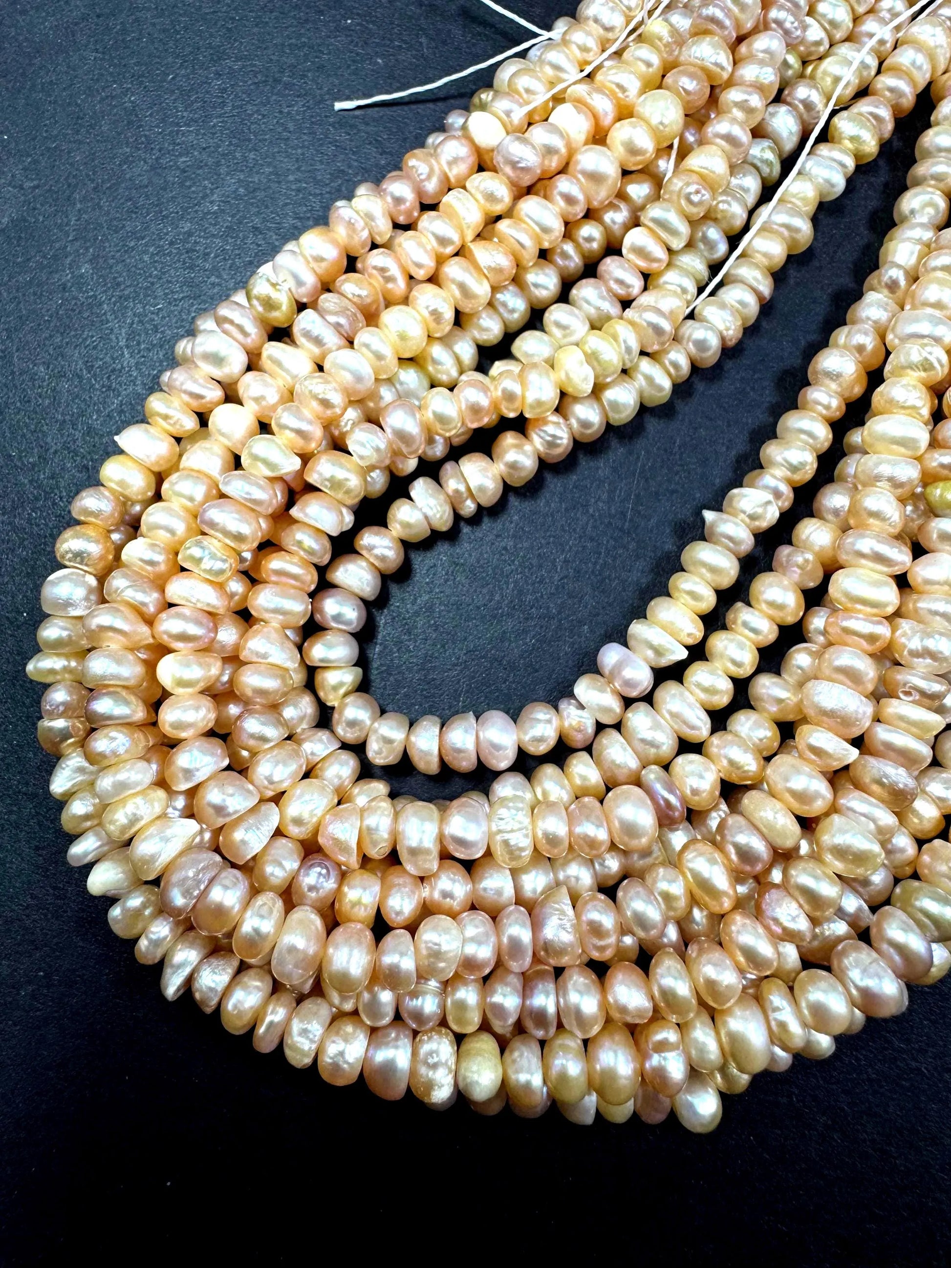 Natural fresh water pearls beads. Natural cream pink color . Excellent quality. Full strand.