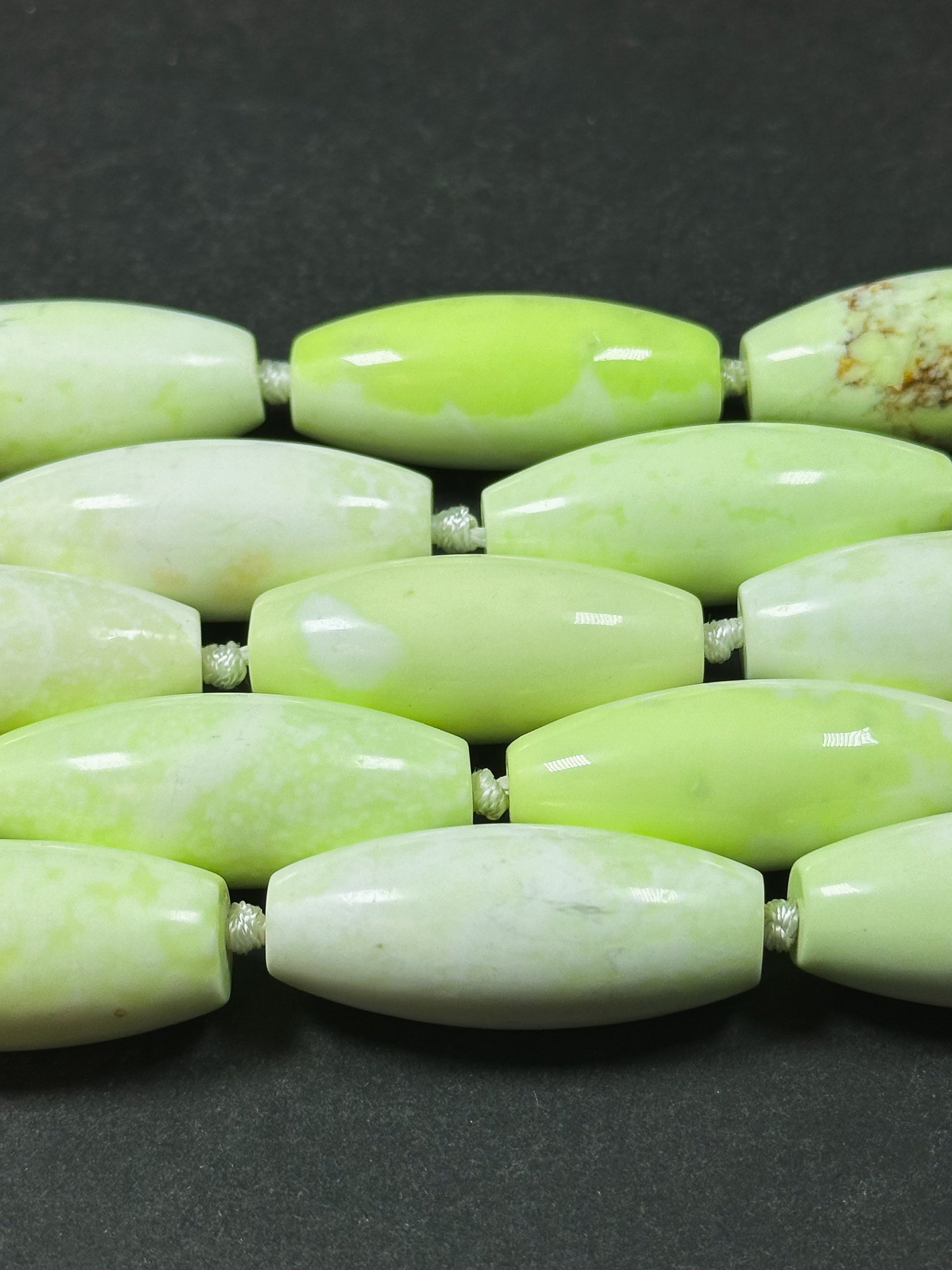 Natural Gaspeite Turquoise Gemstone Bead 39x16mm Barrel Shape Bead, Beautiful Lemon Green Color Gaspeite Turquoise Stone Bead 15.5" Strand