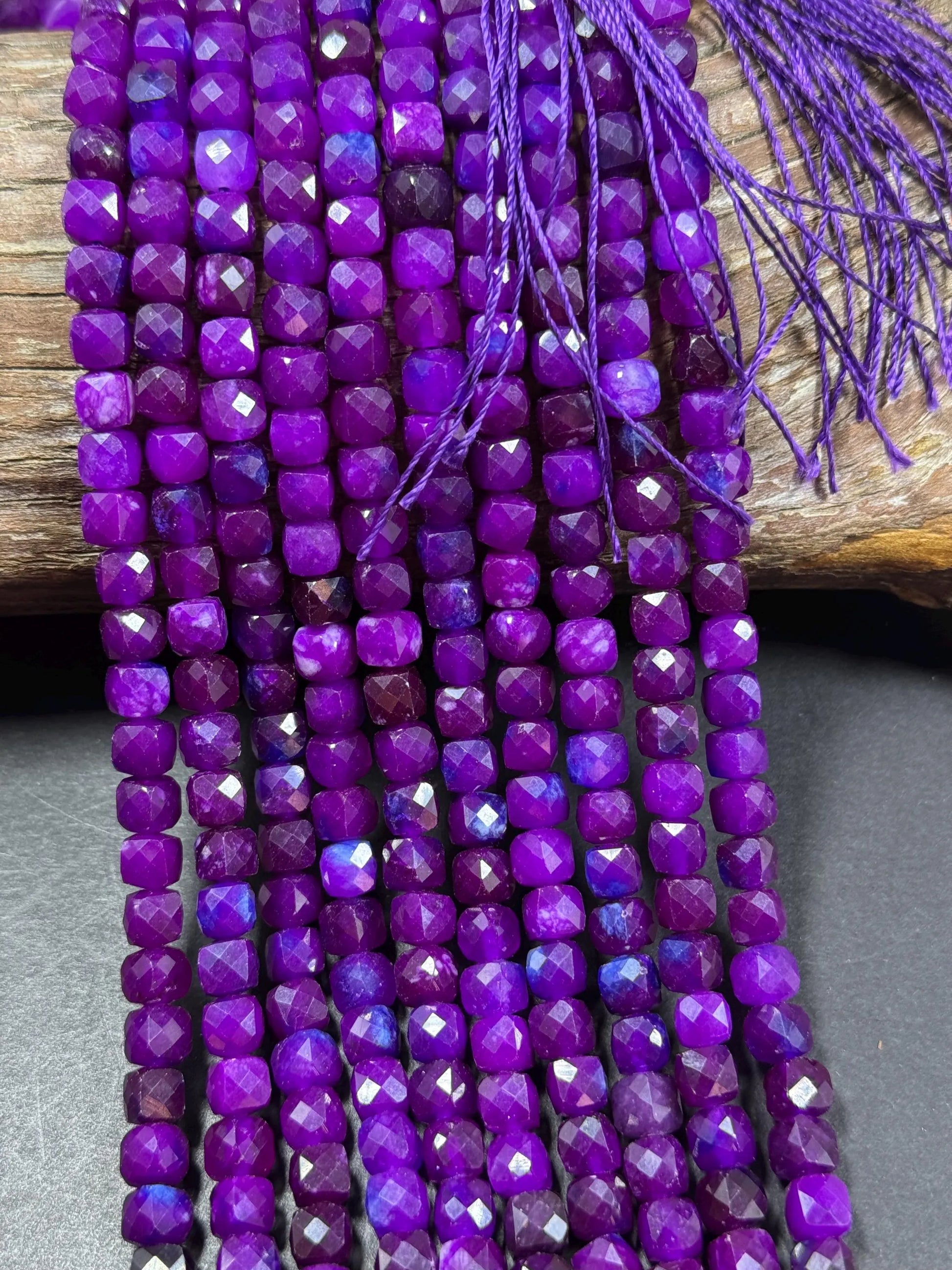 Natural Gemstone Bead. Faceted Cube Shape Bead. Gorgeous Natural Sugilite Gemstone Bead. Excellent Quality. Full Strand 15.5”