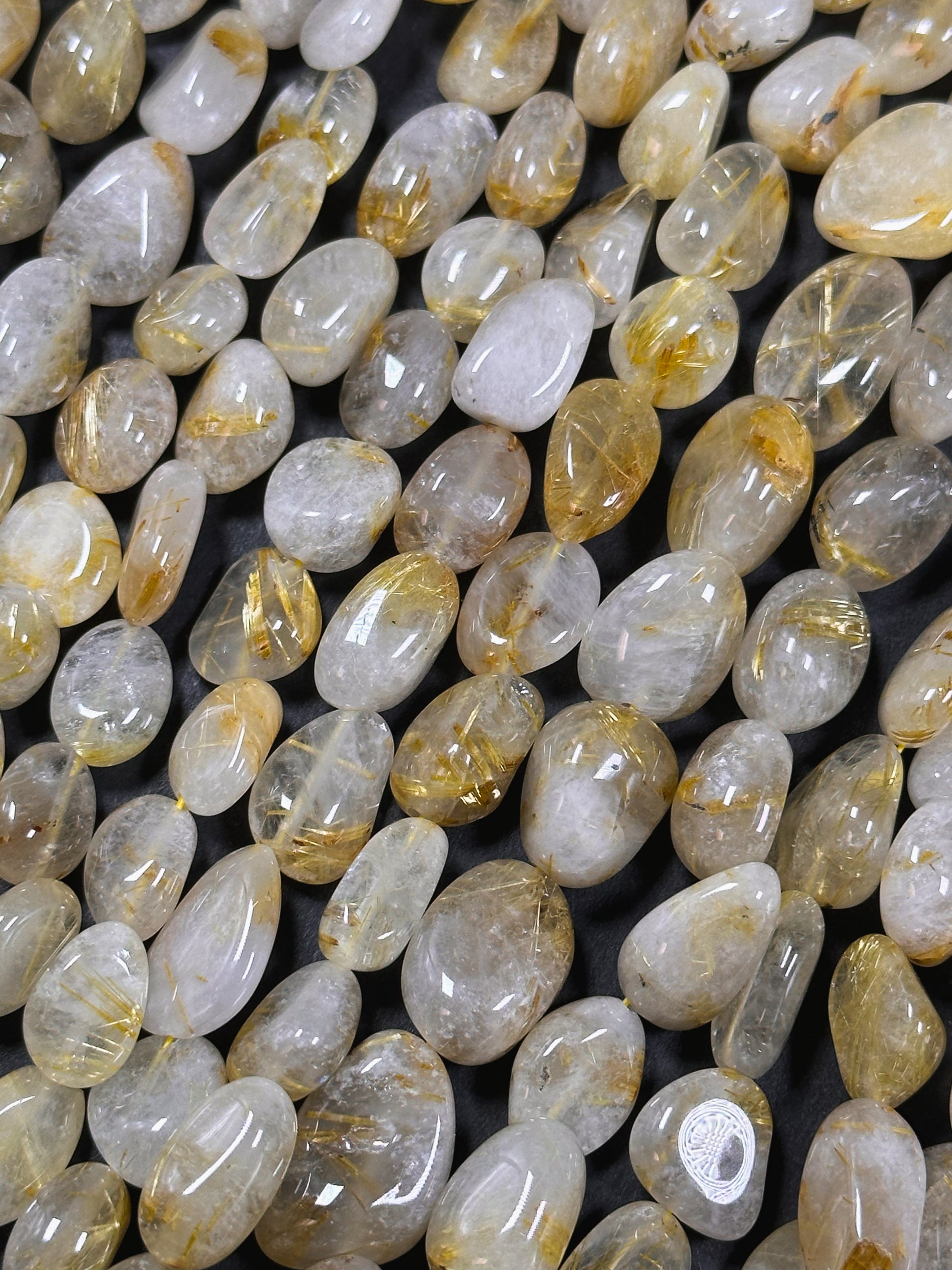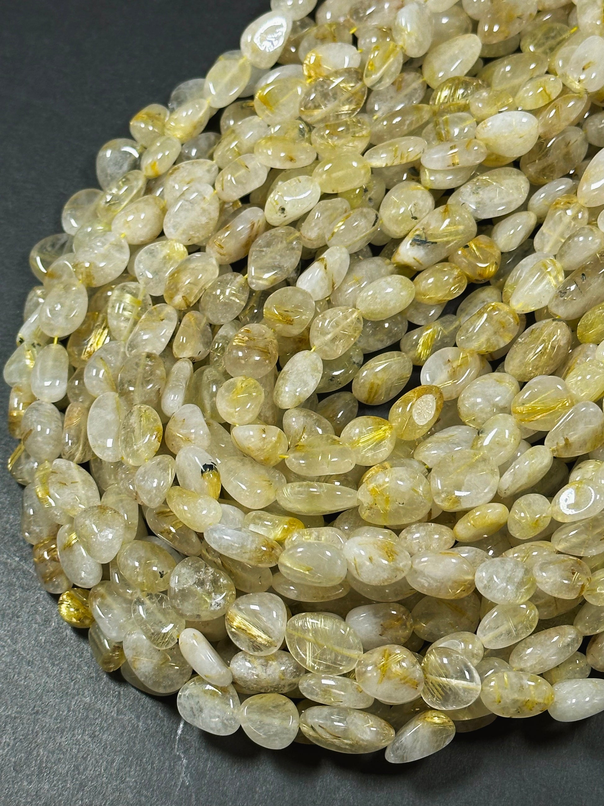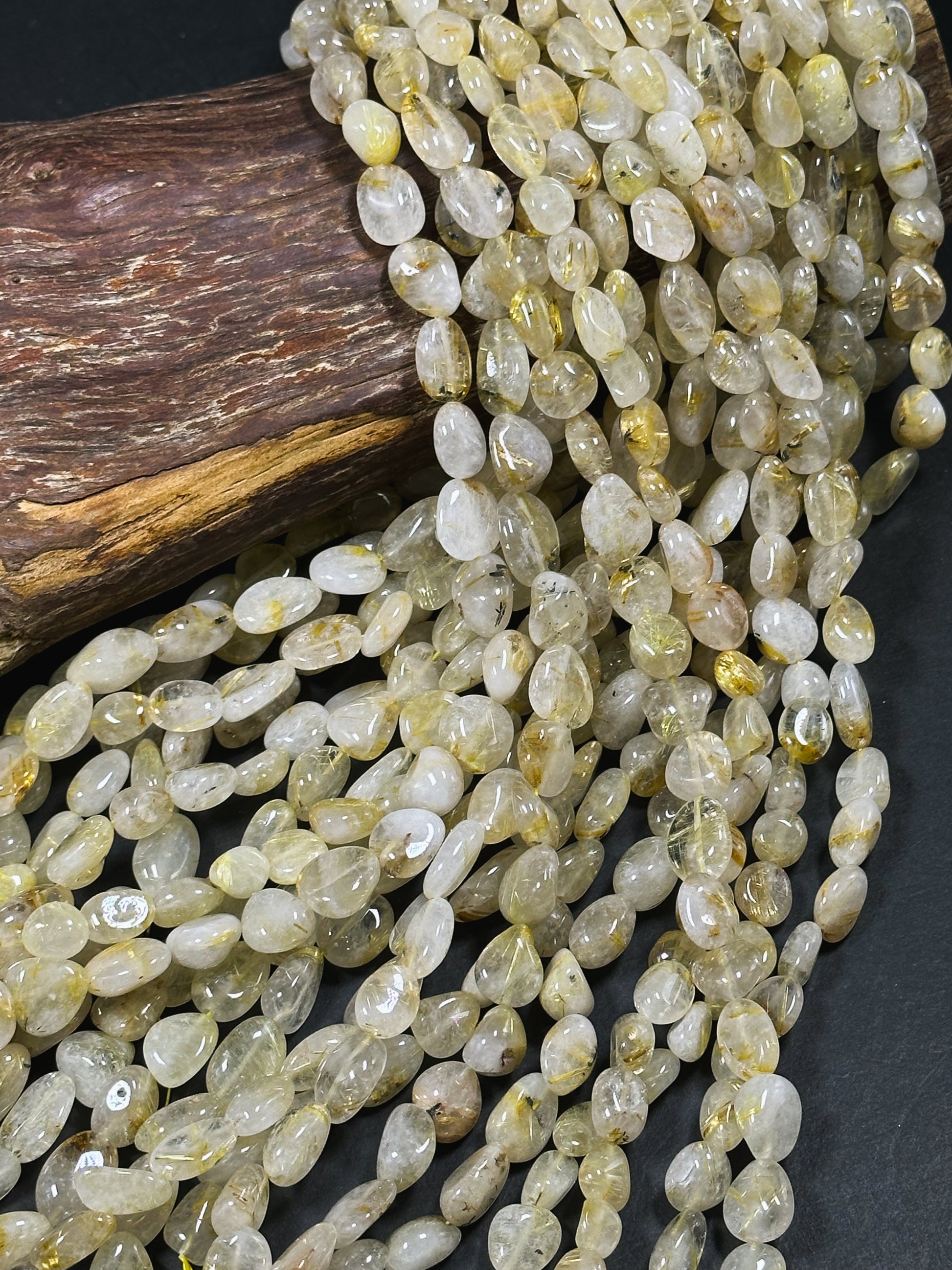 Natural Gold Rutilated Quartz Gemstone Bead Freeform Nugget Shape Bead, Gorgeous Golden Yellow Color Quartz, Great Quality Full Strand 15.5"