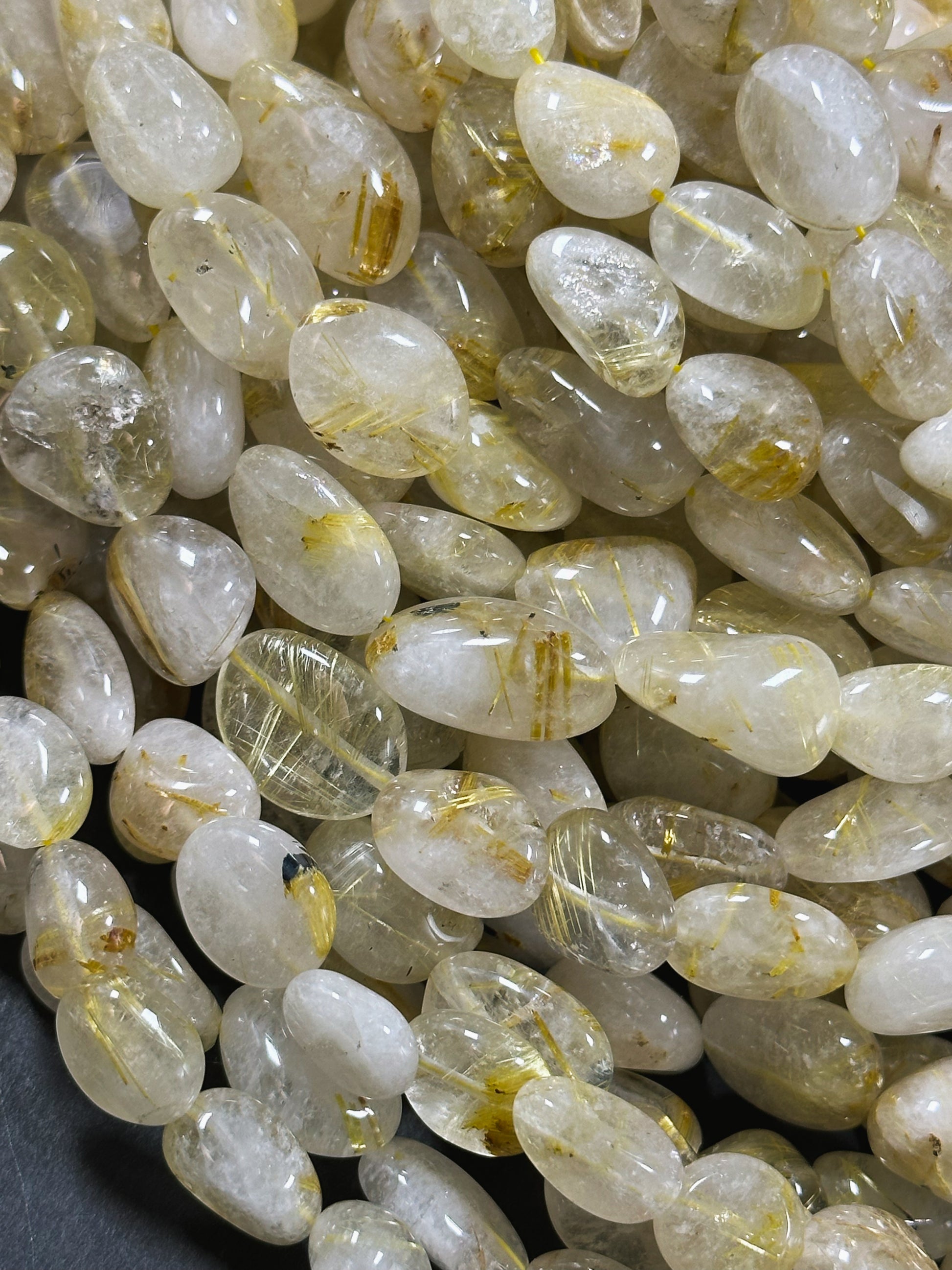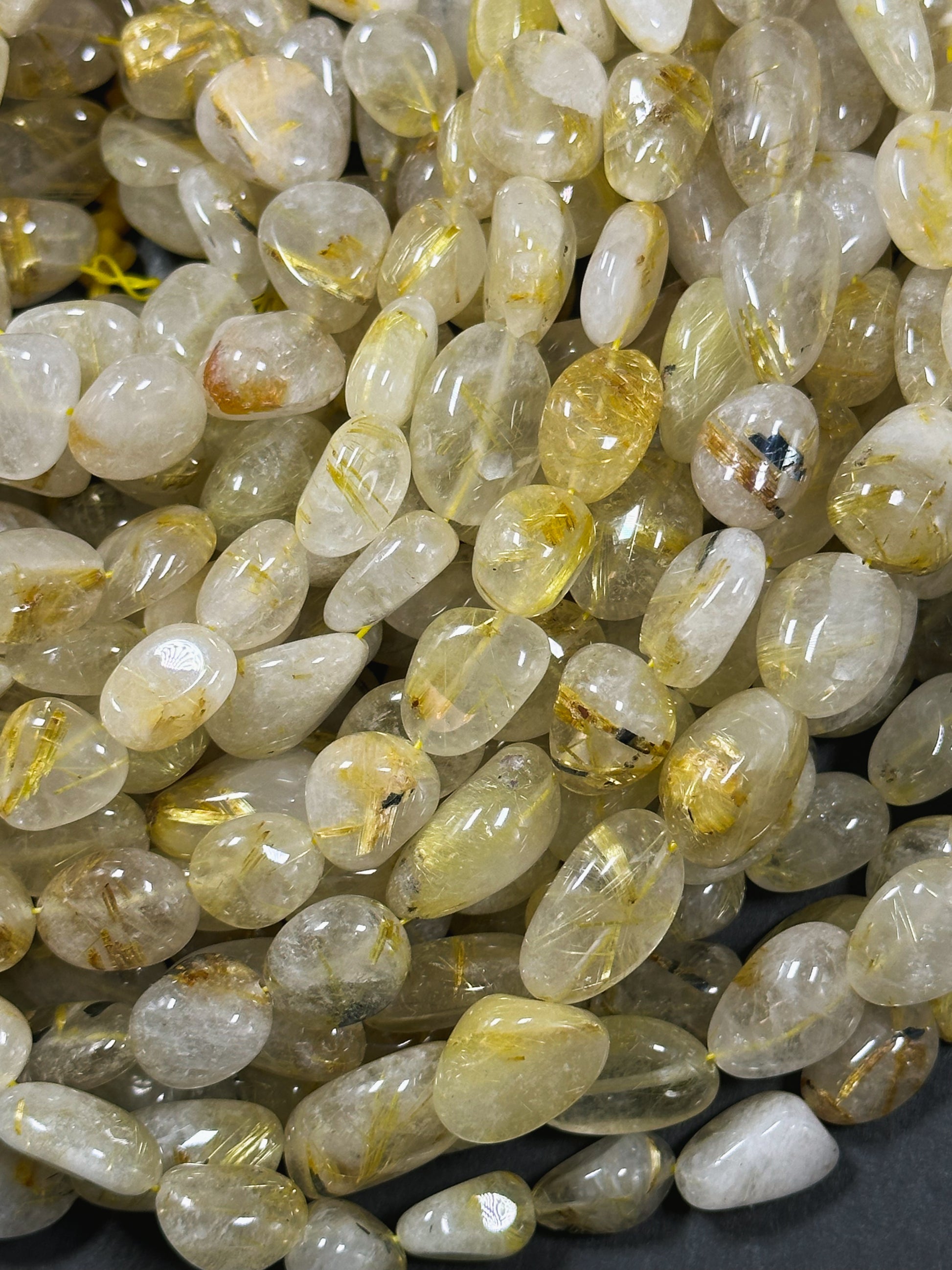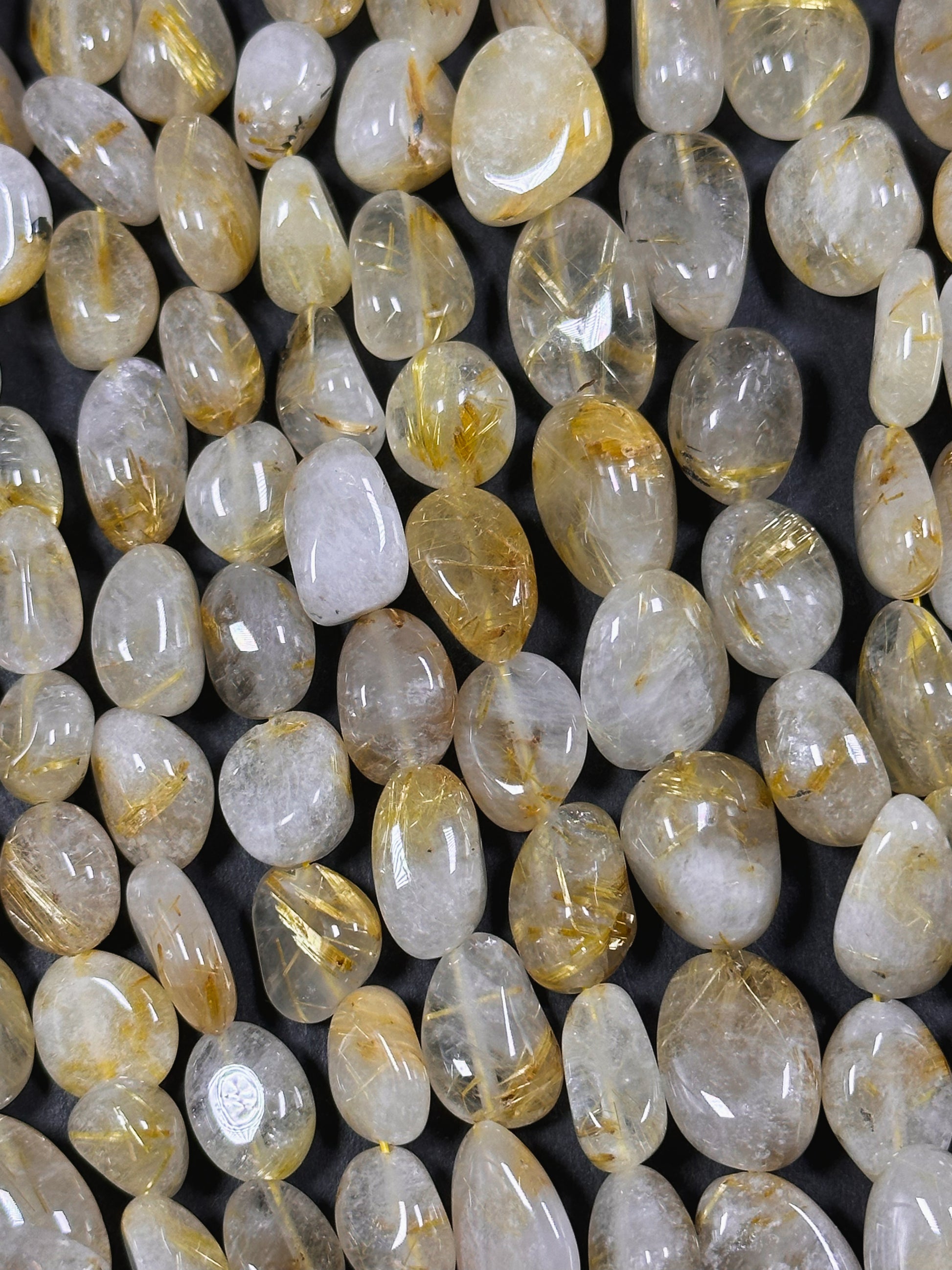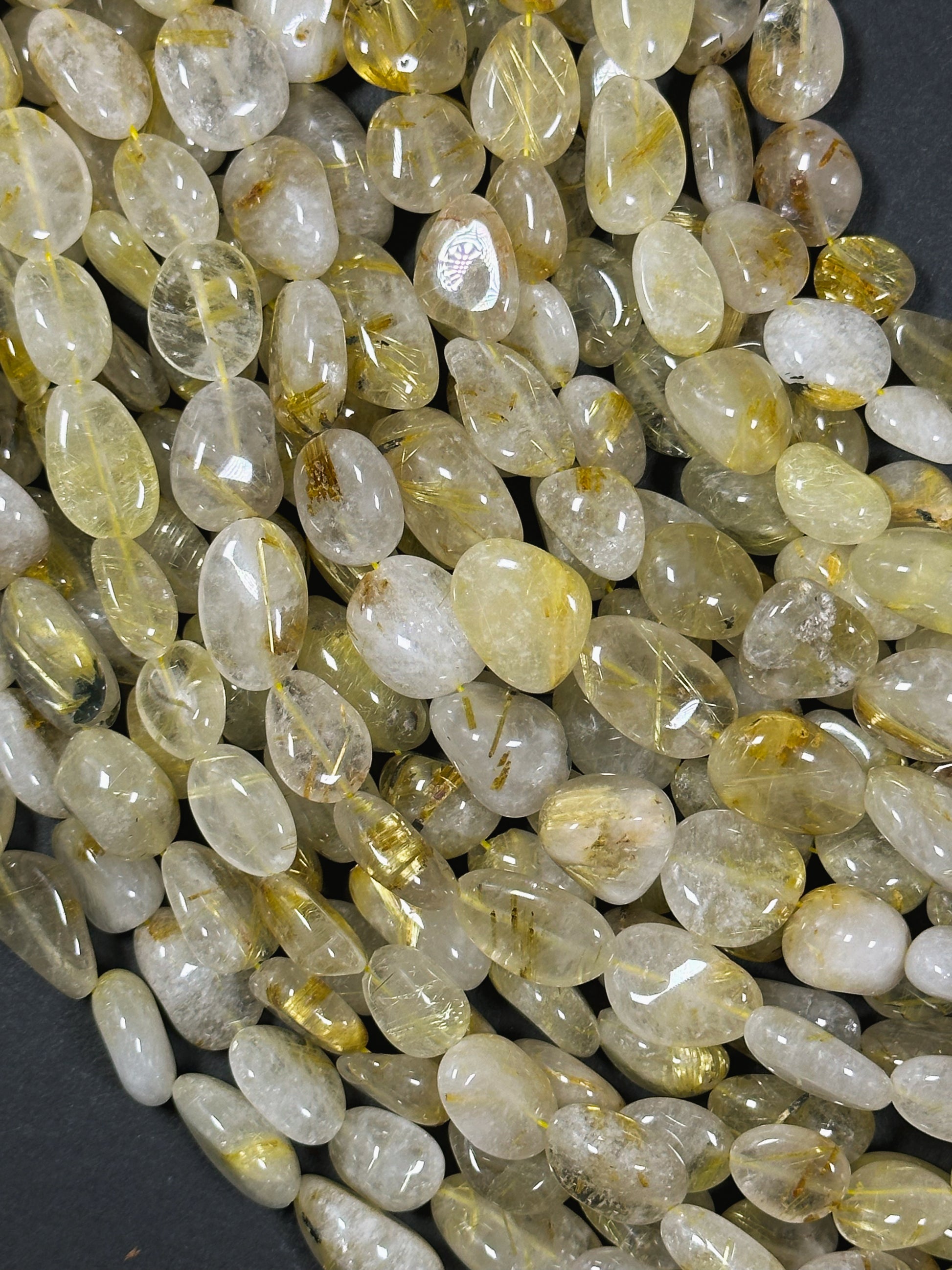 Natural Gold Rutilated Quartz Gemstone Bead Freeform Nugget Shape Bead, Gorgeous Golden Yellow Color Quartz, Great Quality Full Strand 15.5"