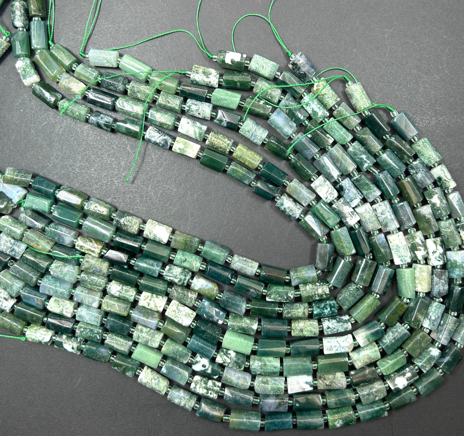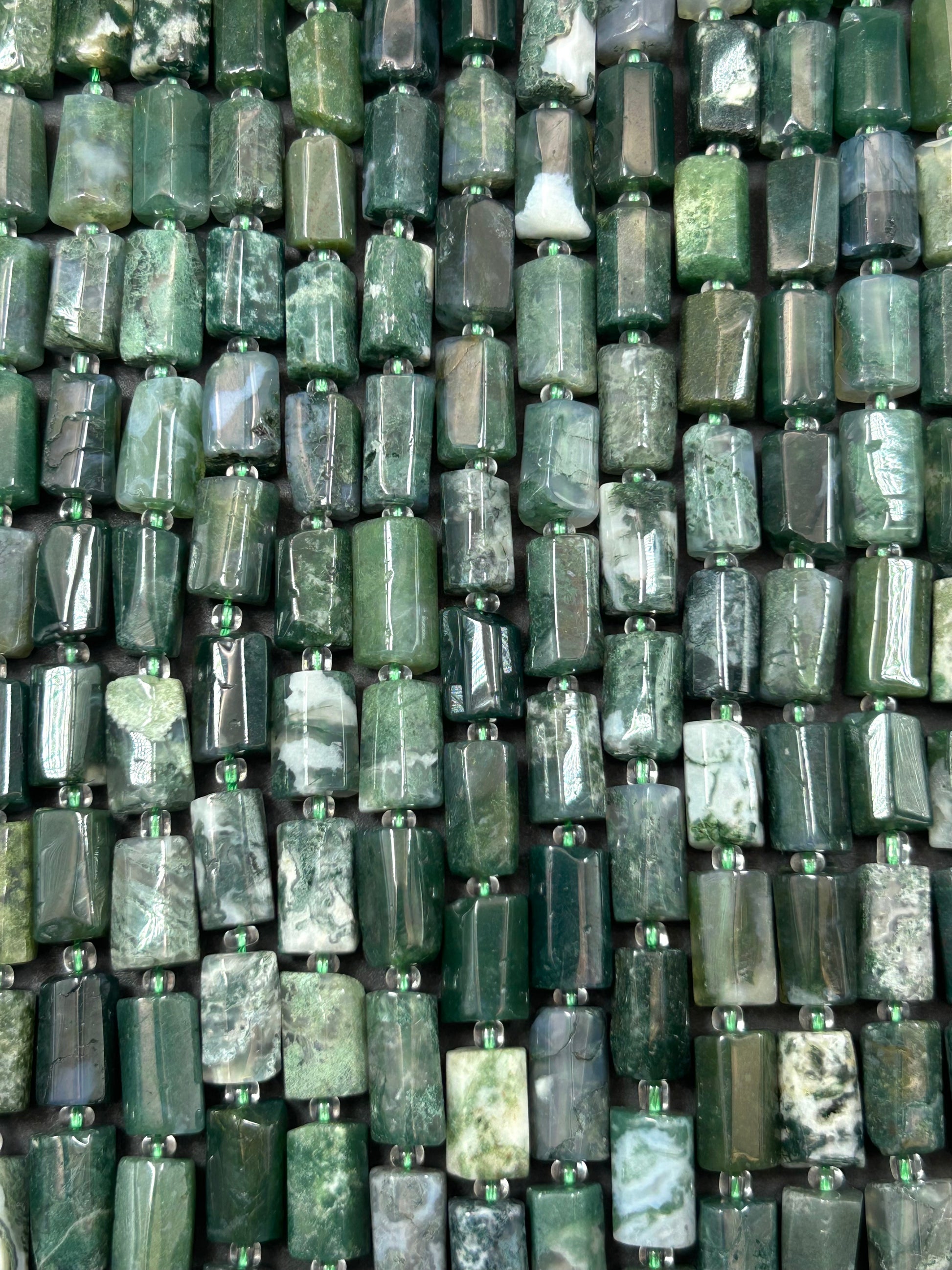 Natural Green Moss Agate Gemstone Bead Faceted 6.5x10-12mm tube , Beautiful Natural Green Color Moss Agate Stone Beads, Full Strand 15.5"