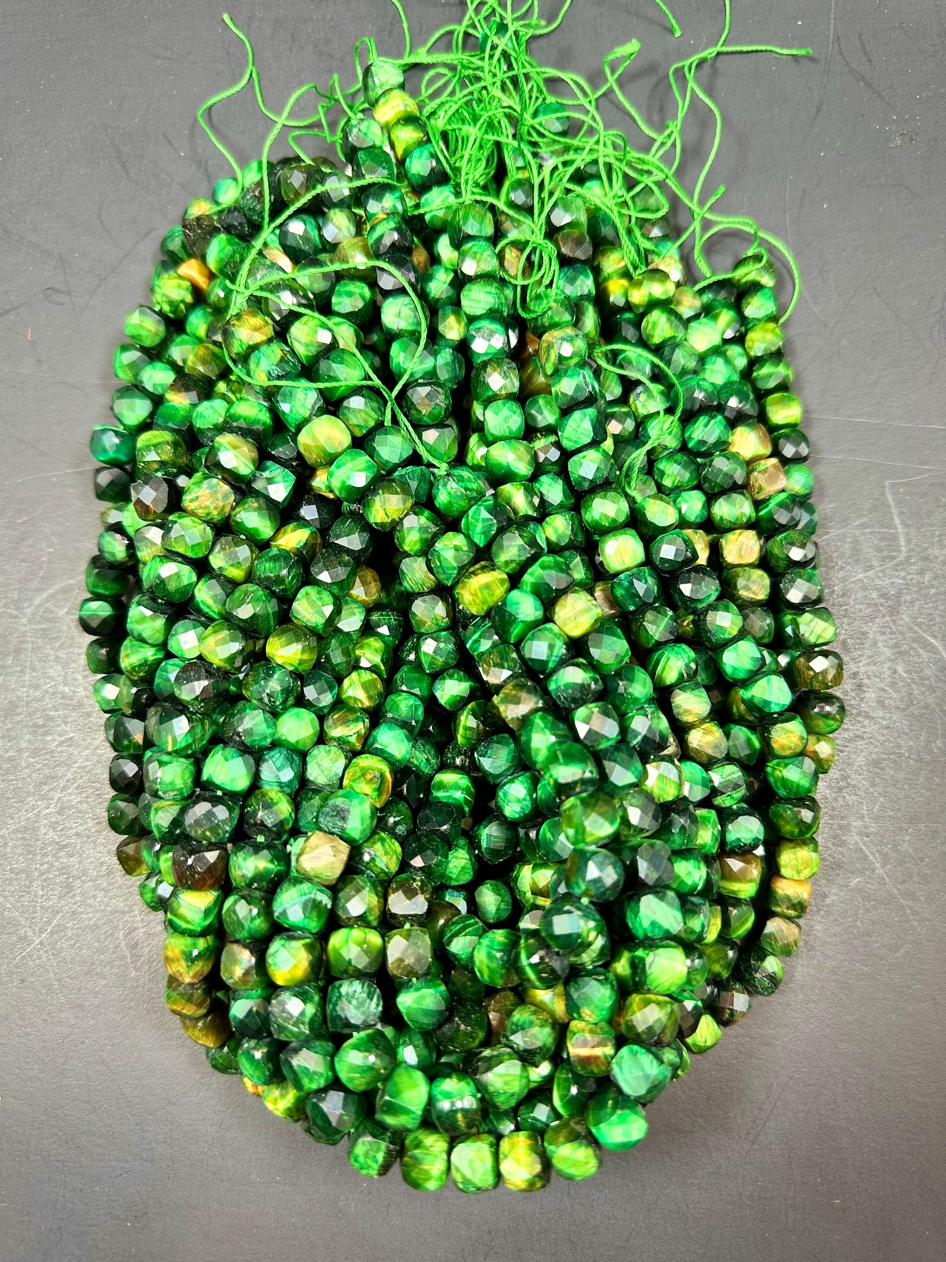NATURAL Green Tiger Eye Gemstone Faceted 5mm 8mm Cube Shape Bead. Gorgeous Green Color Tiger Eye Loose Beads, Amazing Quality Full Strand 15.5"