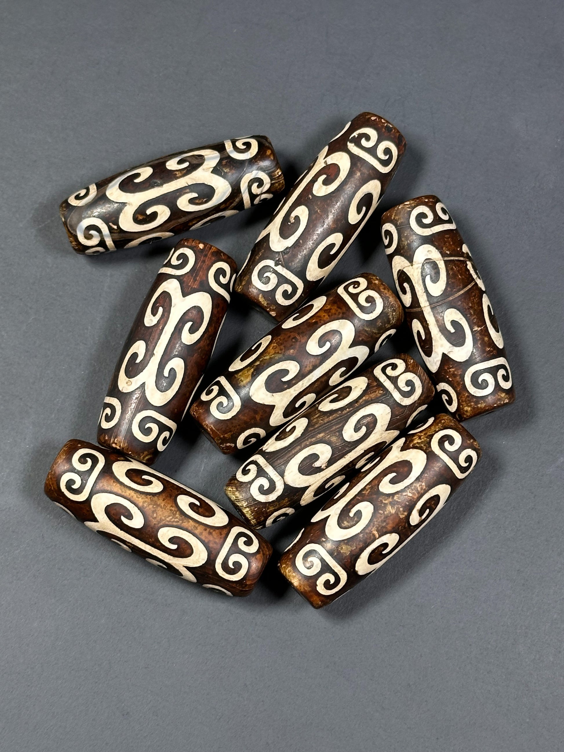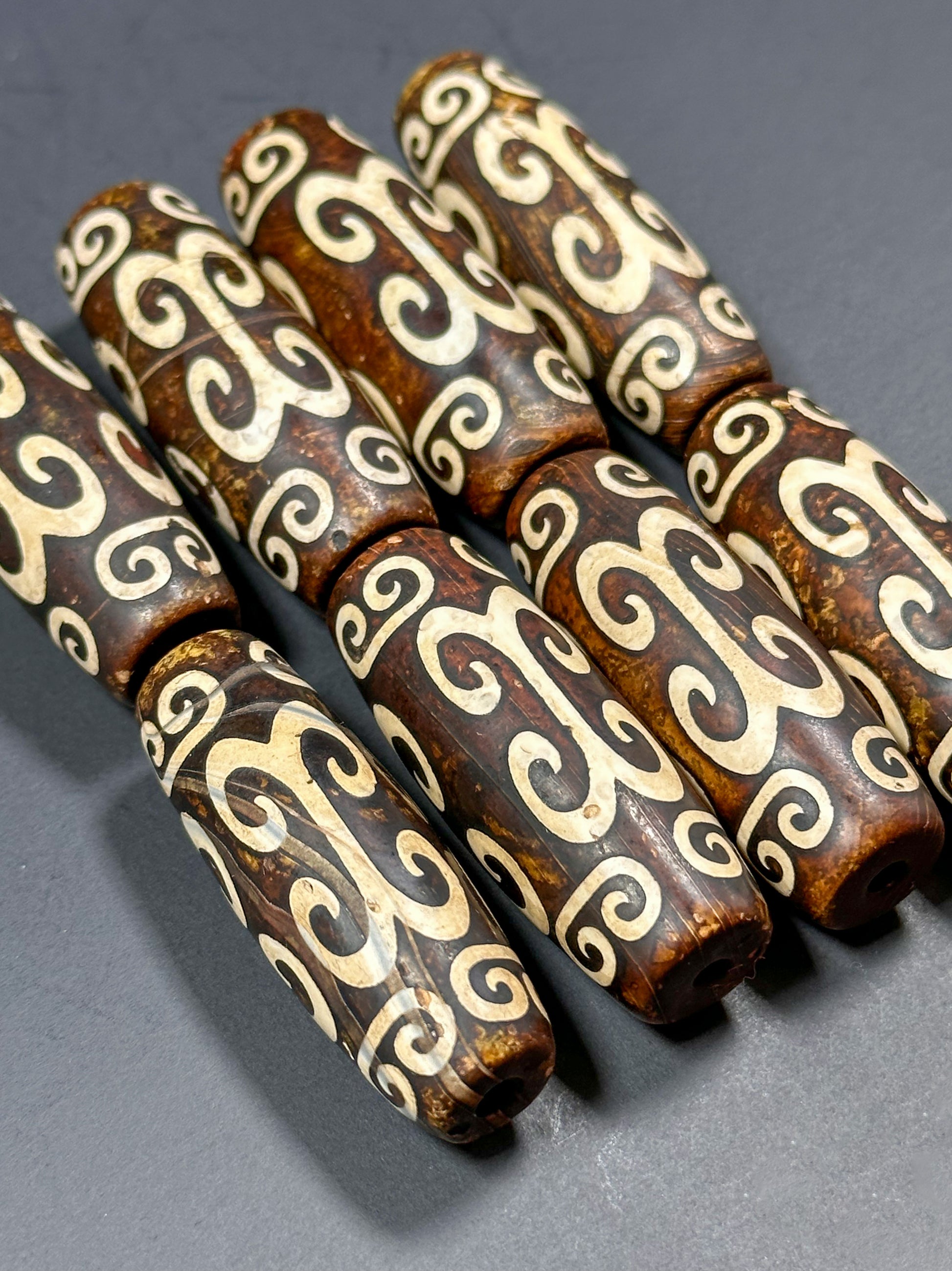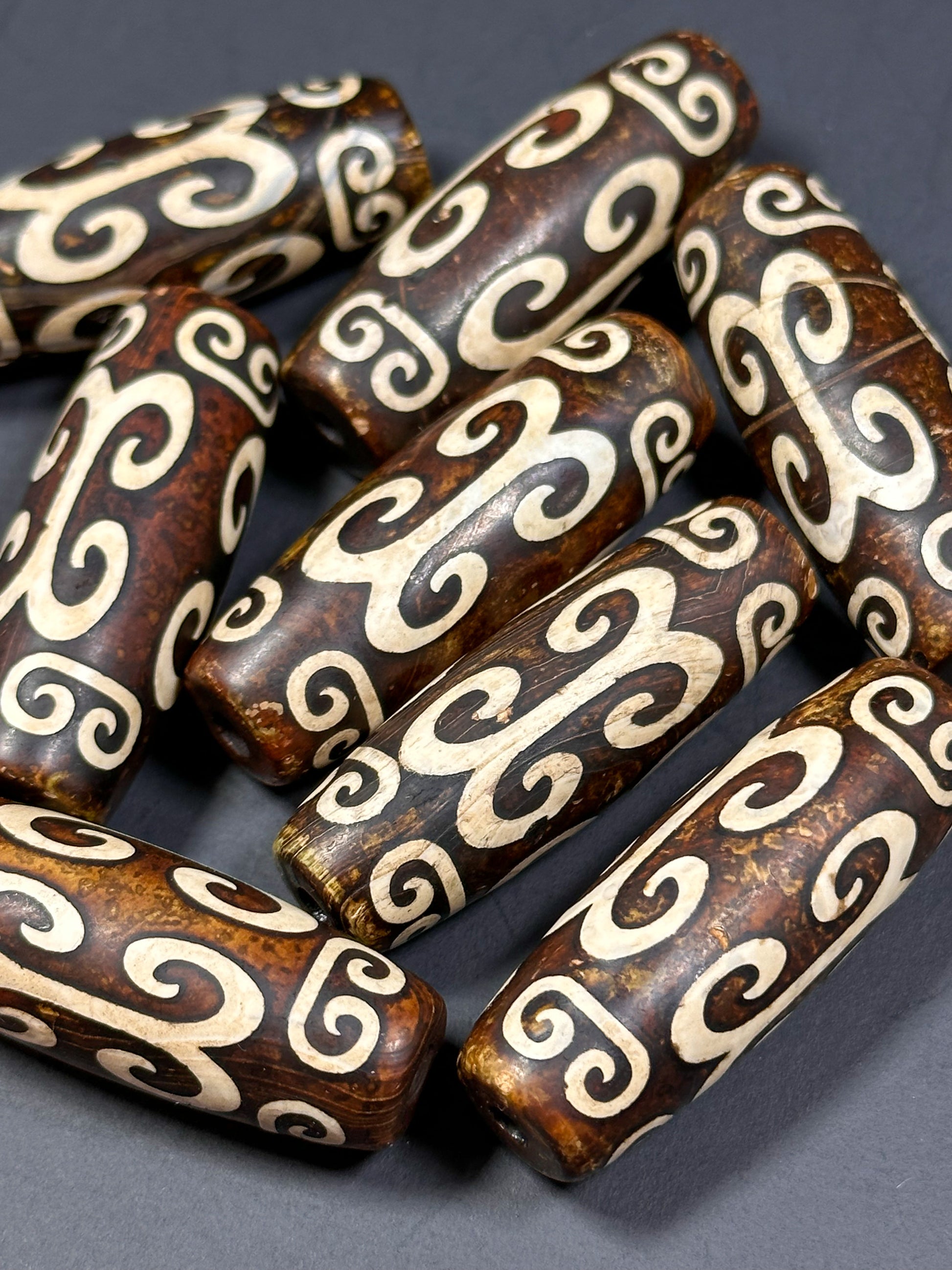 NATURAL Hand Painted Tibetan Agate Stone Bead 39x14mm Barrel Tube Shape Bead, Beautiful Brown White Color Hand Painted Tibetan Loose Beads