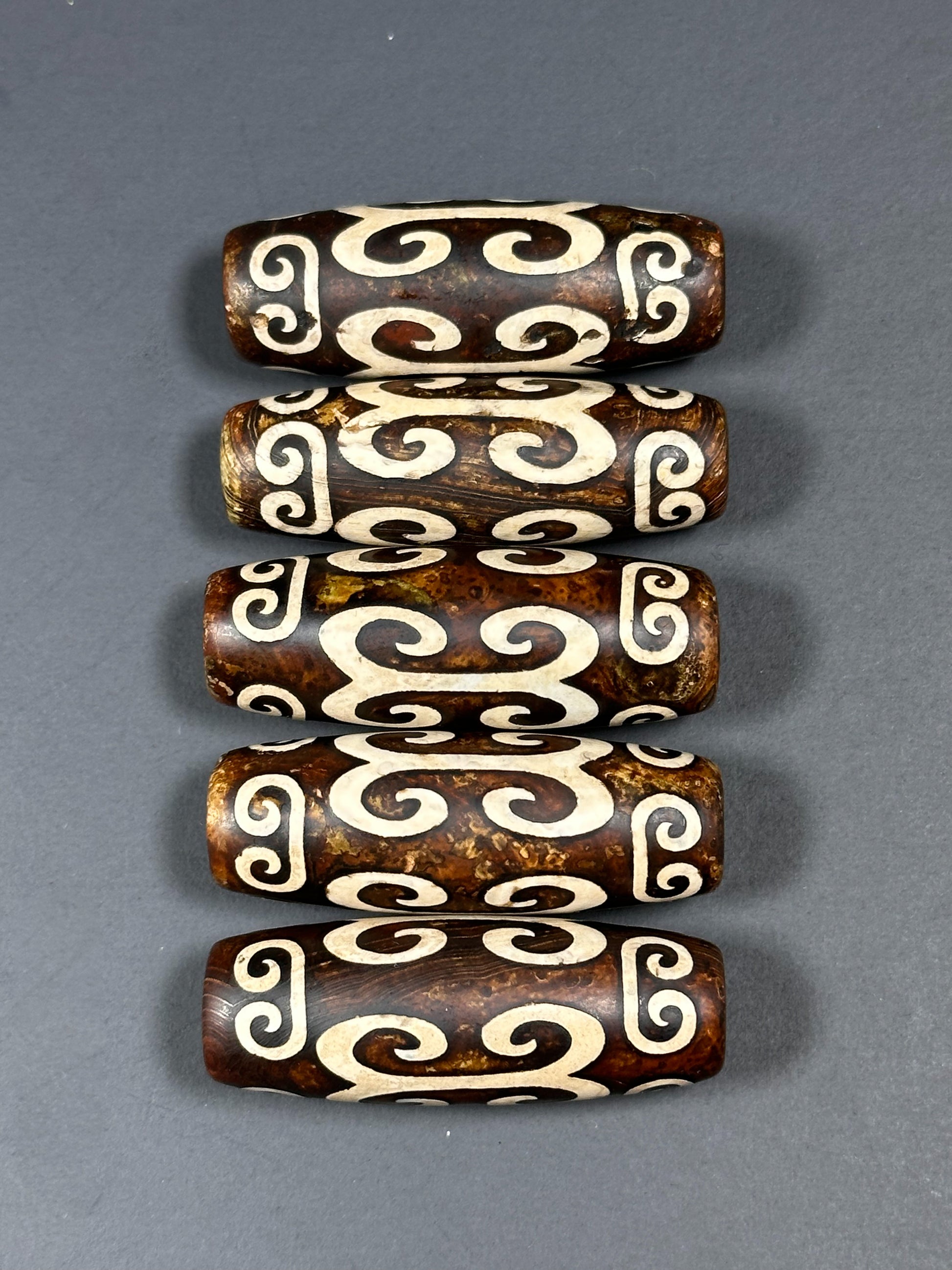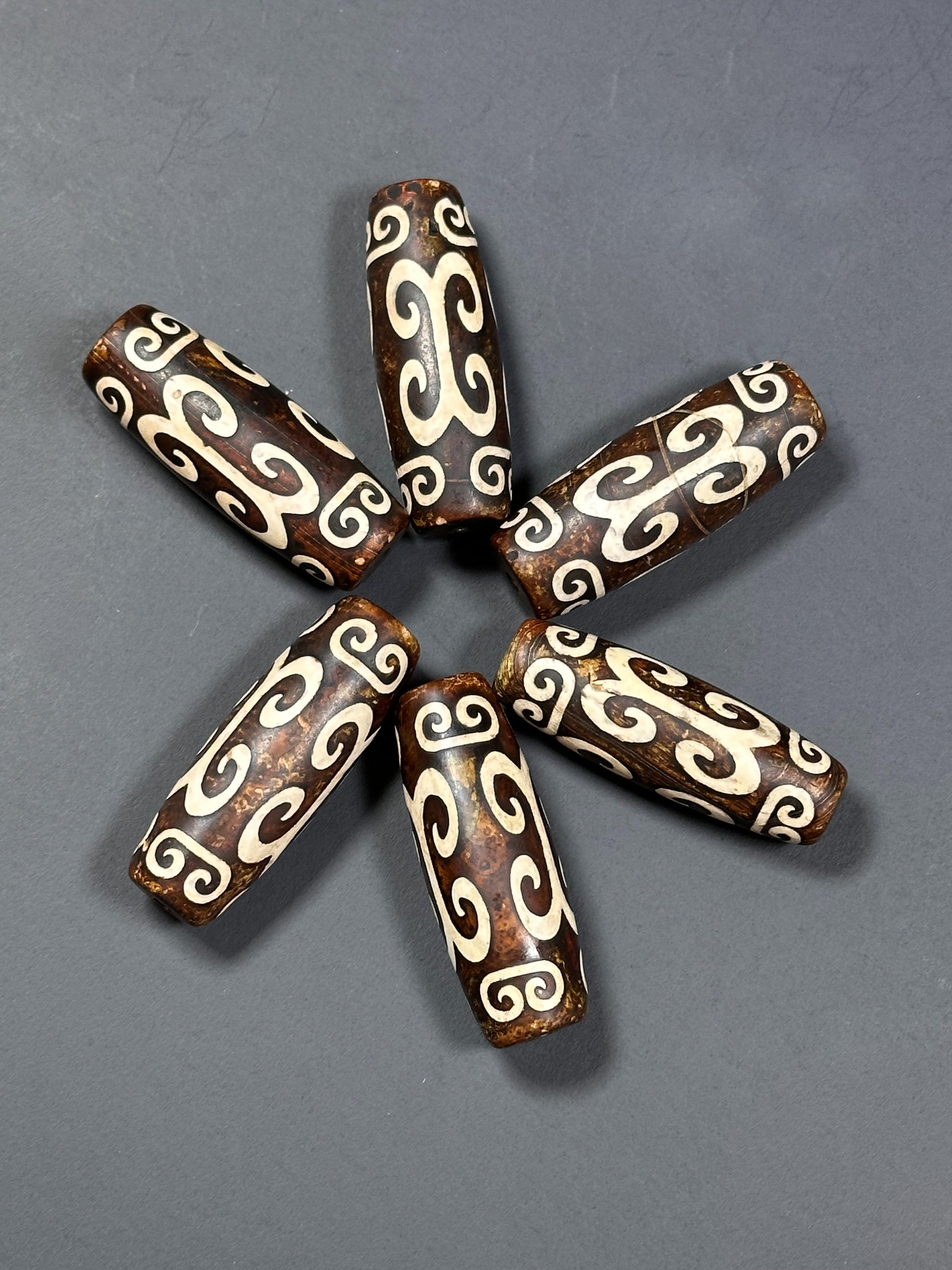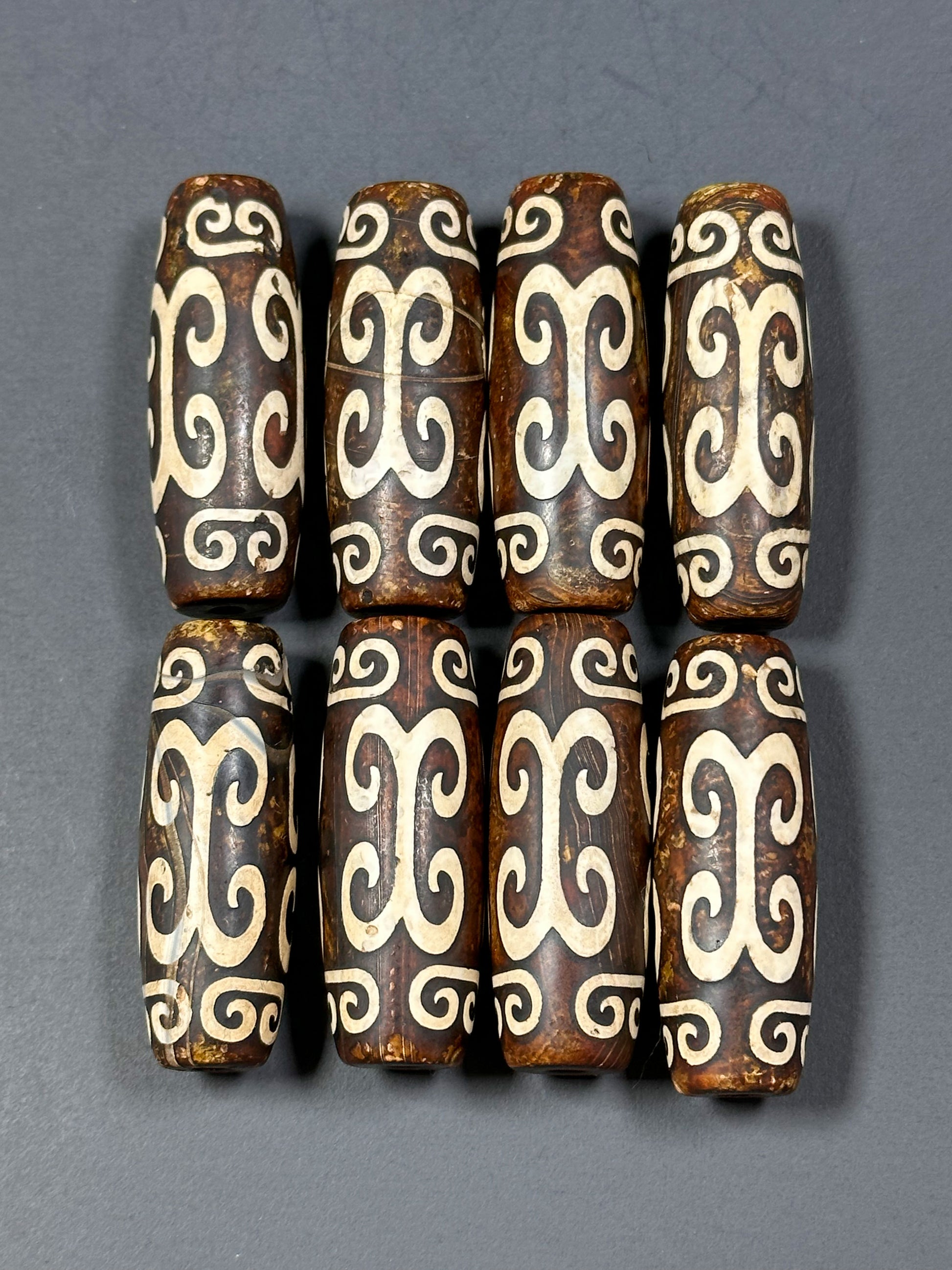 NATURAL Hand Painted Tibetan Agate Stone Bead 39x14mm Barrel Tube Shape Bead, Beautiful Brown White Color Hand Painted Tibetan Loose Beads