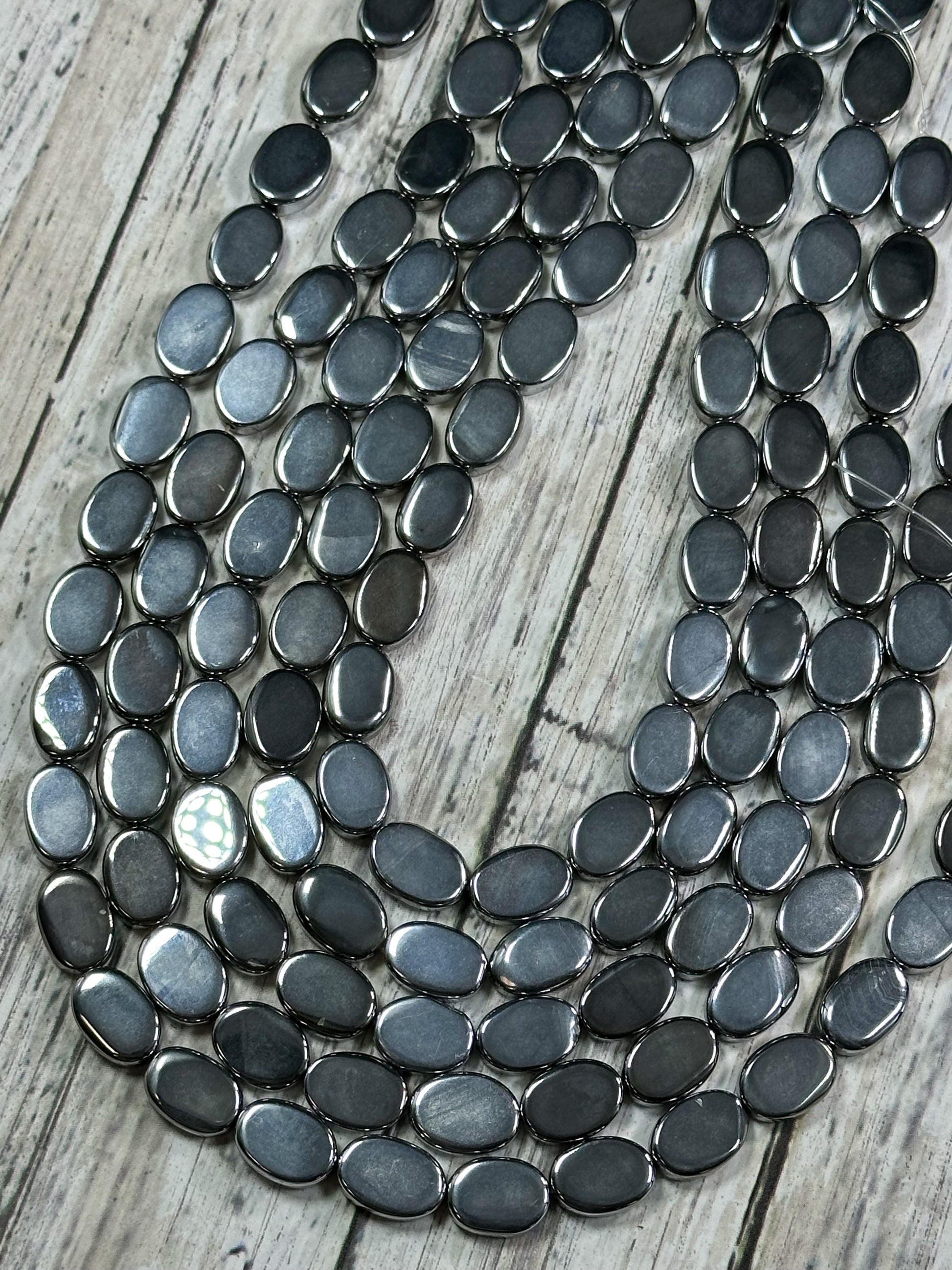 Natural Hematite Gemstone Bead 14x10mm Oval Shape Bead, Beautiful Metallic Gray Color Hematite Gemstone Beads, Full Strand 15.5"