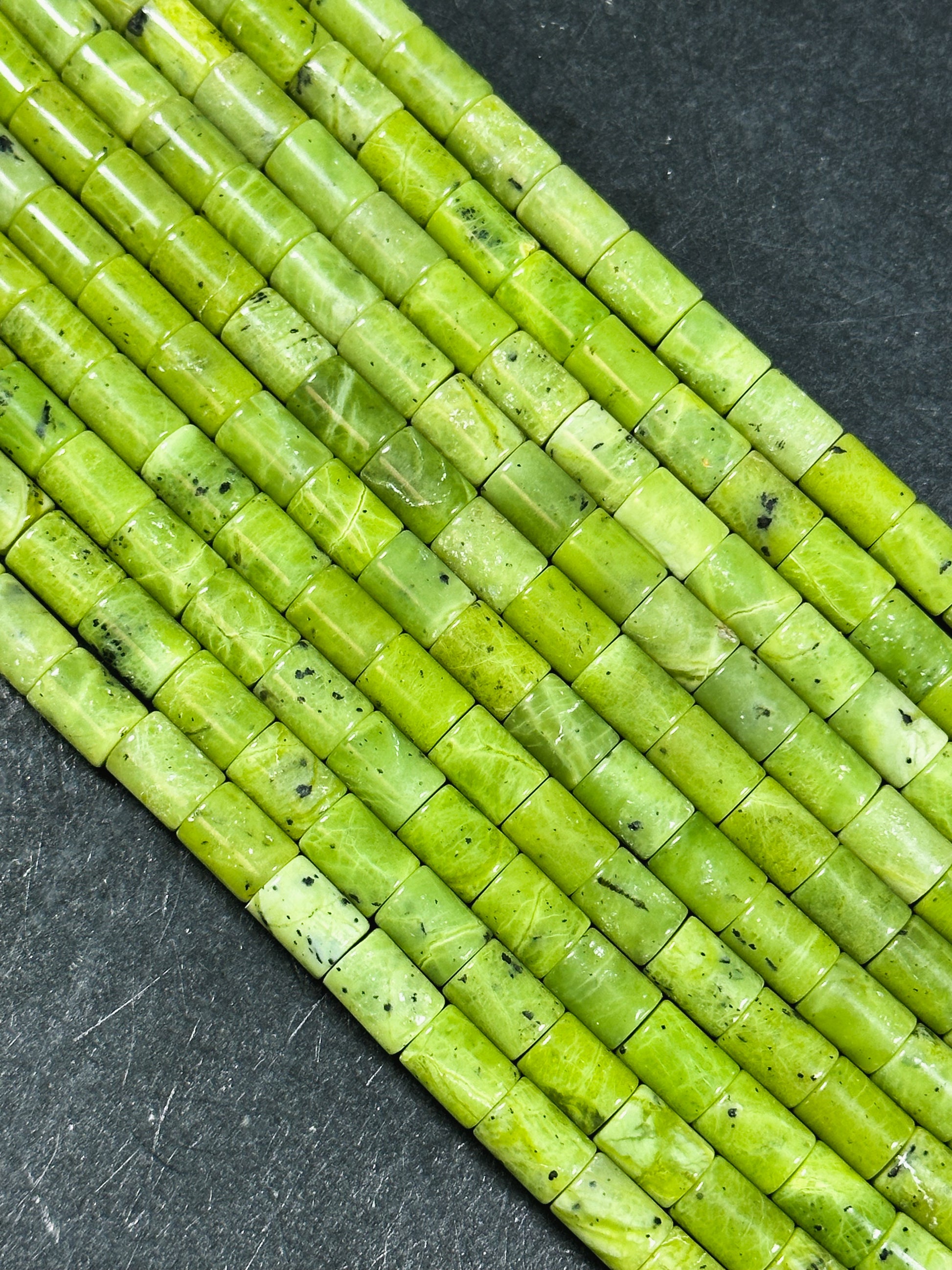 NATURAL Jade Gemstone Bead 8x6mm 10x8mm Tube Shape Bead, Gorgeous Green Color Jade Gemstone Bead Full Strand 15.5" Loose Beads Great Quality