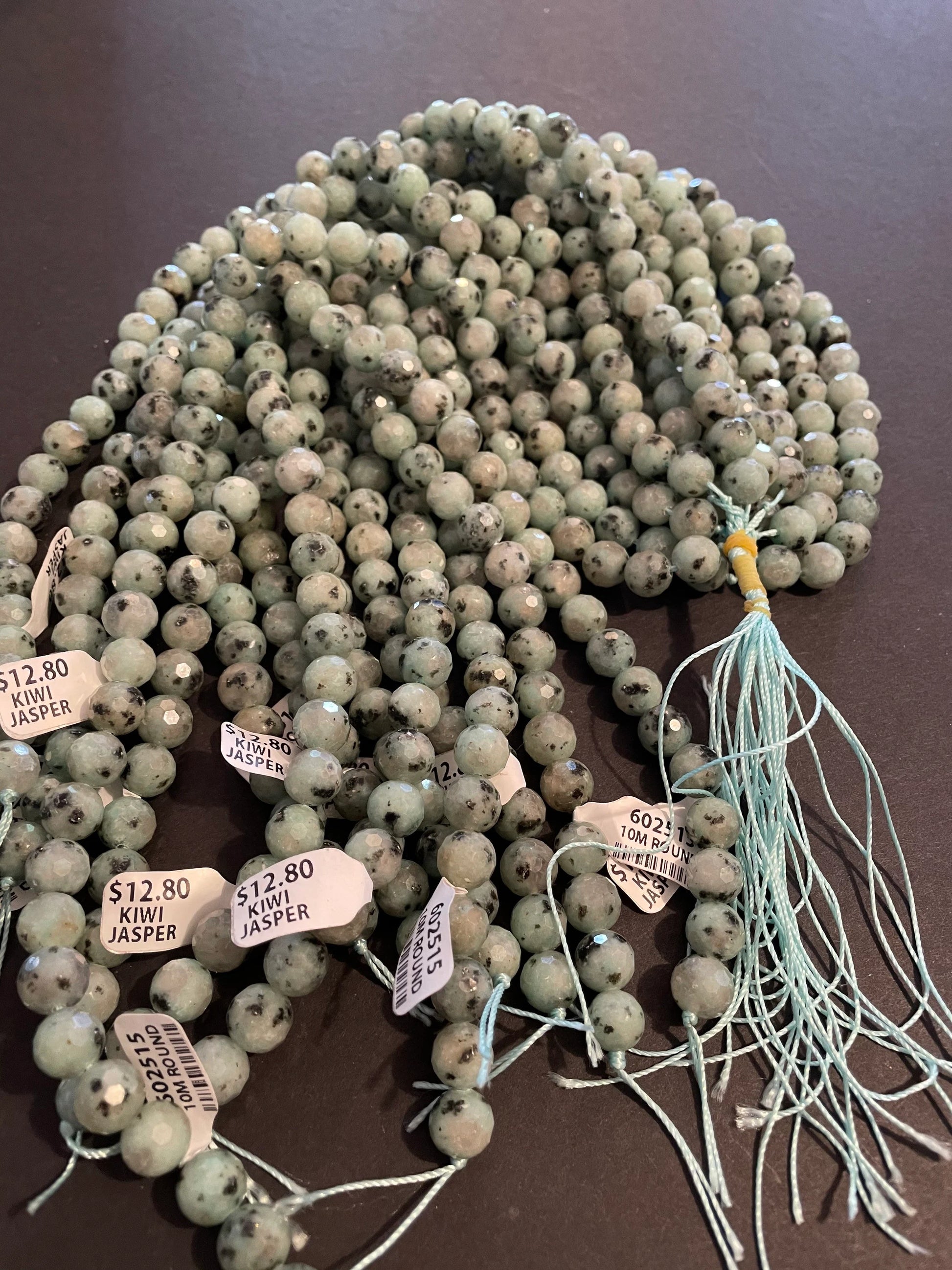 Natural Kiwi Green Jasper. 6mm, 8mm, 10mm Faceted diamond cut. Gorgeous Natural Green Color and Black Dots Jasper Bead. 15.5" strand