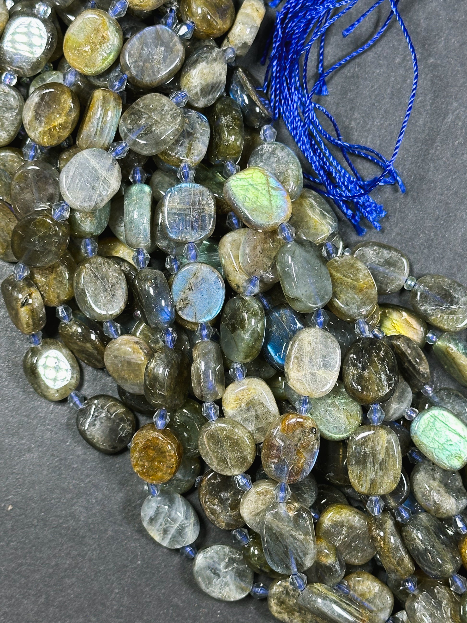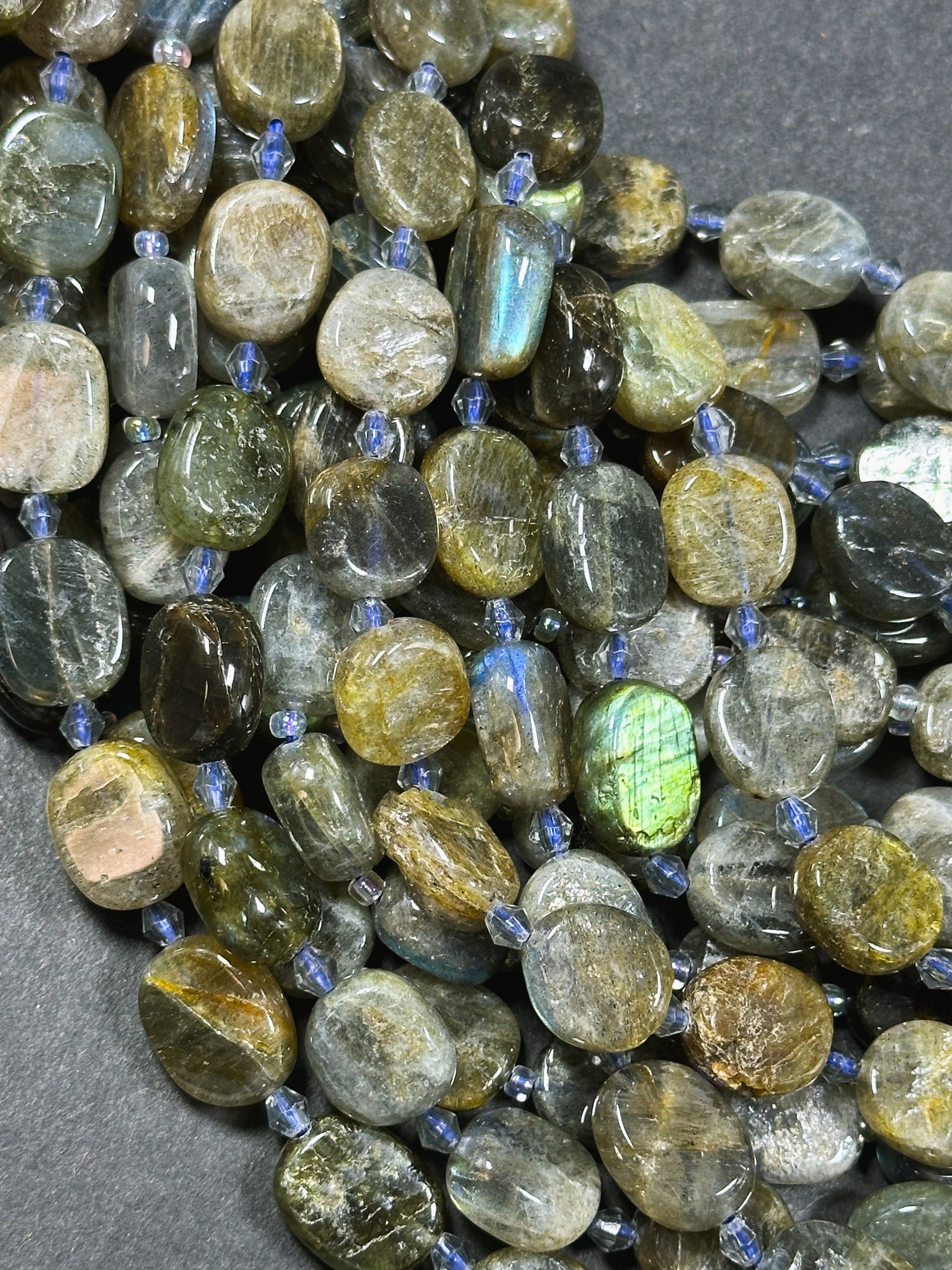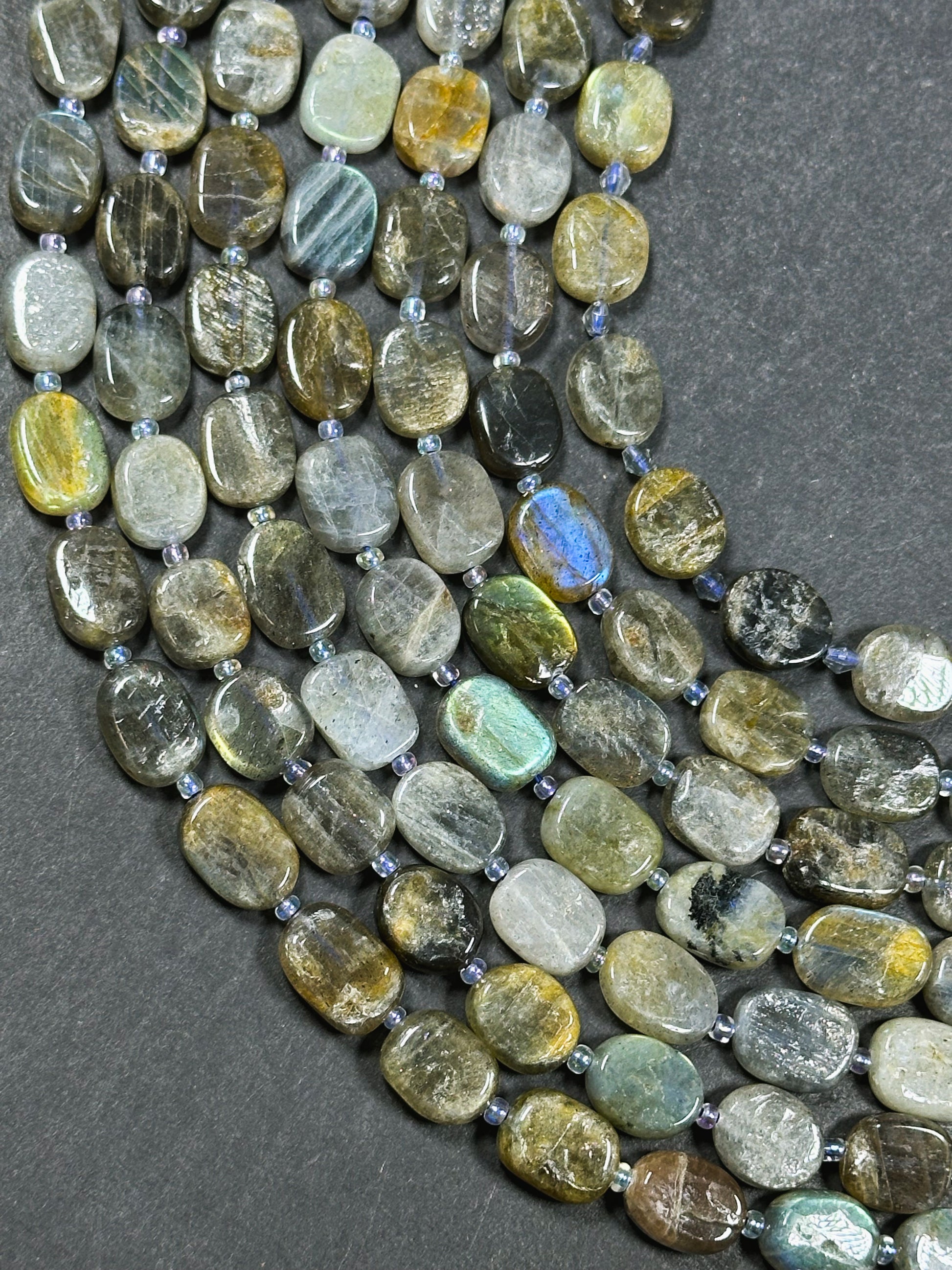Natural Labradorite Gemstone Bead 15x11mm Oval Shape Bead, Gorgeous Natural Gray Brown Color, Blue Rainbow Flash Labradorite Beads 15.5"