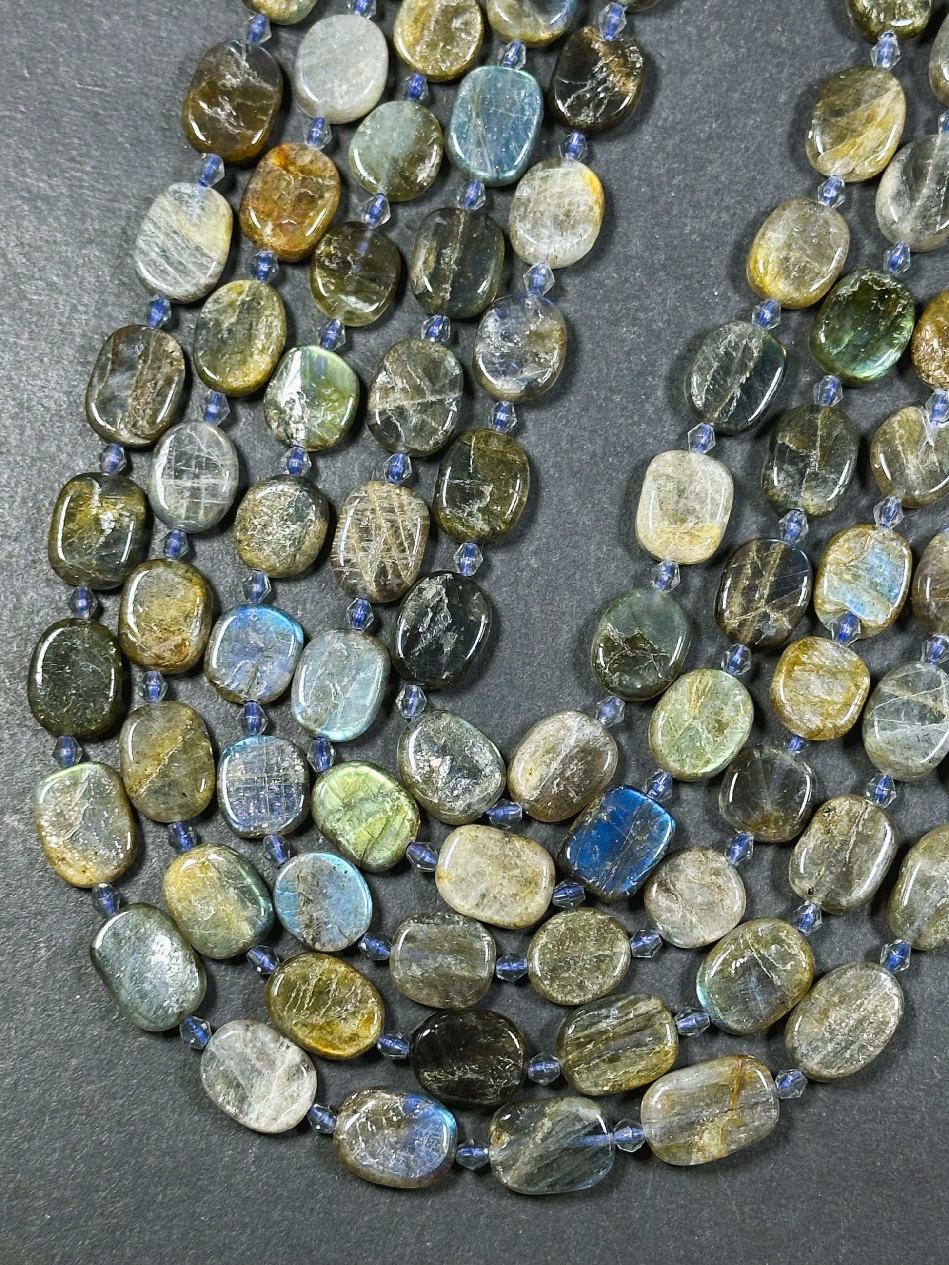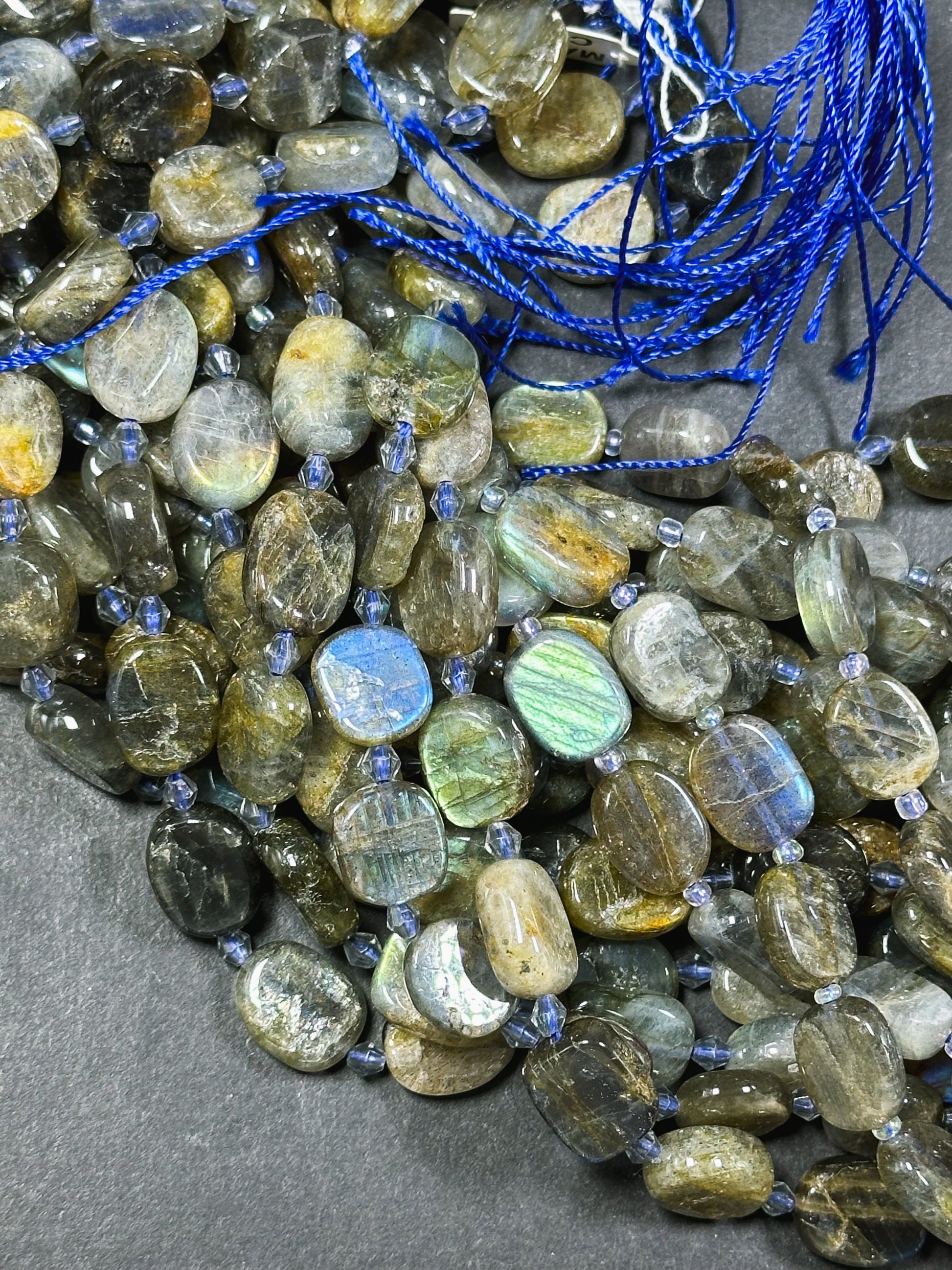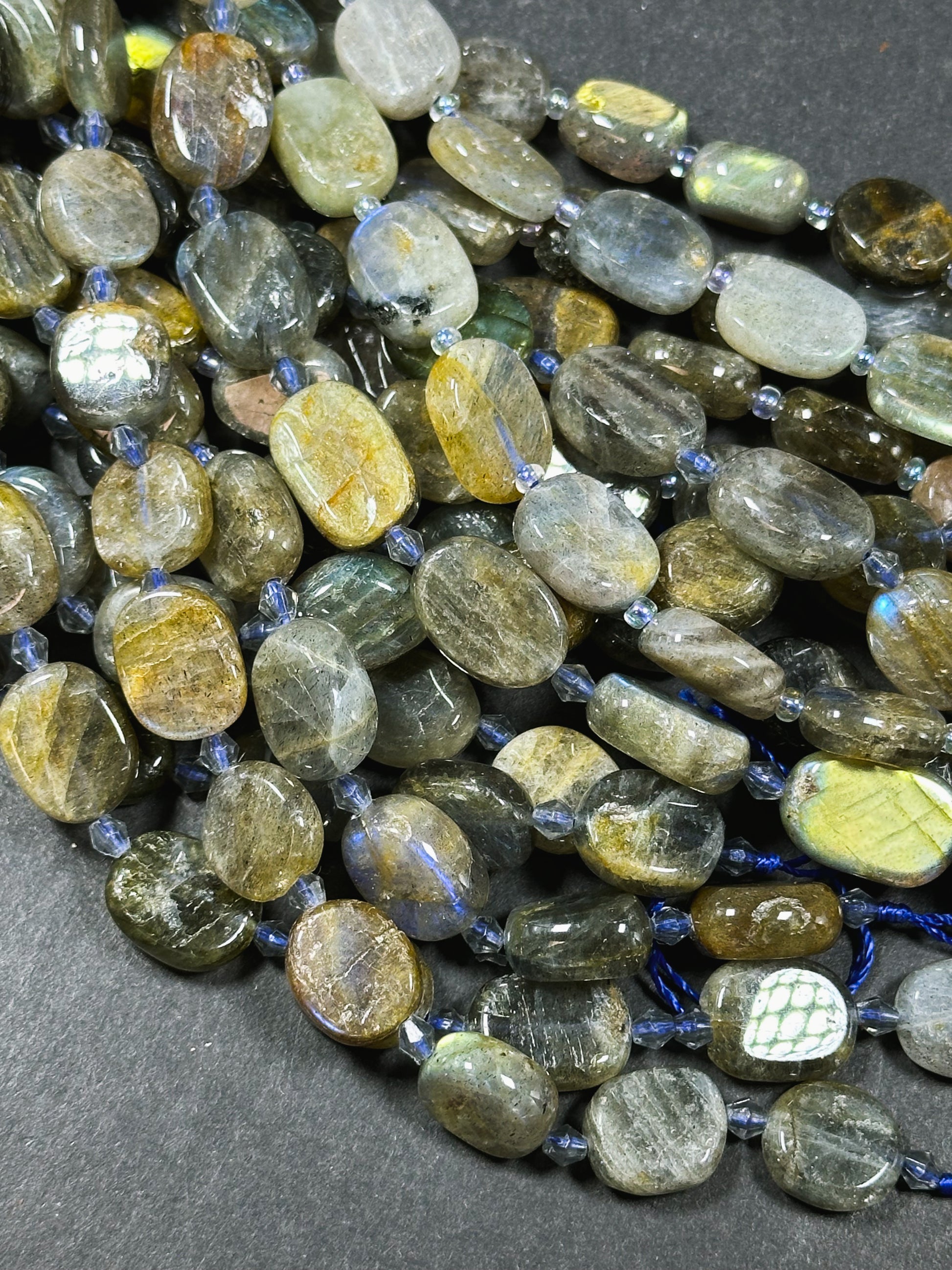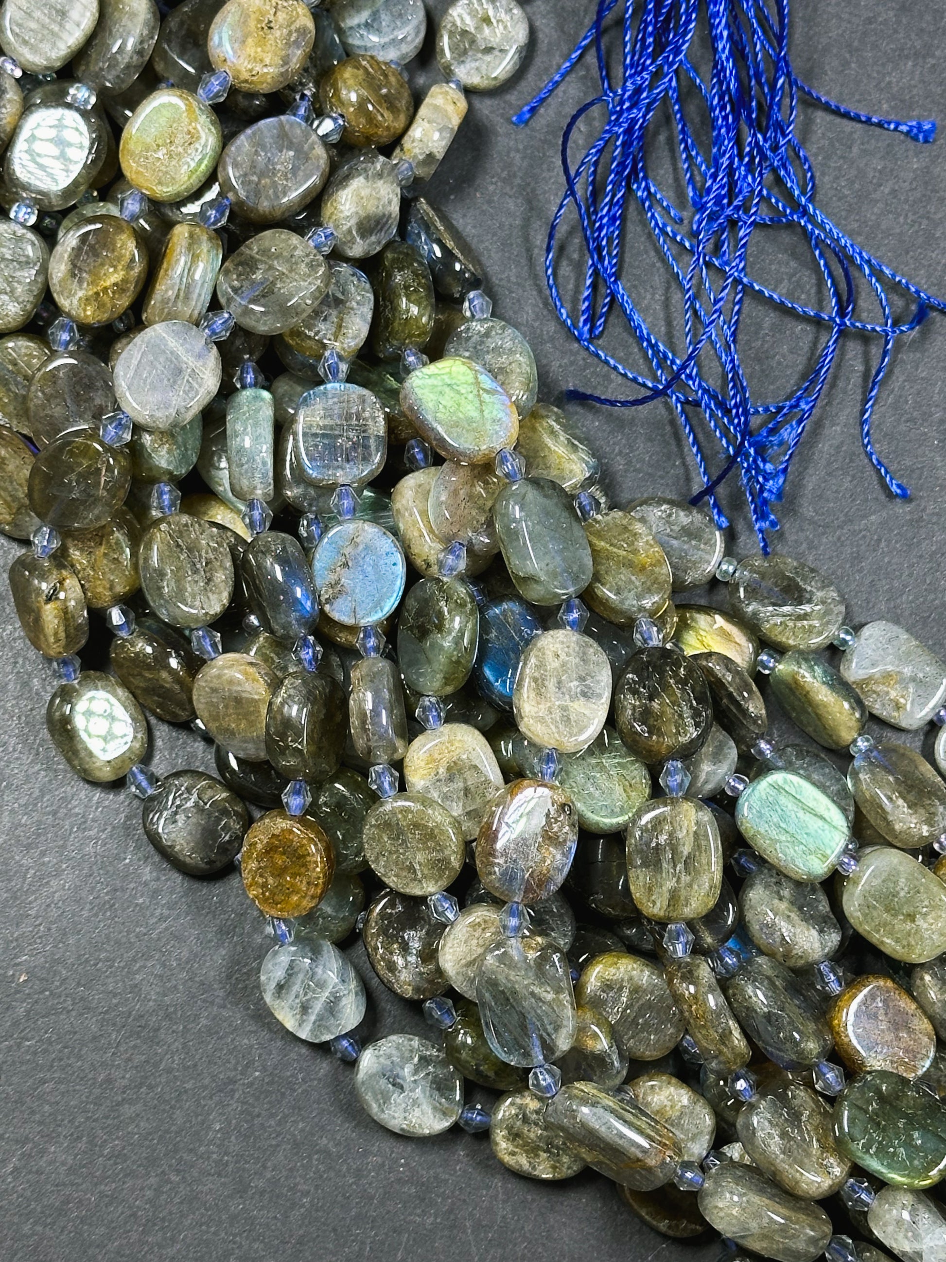 Natural Labradorite Gemstone Bead 15x11mm Oval Shape Bead, Gorgeous Natural Gray Brown Color, Blue Rainbow Flash Labradorite Beads 15.5"