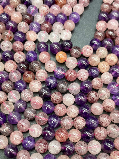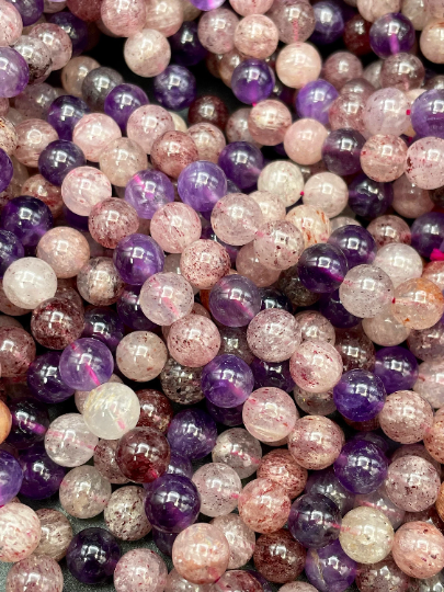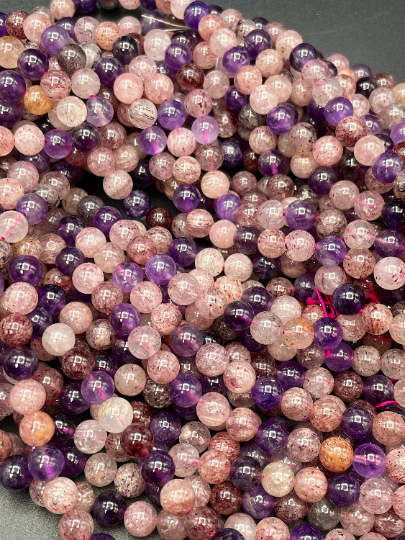 Natural Mixed gemstone beads. 6mm 8mm 9mm round bead. Beautiful natural Strawberry Quartz and Purple Amethyst. High quality gemstones!