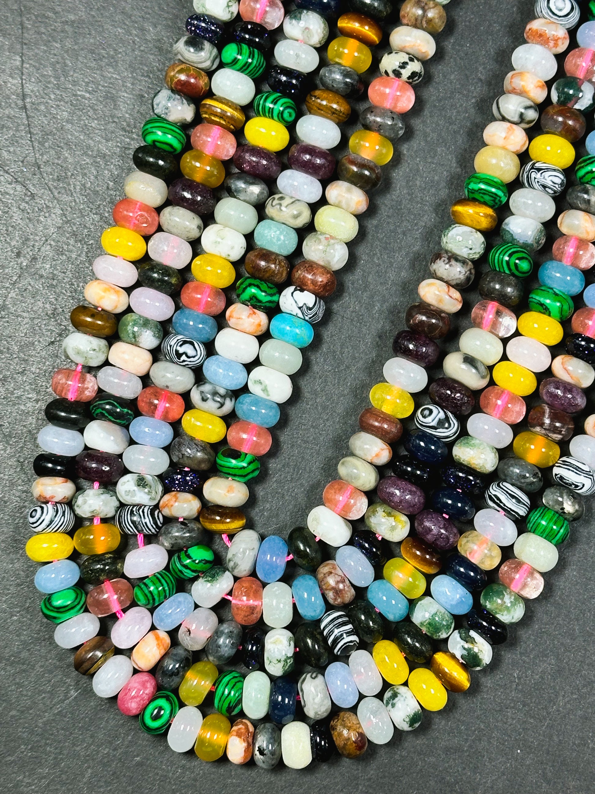 Natural Mixed Gemstone Beads 8x5mm Rondelle Shape Beads, Gorgeous Multicolor Multi Mixed Gemstone Beads, Excellent Quality Full Strand 15.5"