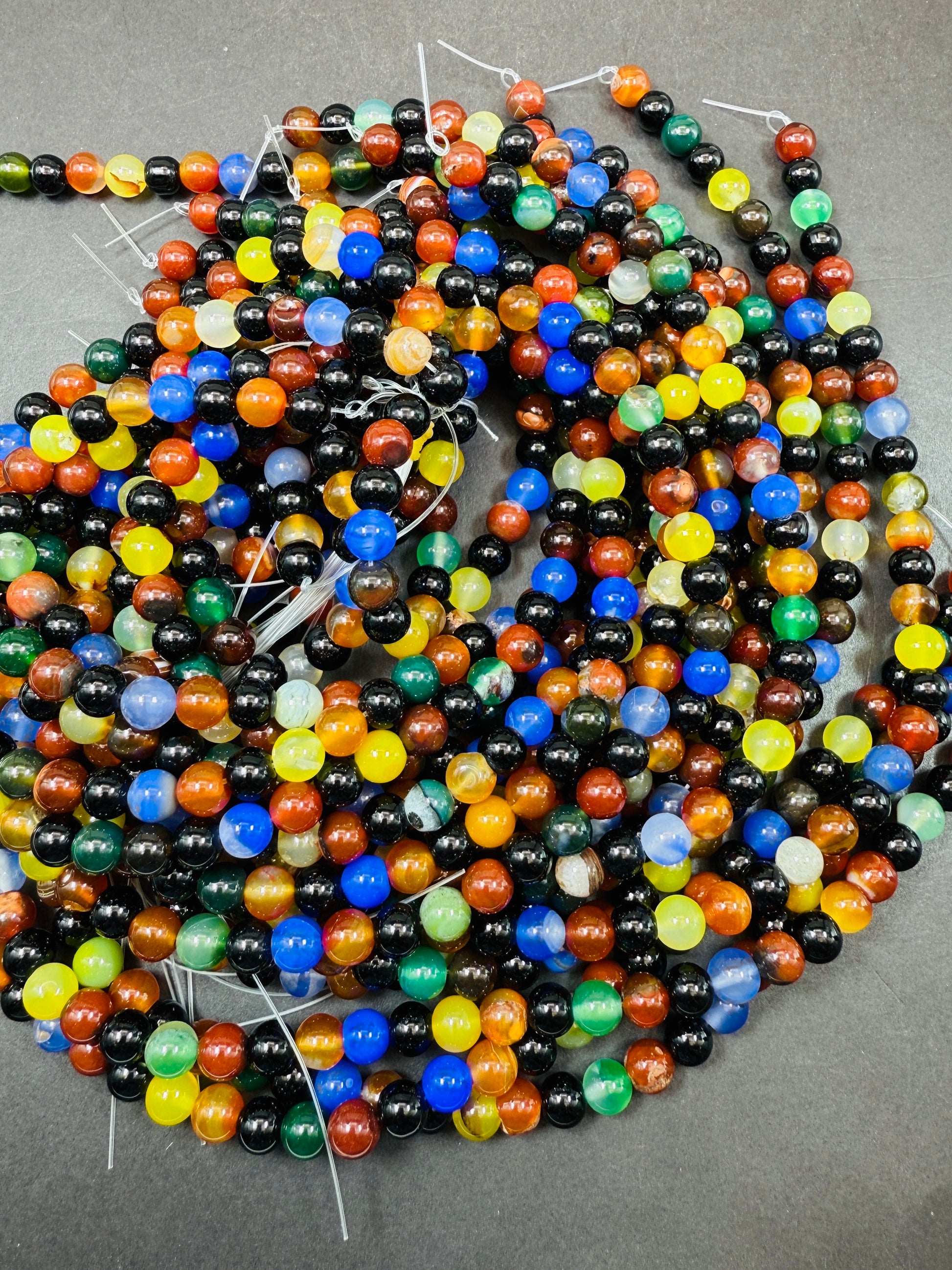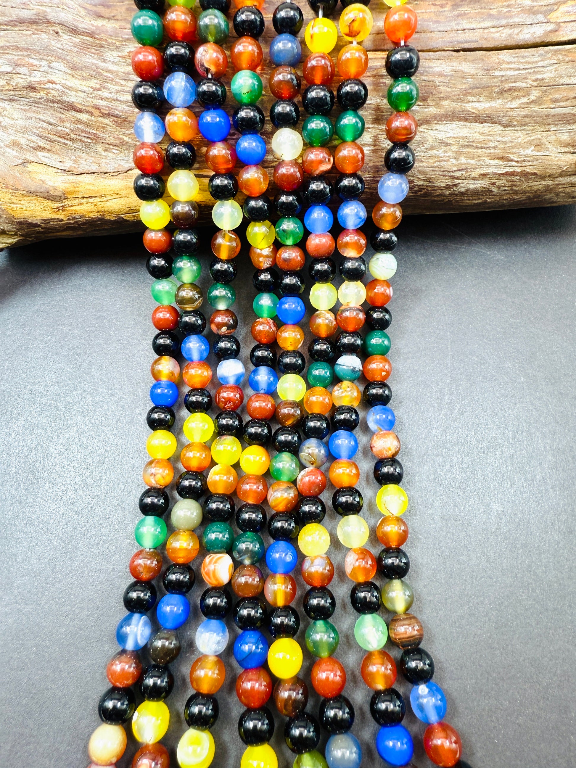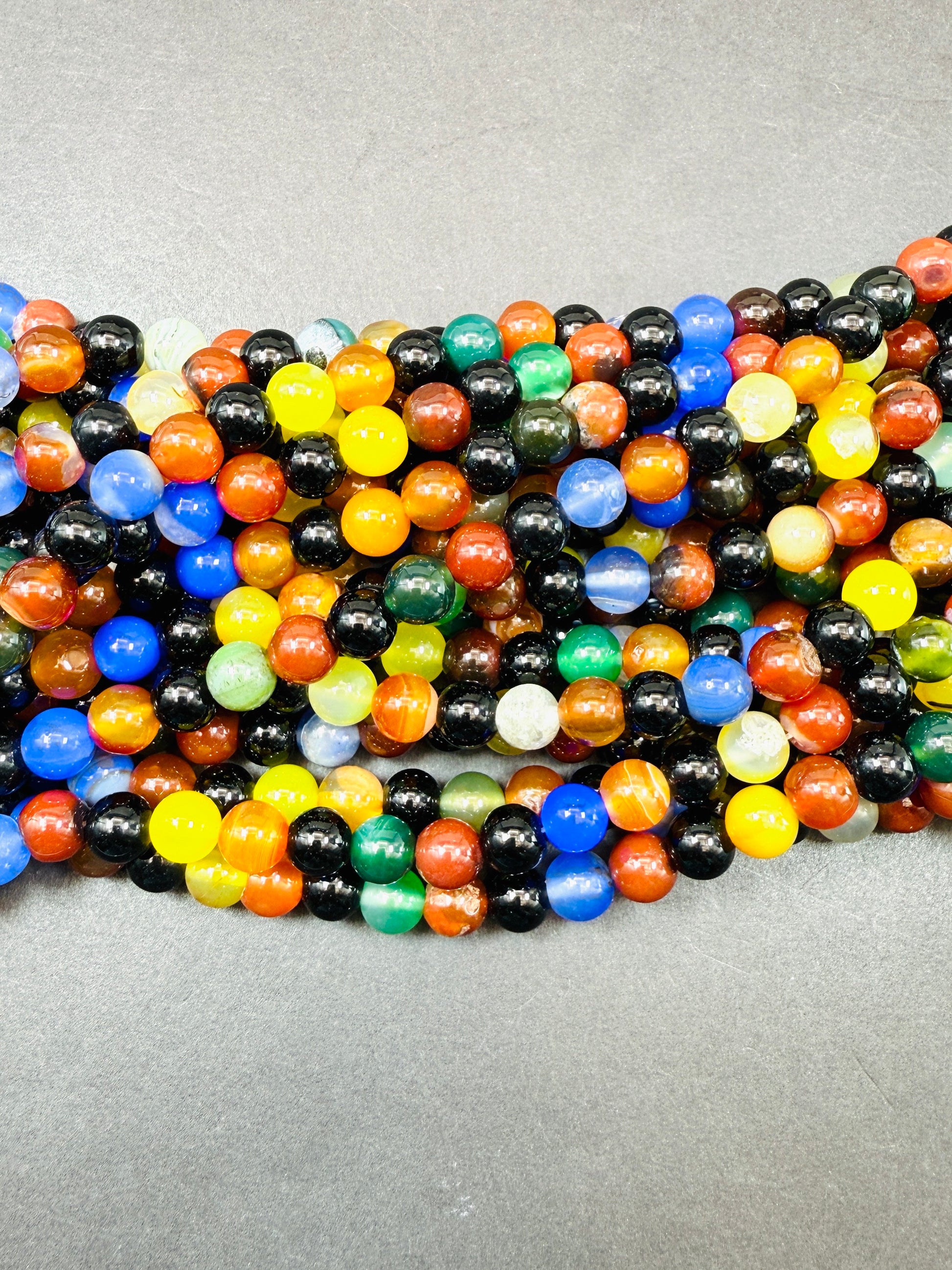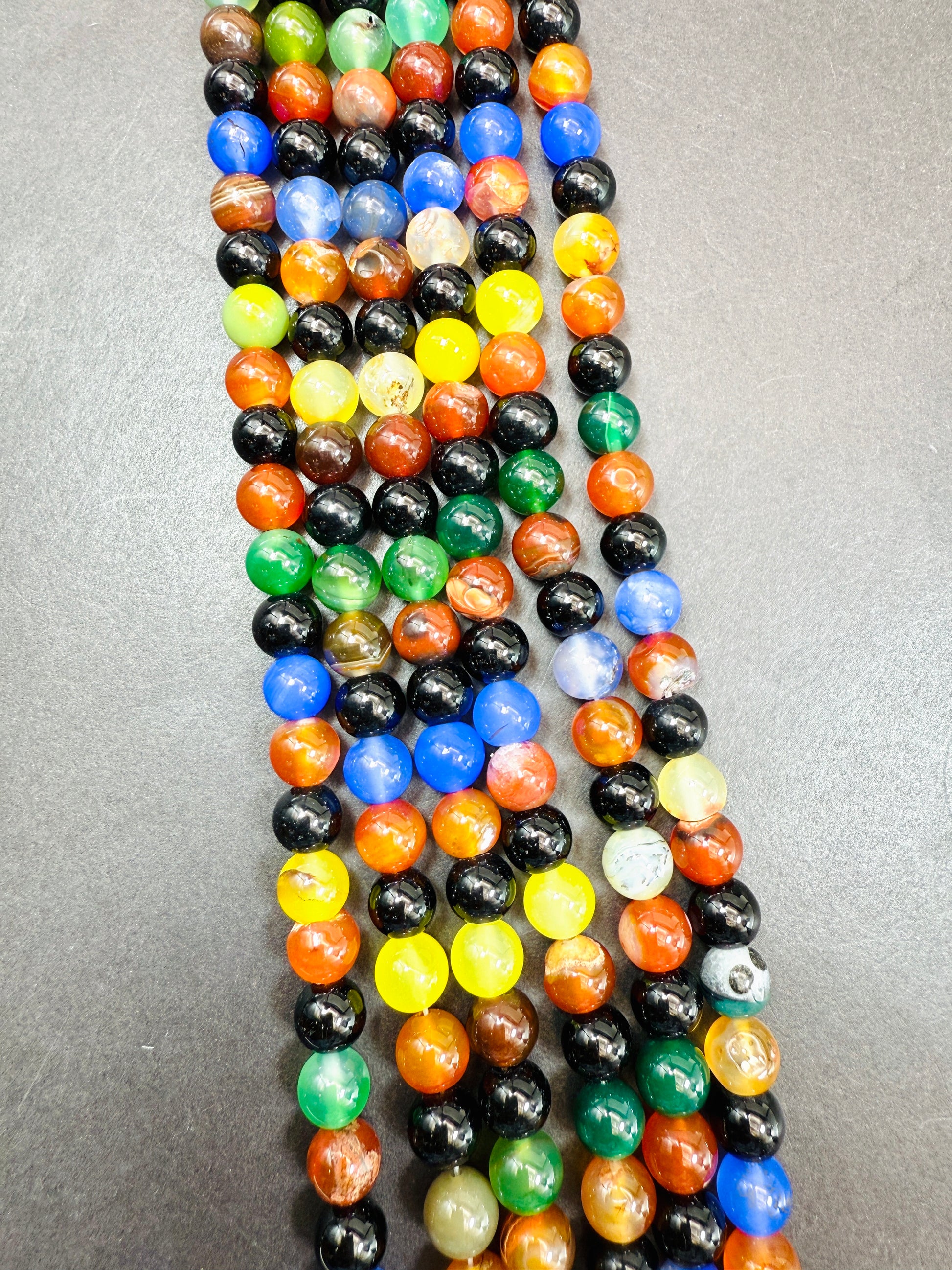 Natural multi color black jade gemstone bead. Smooth Round shape stone bead. Unique black, yellow,blue, green and brown color jade beads.