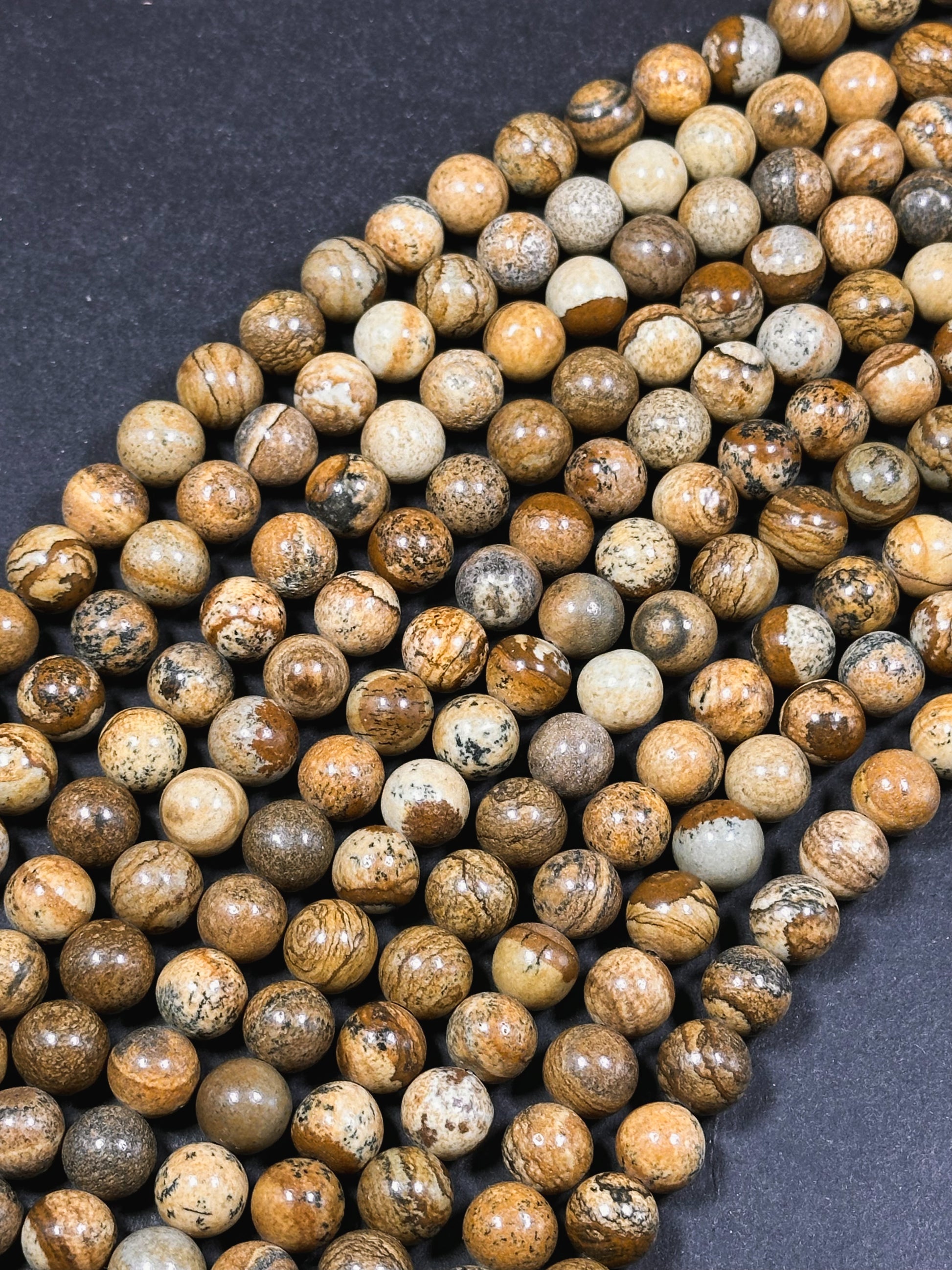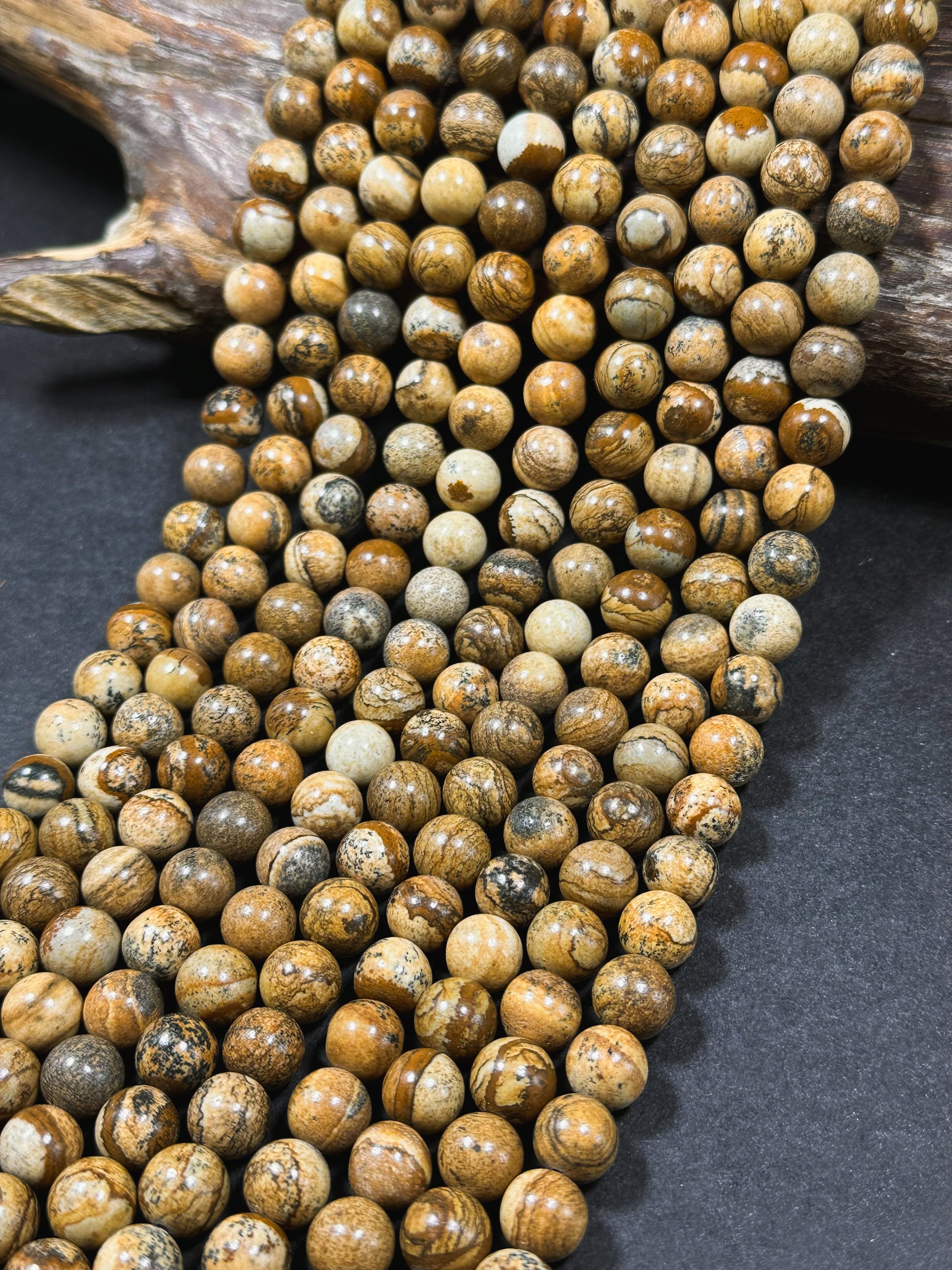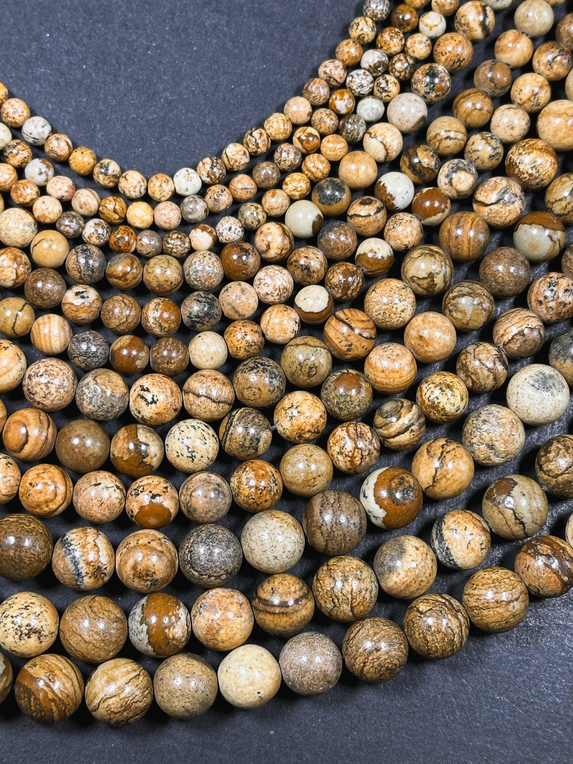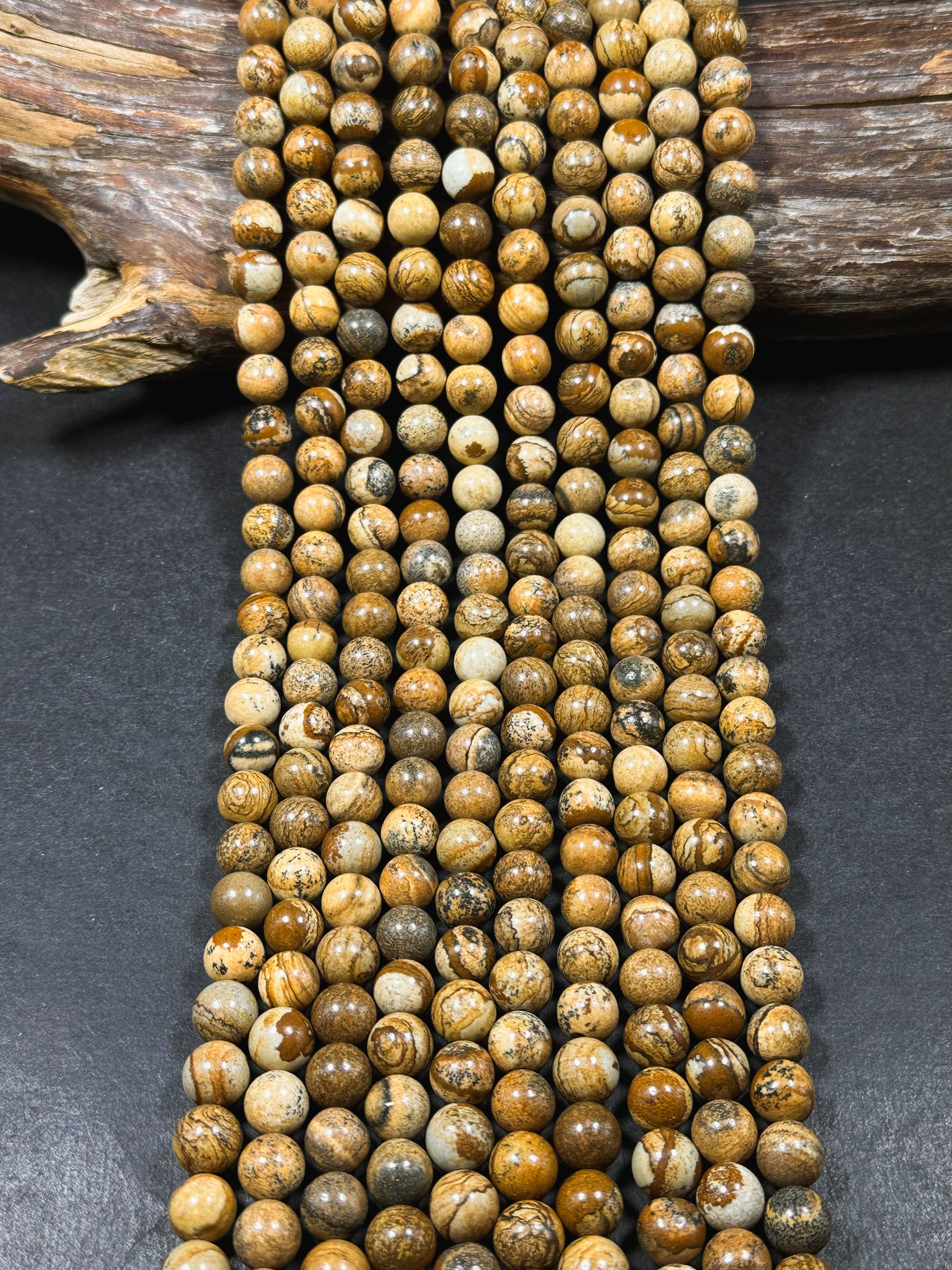 Natural Picture Jasper Gemstone 4mm 6mm 8mm 10mm Round Beads, Beautiful Natural Brown Tan Color Picture Jasper Gemstone Beads 15.5" Strand