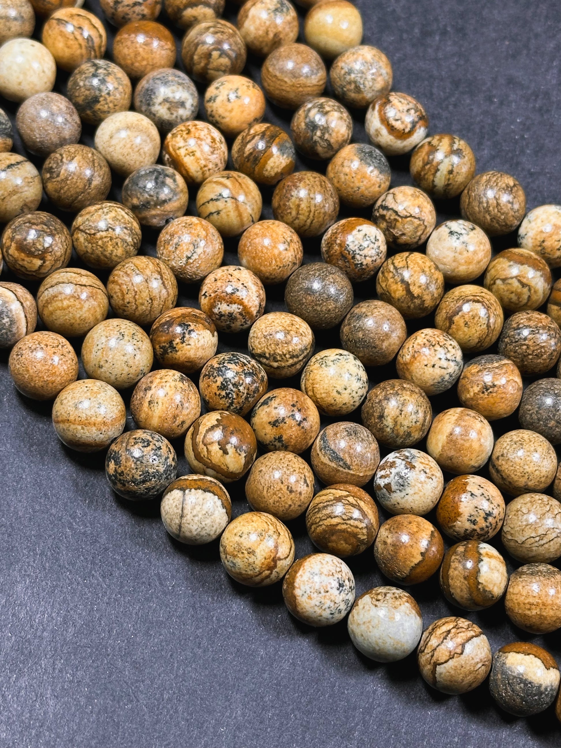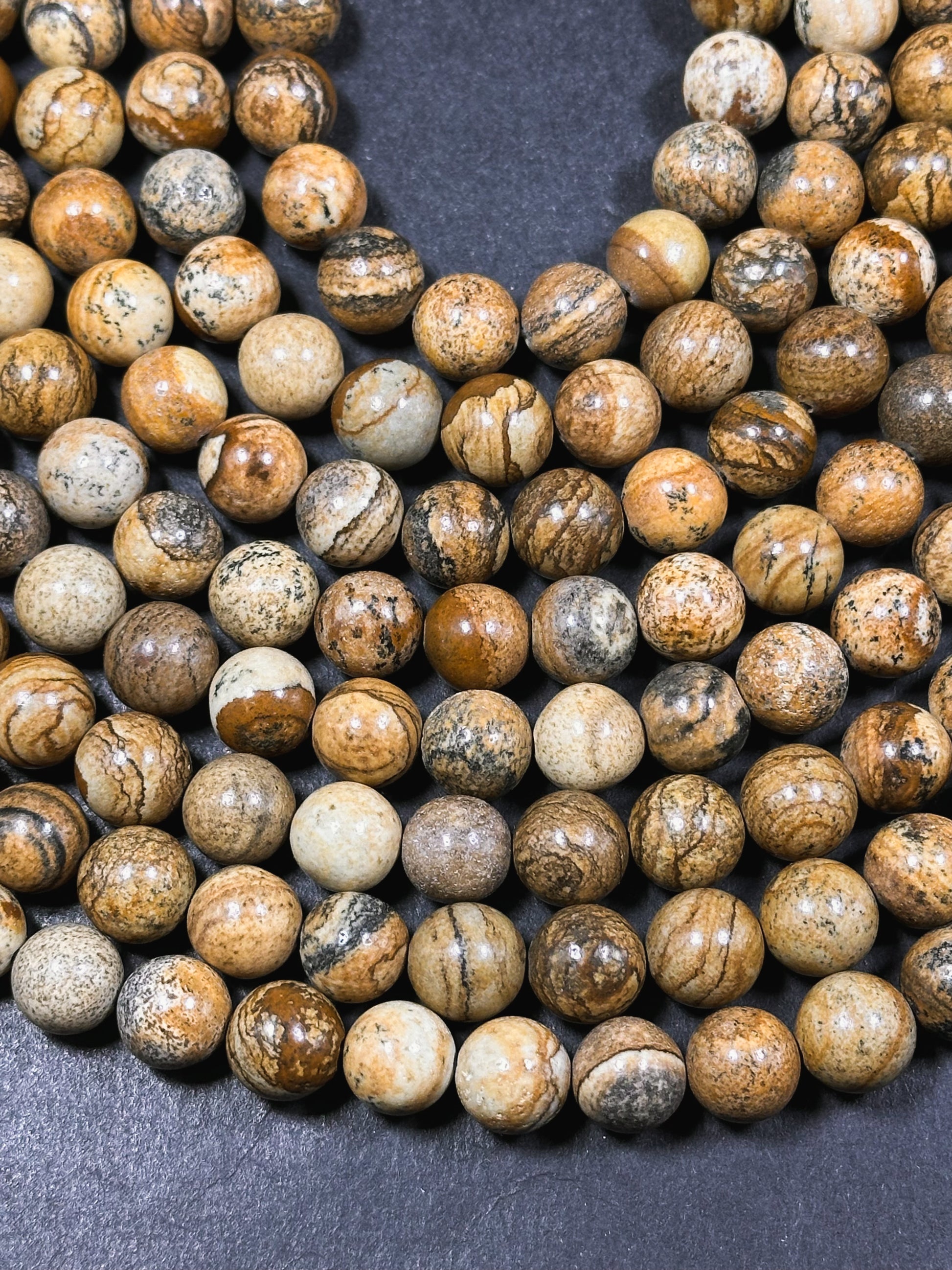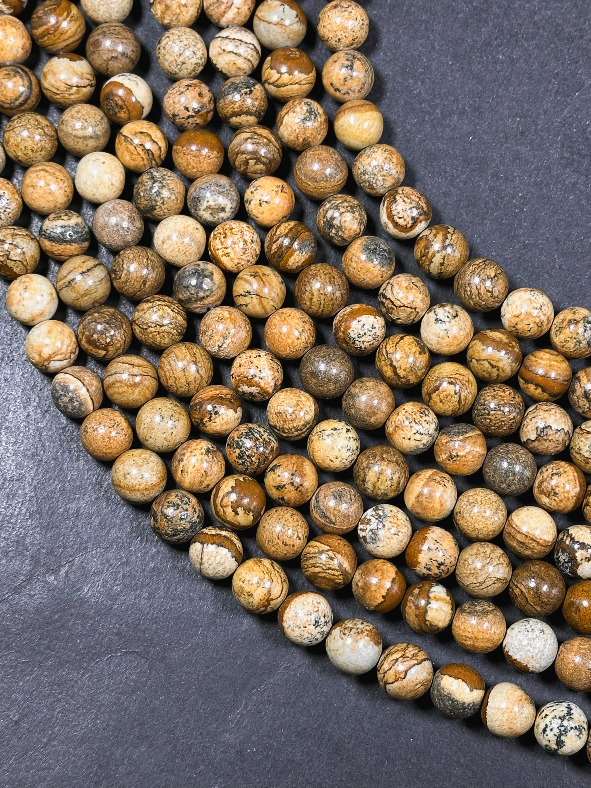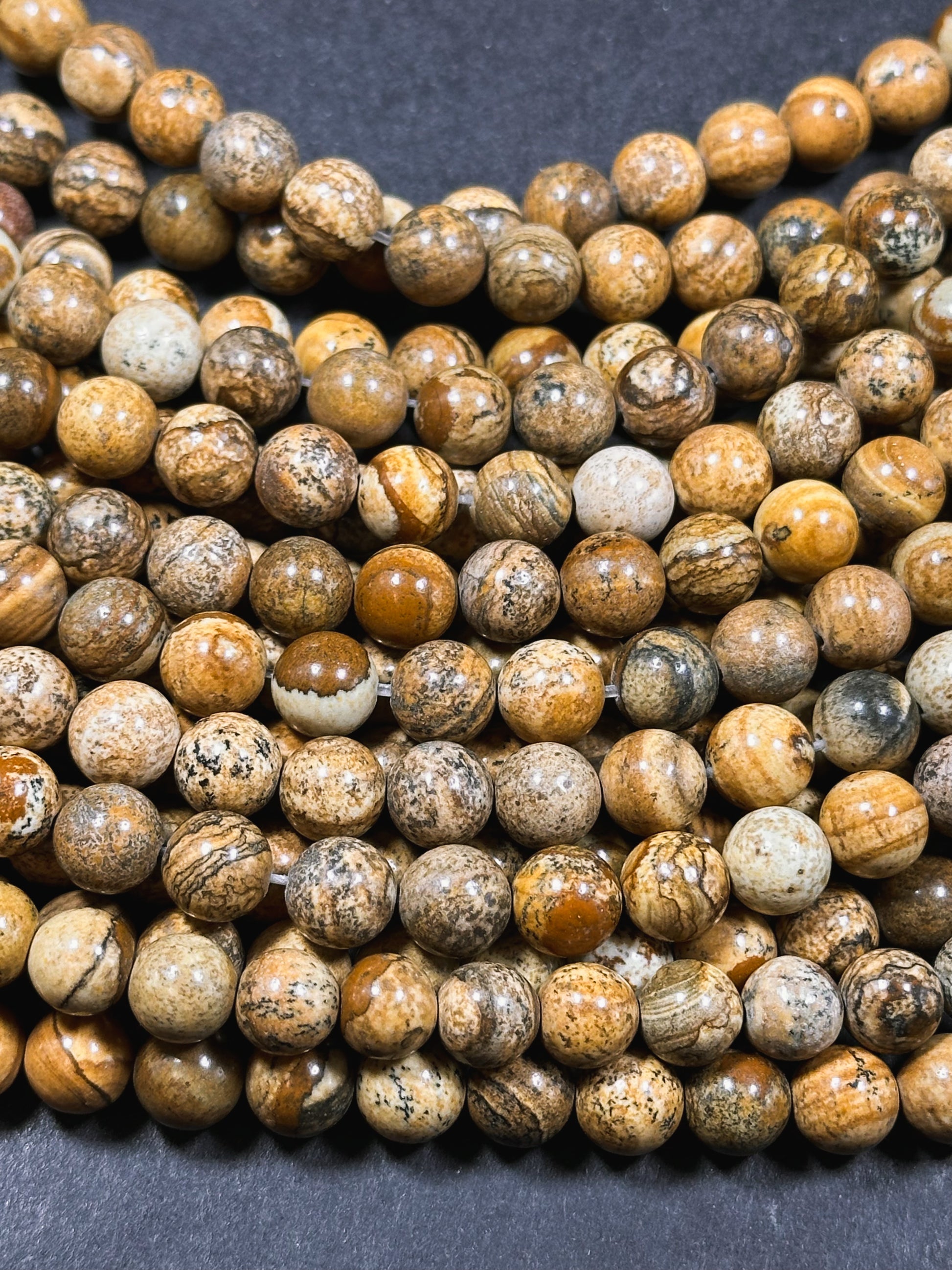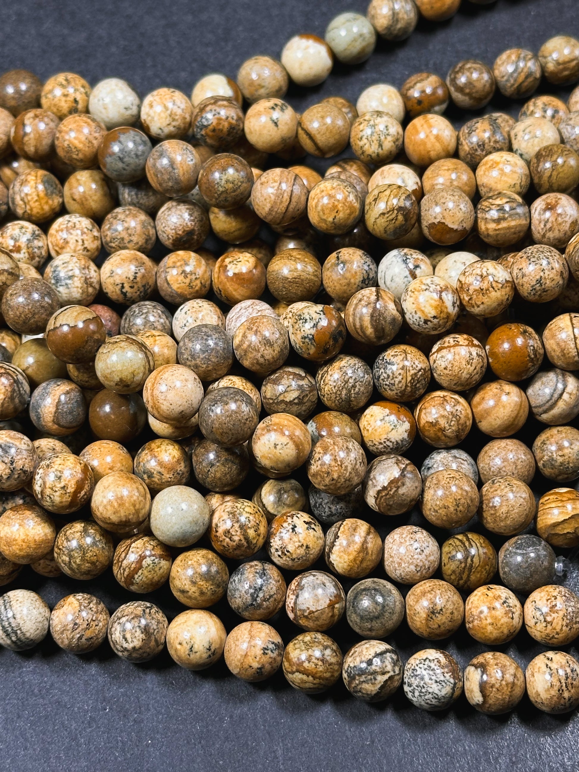 Natural Picture Jasper Gemstone 4mm 6mm 8mm 10mm Round Beads, Beautiful Natural Brown Tan Color Picture Jasper Gemstone Beads 15.5" Strand