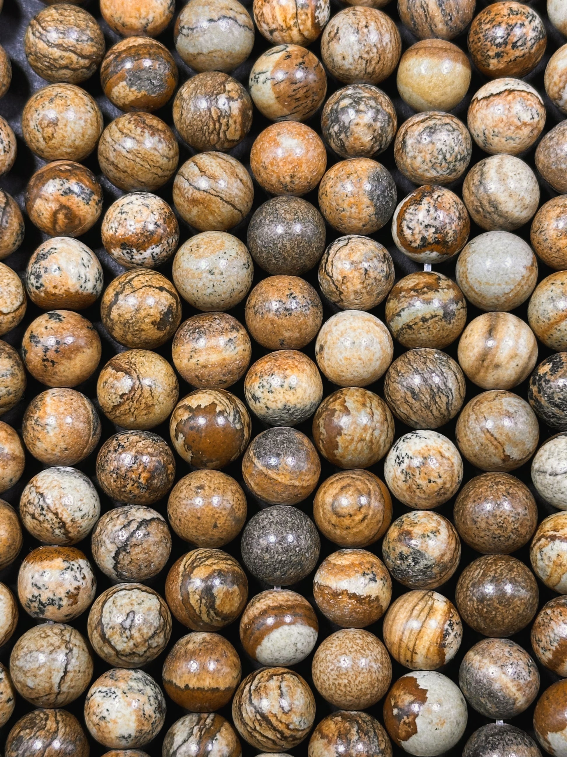 Guaranteed 100% natural gemstone. Stunning natural picture jasper gemstones. Beautiful natural tan brown color picture jasper gemstone beads. Very unique and amazing quality. Loose beads great for jewelry making and beading!