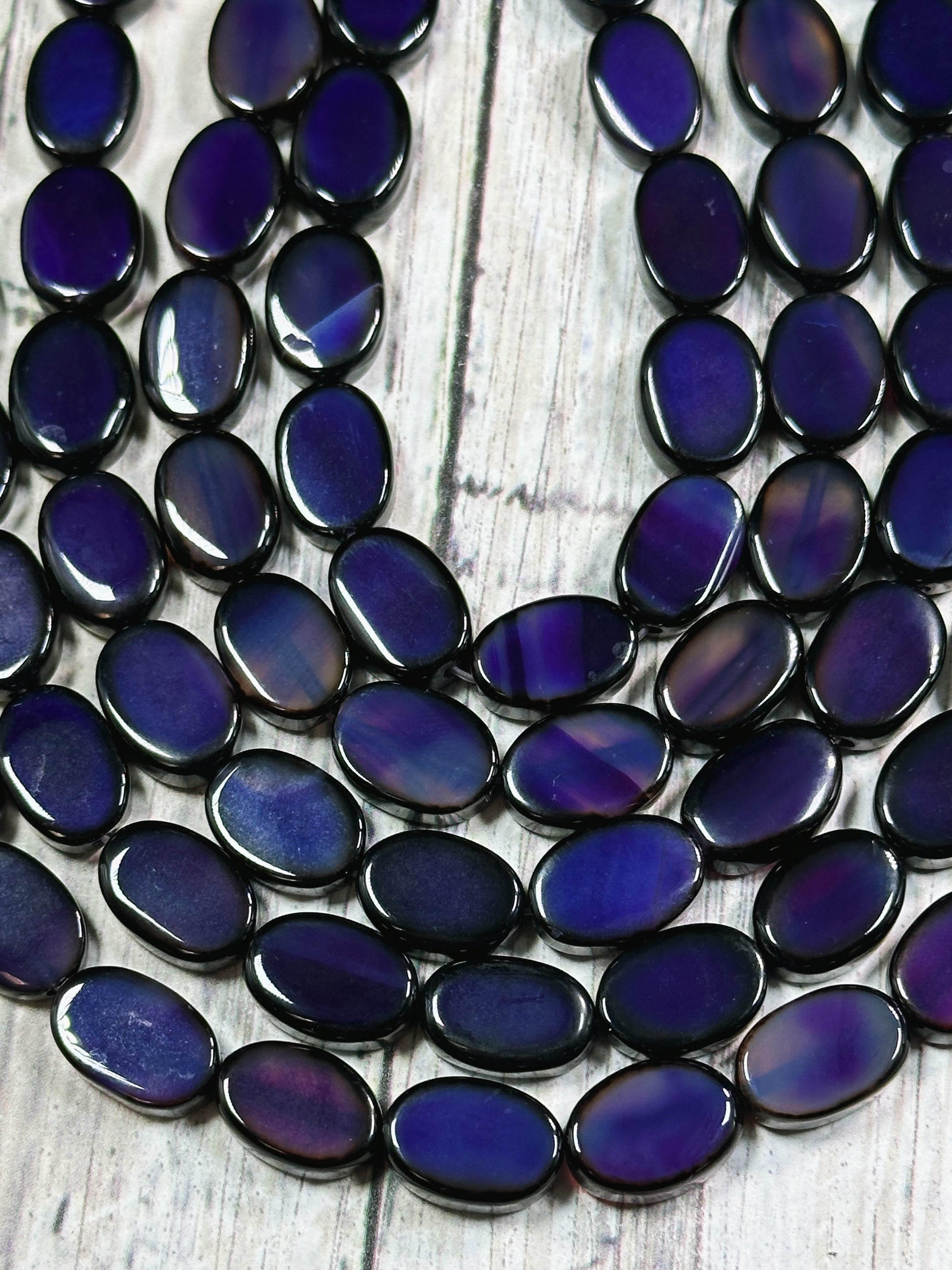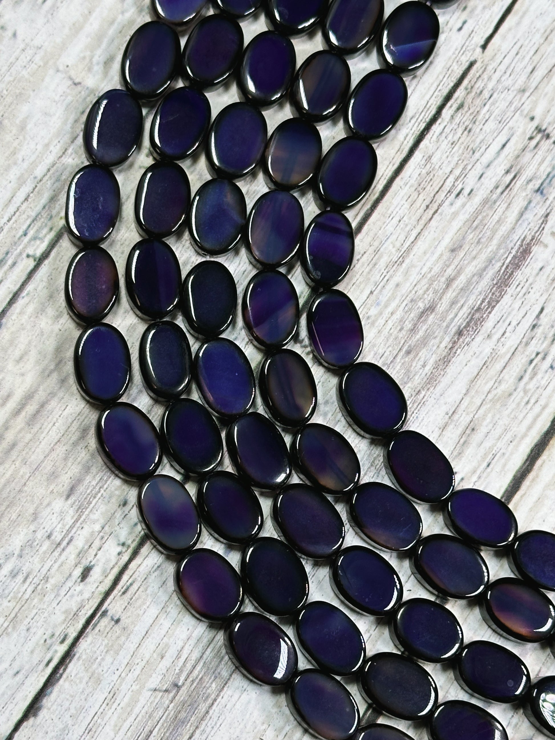 Natural Purple Agate Gemstone Bead 14x10mm Oval Shape, Beautiful Dark Purple Color Smooth Agate Gemstone Beads Full Strand 15.5"
