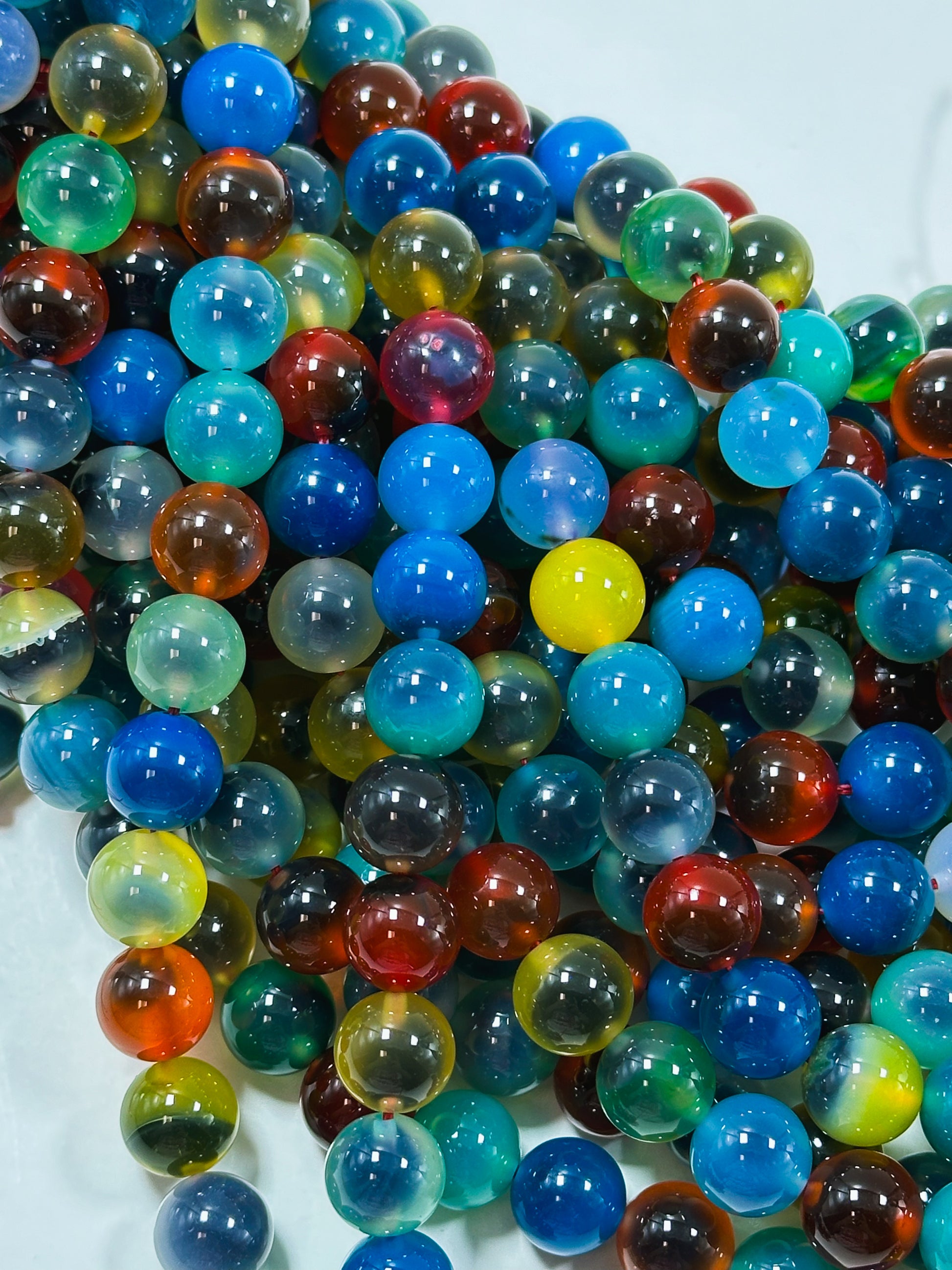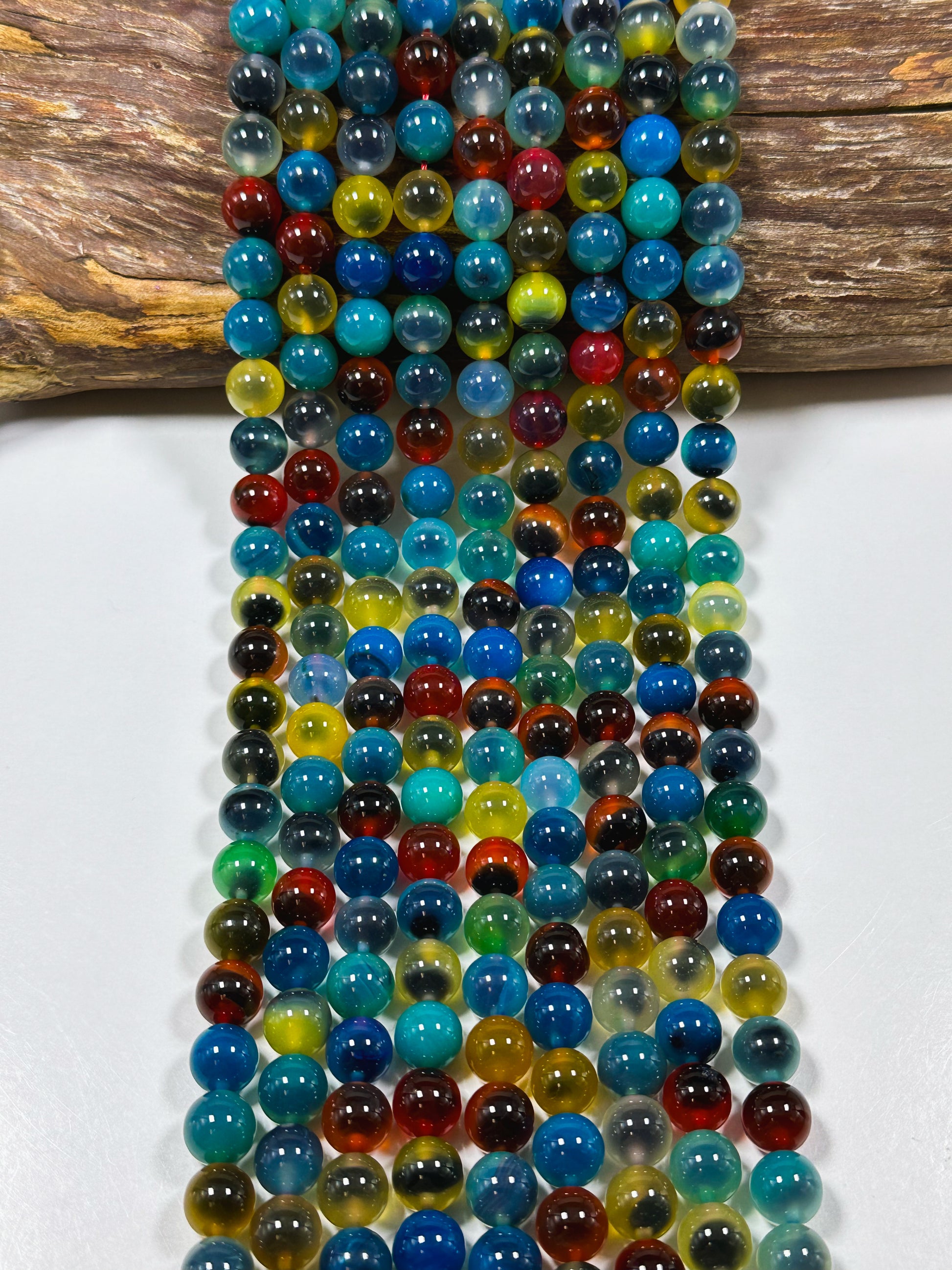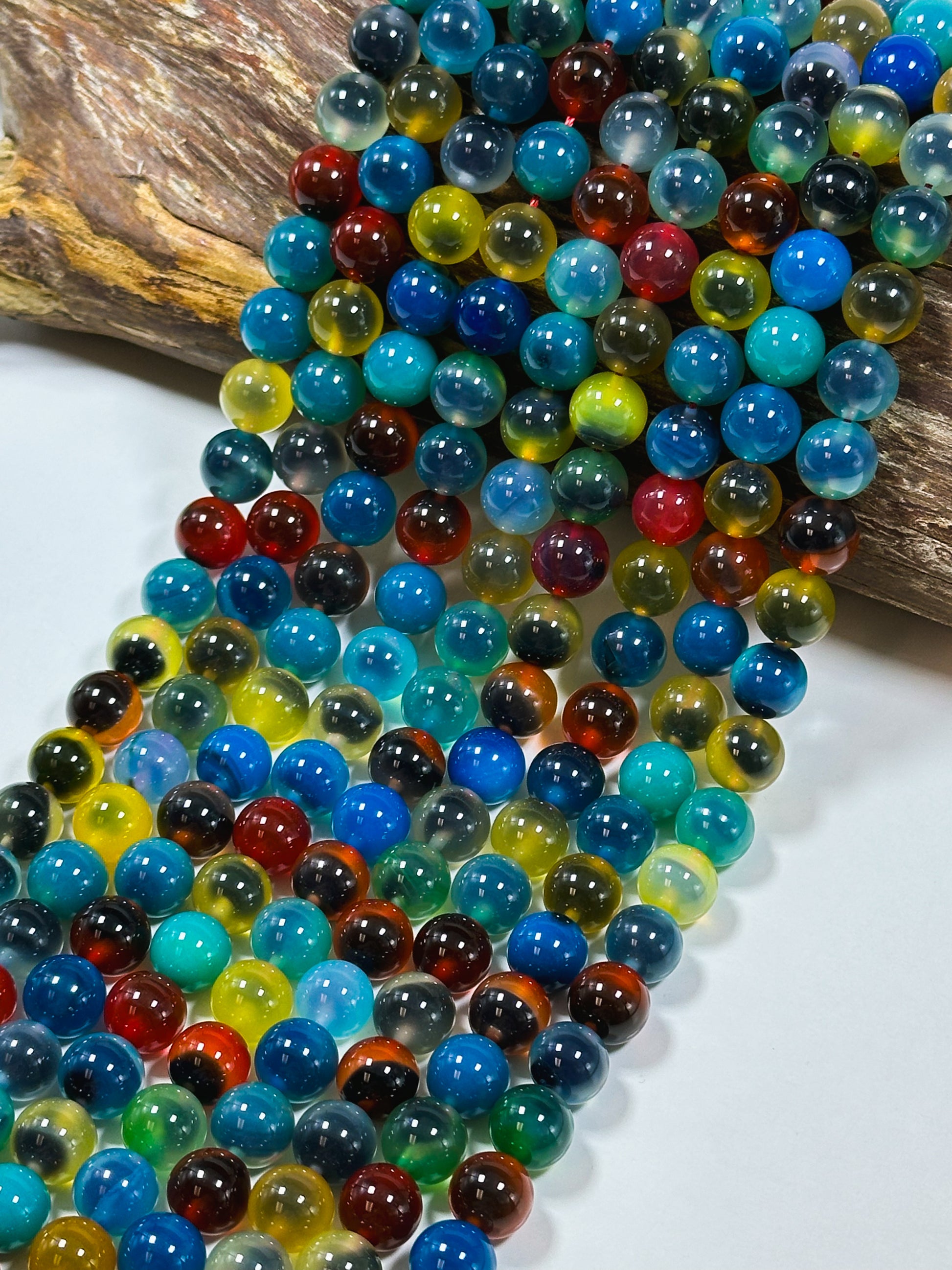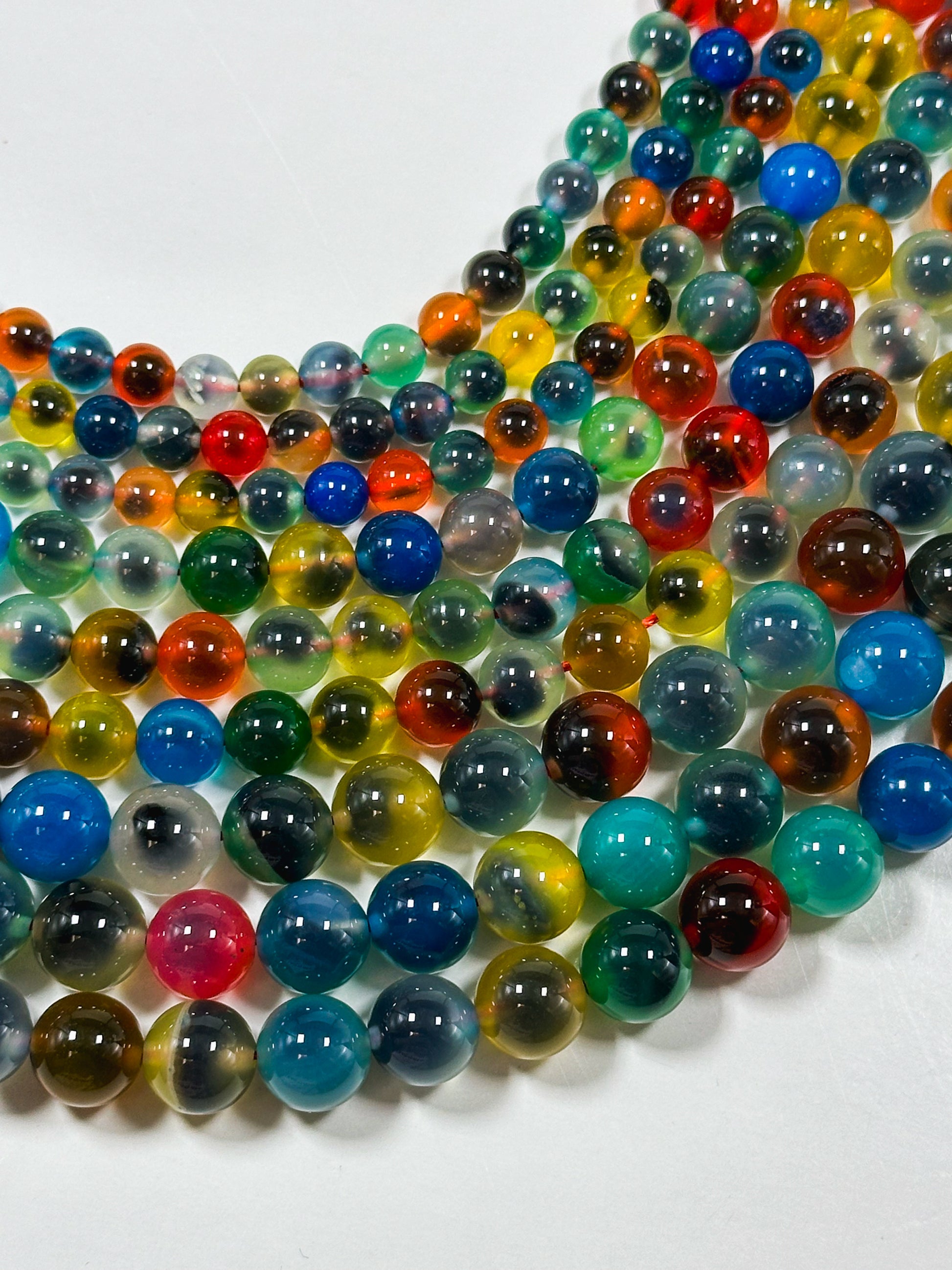 Natural Rainbow Sugar Heart Candy Agate Gemstone Beads 6mm 8mm 10mm Round Beads, Beautiful Multicolor Rainbow Agate Gemstone Beads Full 15.5" Strand