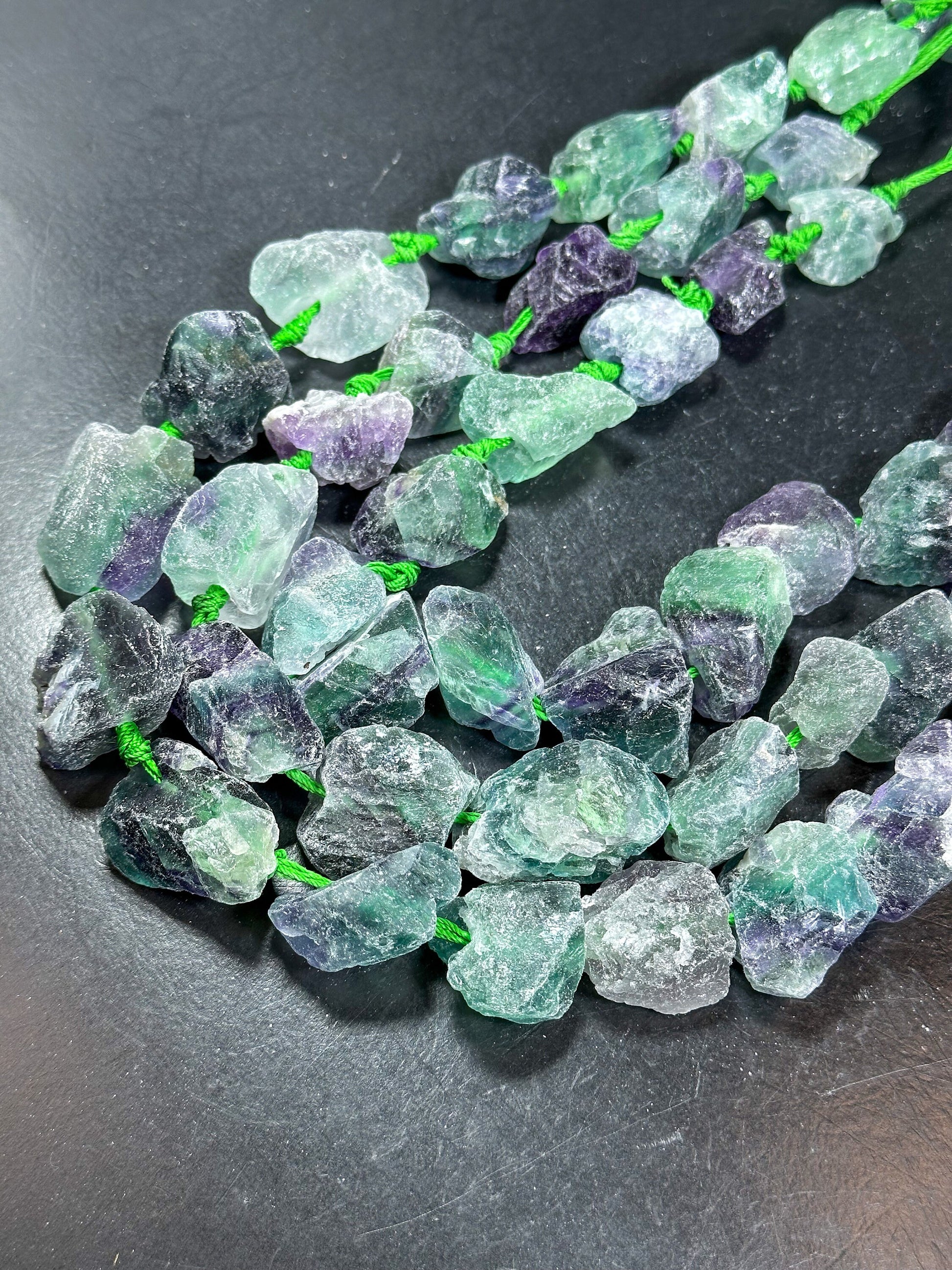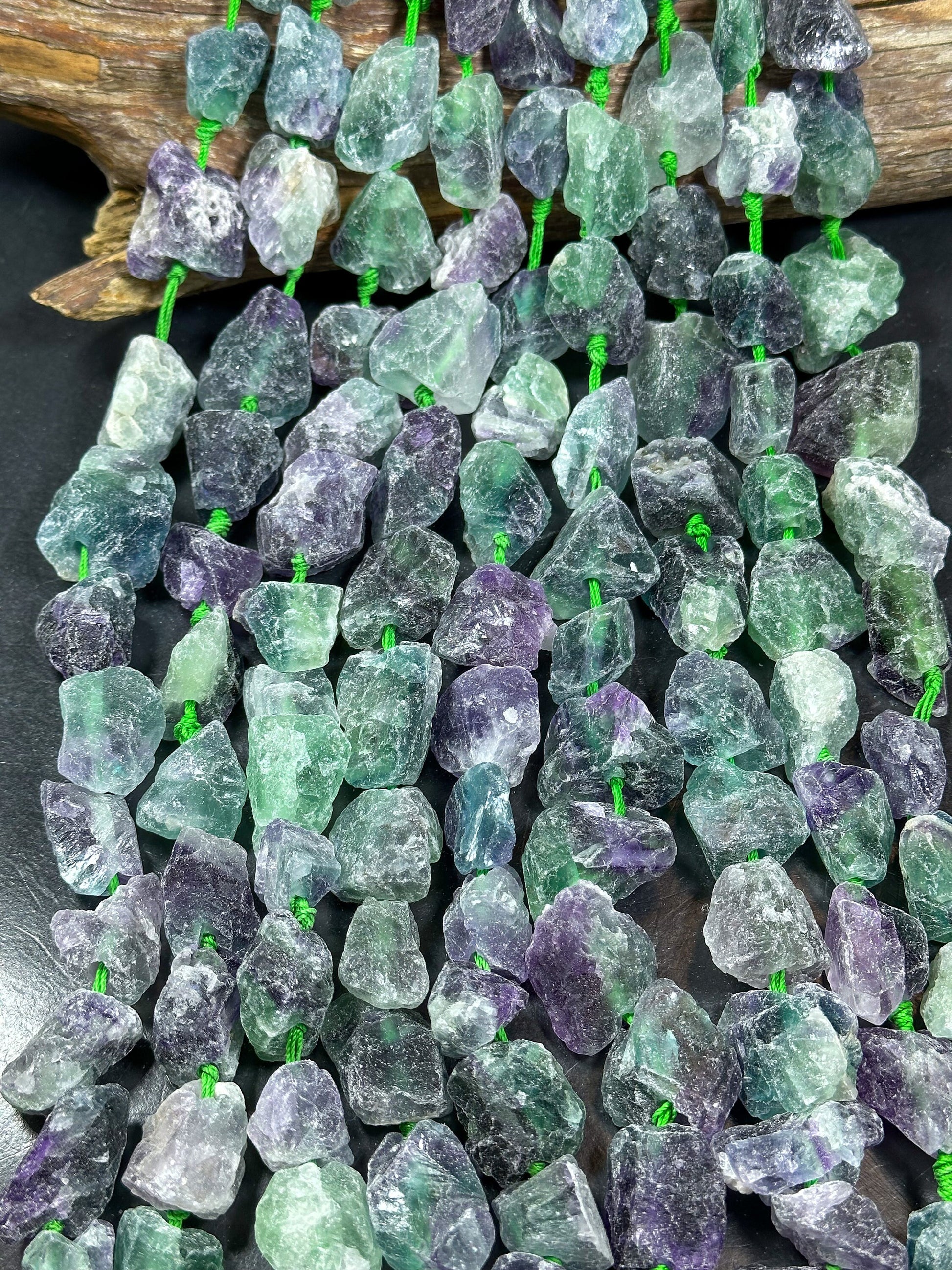 NATURAL Raw Fluorite Gemstone Bead 18x14mm to 36x29mm Freeform Nugget Shape, Beautiful Purple Green Color Loose Beads Full Strand 15.5"